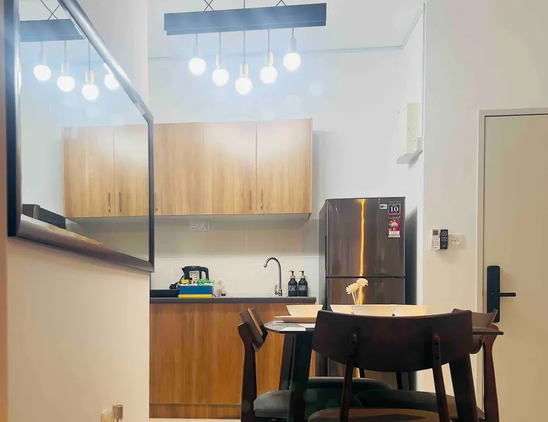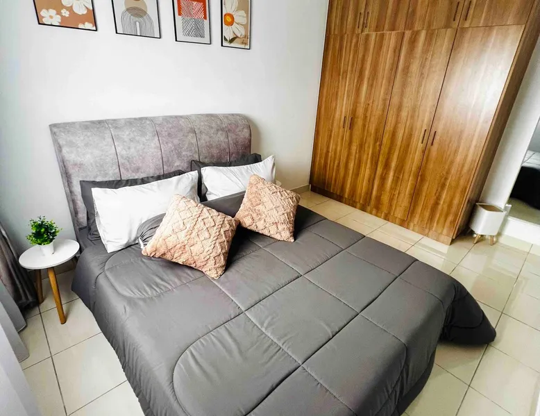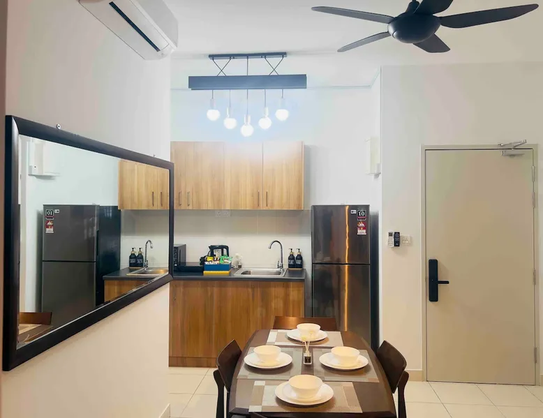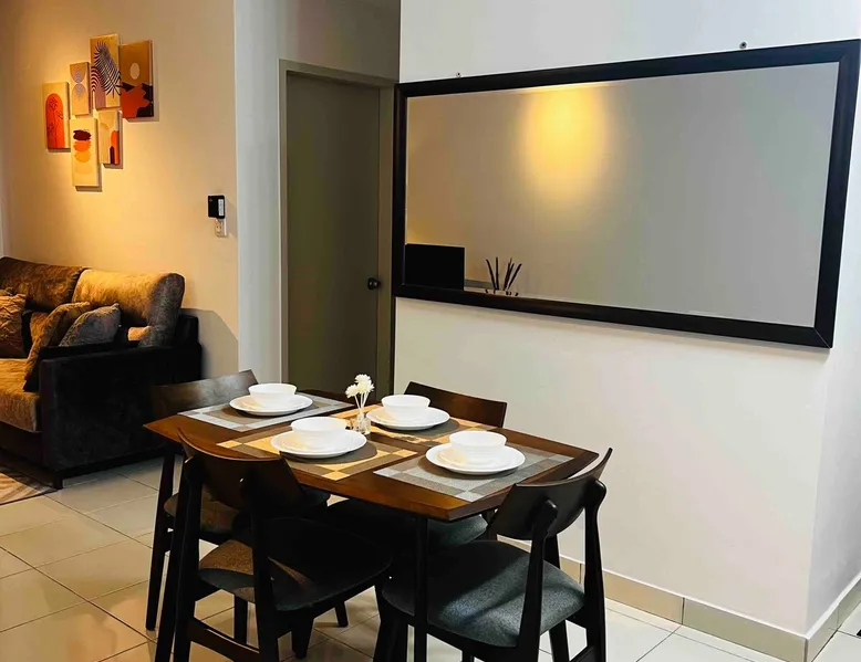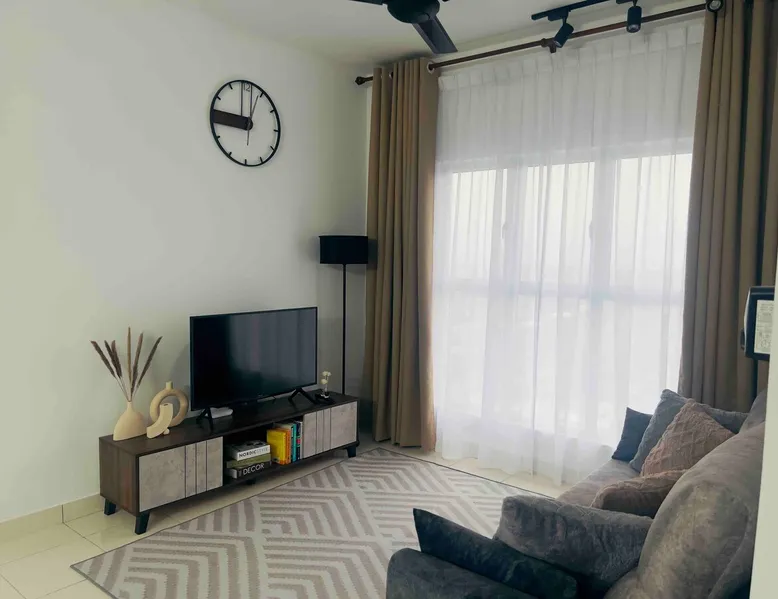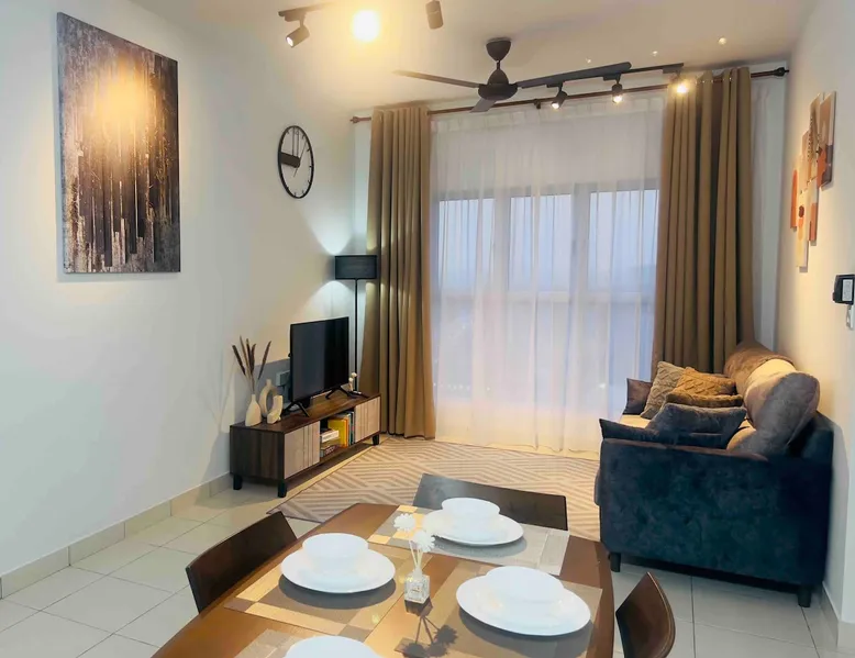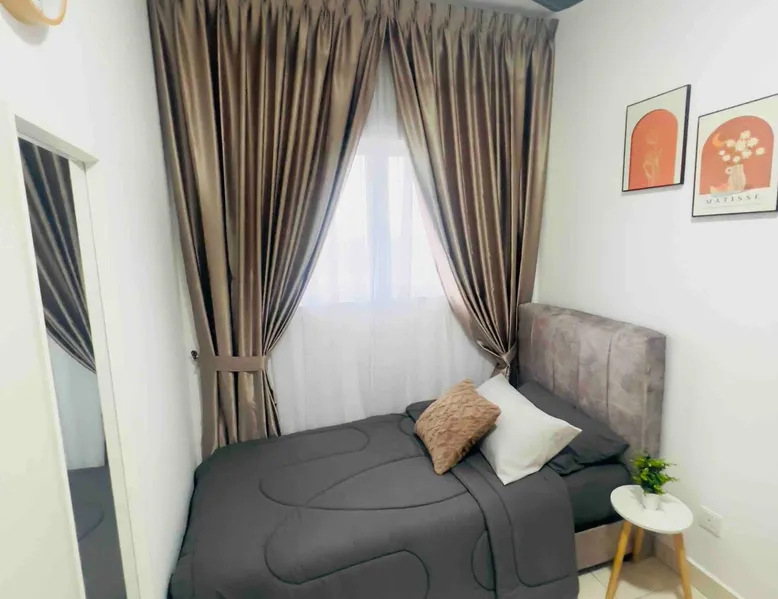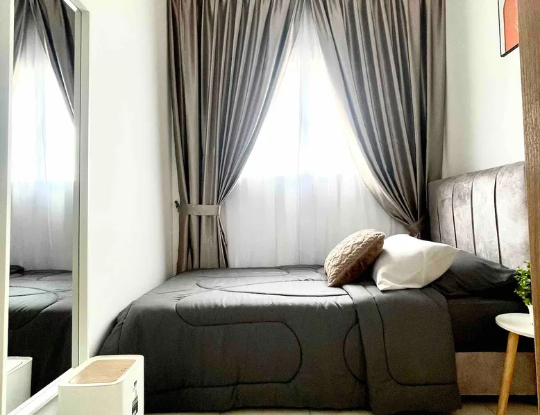 The space is around 600 sq & can accommodate up to 4 pax. It is a fully furnished unit - complete with modern appliances and amenities and & 24 hours security. Located just 15 minutes’ drive from KLIA. If guests would like to keep body fit, an outdoor swimming pool & gym are available for guest use. You will be close to all the amenities of the city center of Sepang: cafes, grocery stores and all shops. This apartment offers free private parking which is perfect for travelers & family.