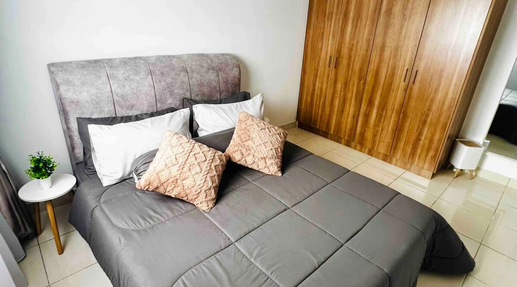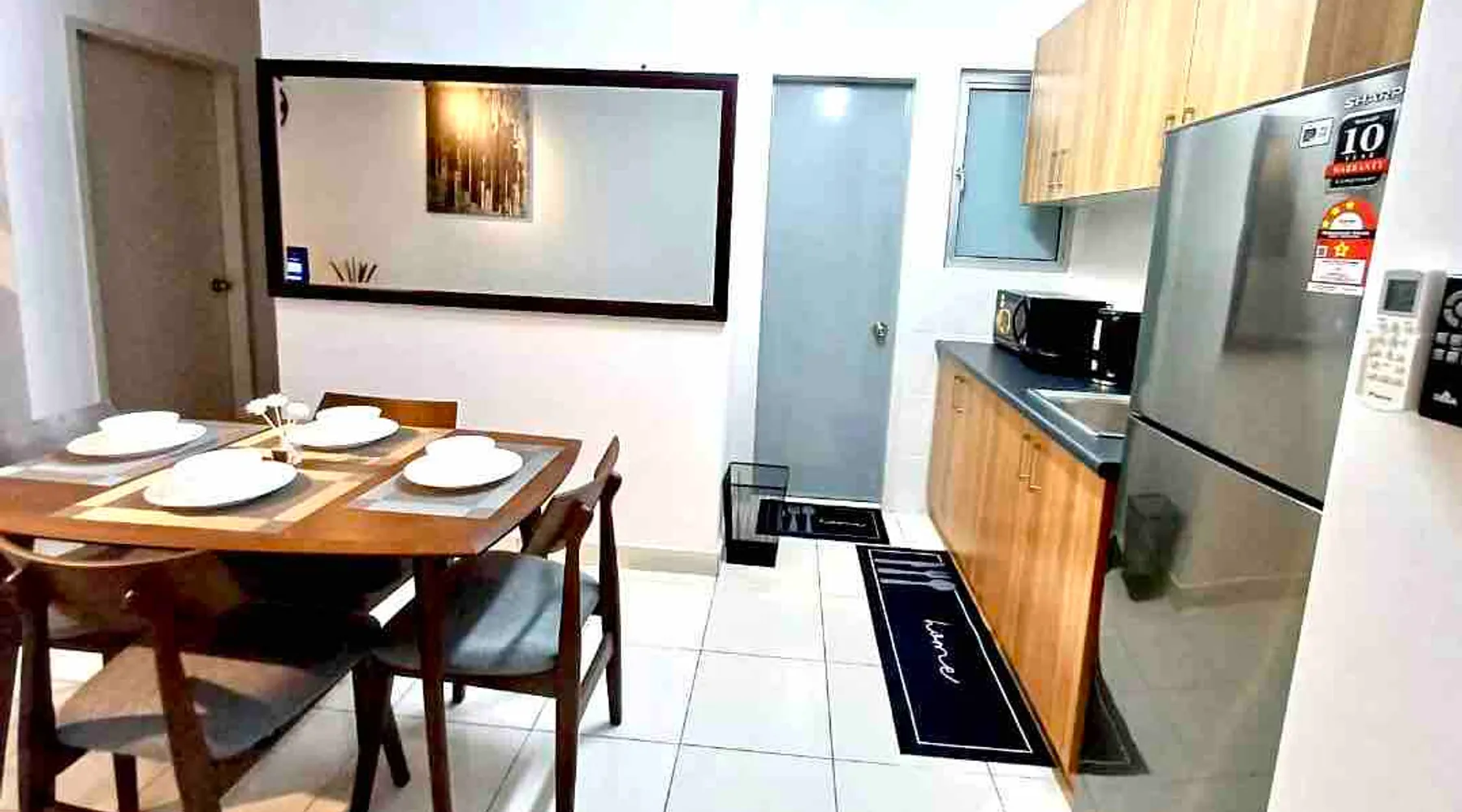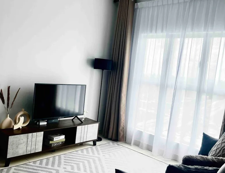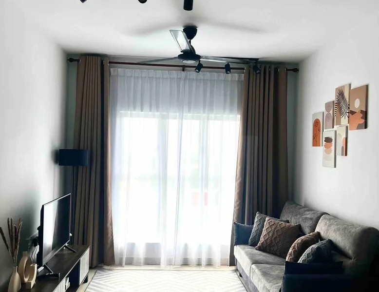 The space is around 600 sq & can accommodate up to 4 pax. It is a fully furnished unit - complete with modern appliances and amenities and & 24 hours security. Located just 15 minutes’ drive from KLIA. If guests would like to keep body fit, an outdoor swimming pool & gym are available for guest use. You will be close to all the amenities of the city center of Sepang: cafes, grocery stores and all shops. This apartment offers free private parking which is perfect for travelers & family.