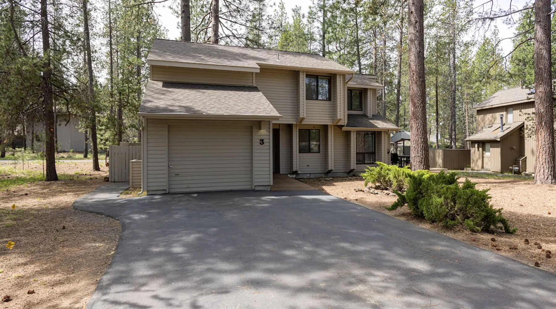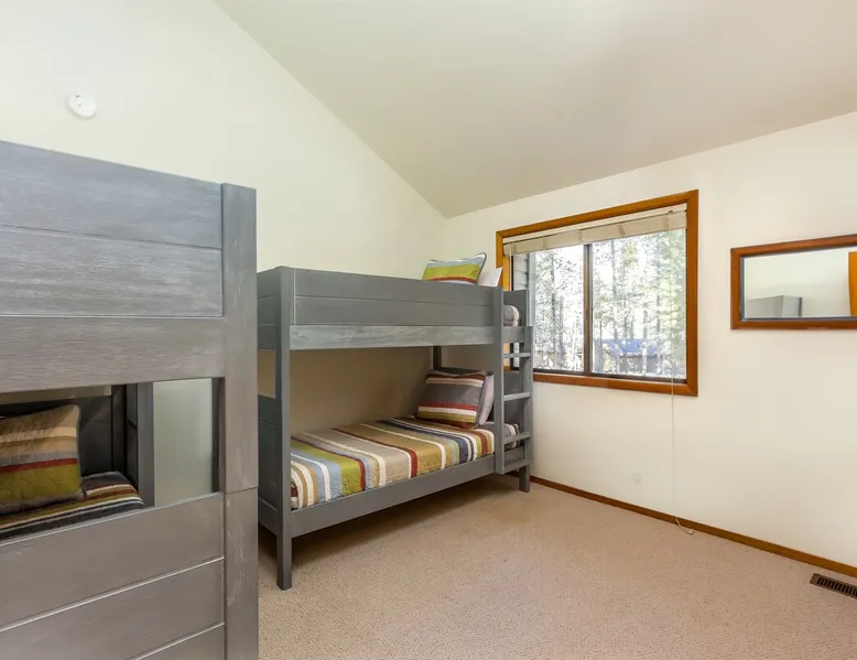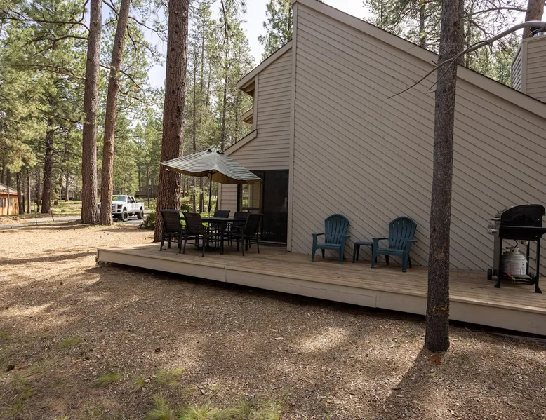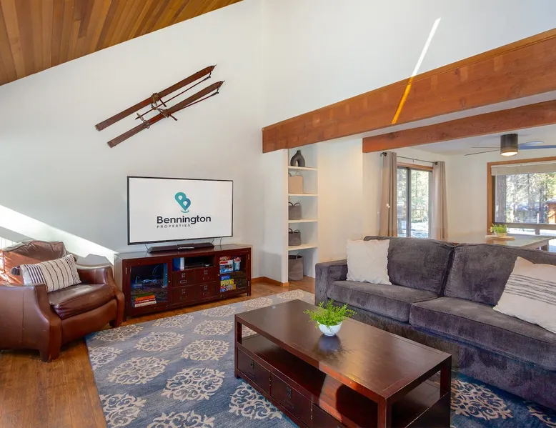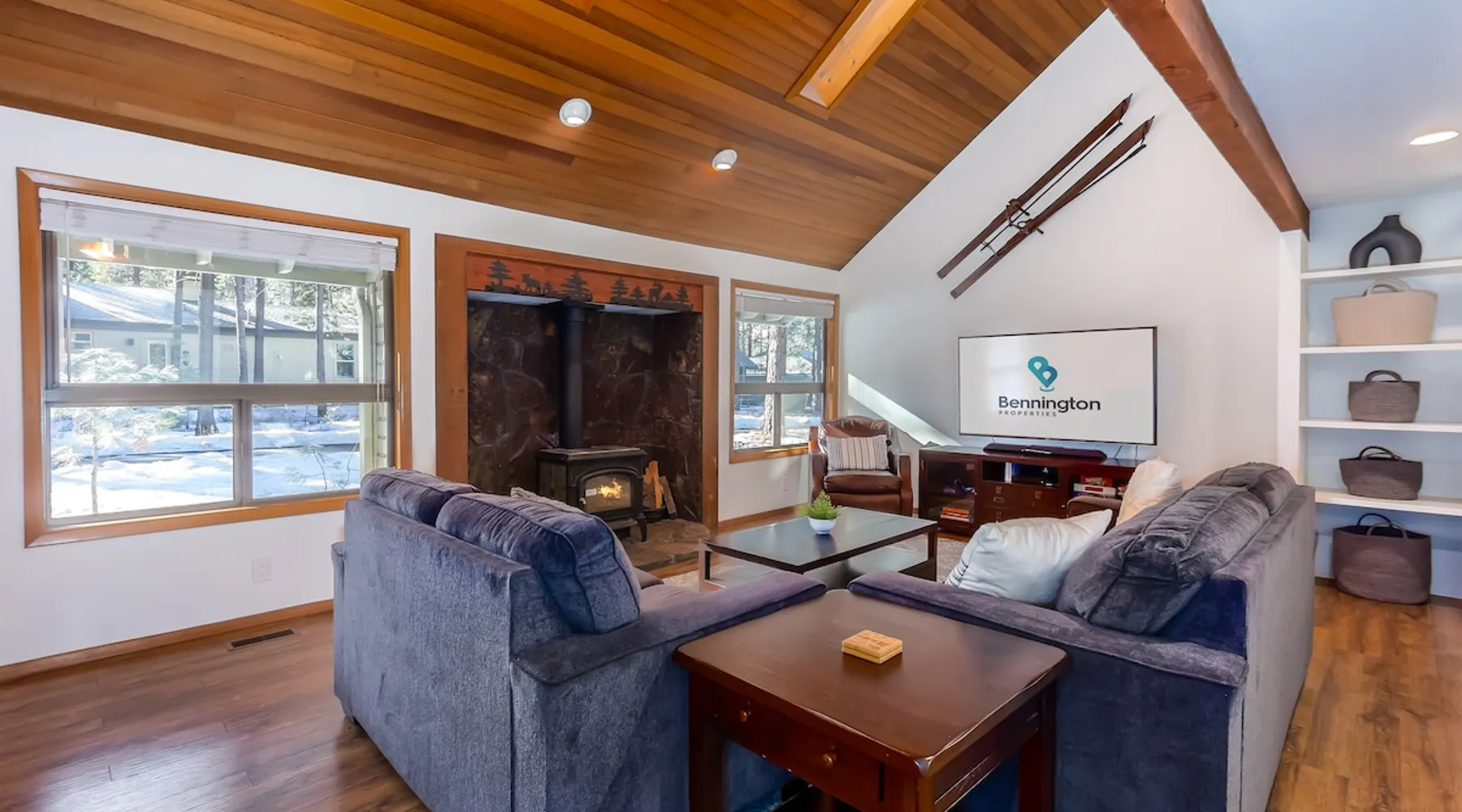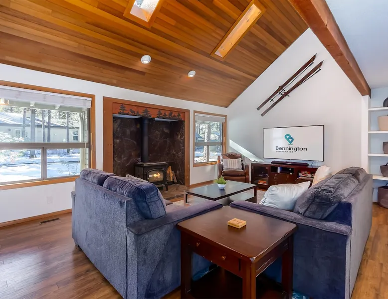 Charming Sunriver retreat with a private hot tub and cozy living spaces perfect for making memories with family and friends. Relax by the wood-burning fireplace, cook together in the fully stocked kitchen, and share meals around the dining table. Enjoy peaceful evenings under the stars and use this inviting home as your base for exploring all the beauty and adventure Sunriver has to offer. The space Welcome to 3 Otter Lane – your cozy Sunriver retreat! This charming two-level home has 3 bedrooms and 2 bathrooms, comfortably accommodating up to 8 guests with plenty of space to relax and make memories together. Step inside to a bright, inviting living room with a wood-burning fireplace, comfy sofa, loveseat, and armchair—the perfect spot to unwind with a good movie on the large flat-screen TV. Hardwood floors flow into the dining area, where a table for six sits next to the fully stocked kitchen. With stainless steel appliances, ample counter space, and a breakfast bar, meal prep is a breeze. Upstairs, you’ll find a spacious king bedroom with a workstation, a queen bedroom, and a fun bunk room with two twin-over-twin bunks, perfect for kids or extra guests. There’s a full bathroom on each level for everyone’s convenience. Outside, enjoy the low open deck, fire up the BBQ, or soak in the private hot tub under the stars. Four adult bikes are included so you can easily explore Sunriver’s 30+ miles of scenic bike paths right from your door. Please note: This home has a front door camera and strictly enforces a no-pet policy due to severe homeowner allergies. Other things to note AGE RESTRICTIONS: Guests must be 23 years or older to rent Bennington homes and the person reserving must occupy the home the whole reservation.