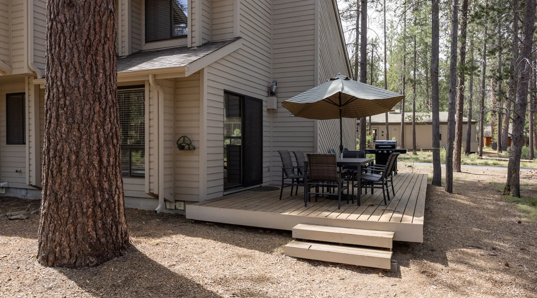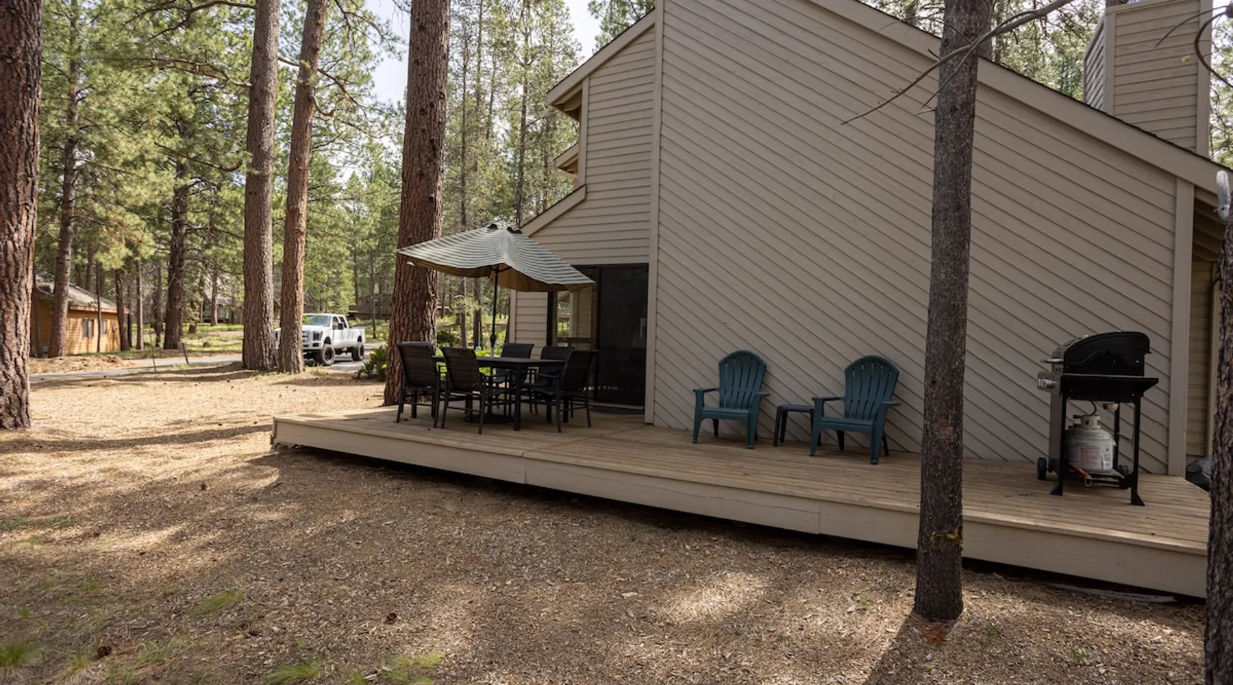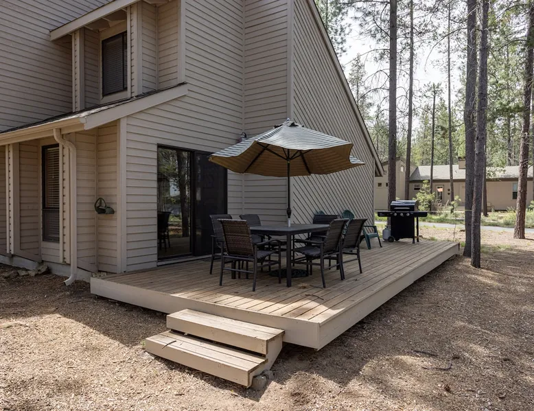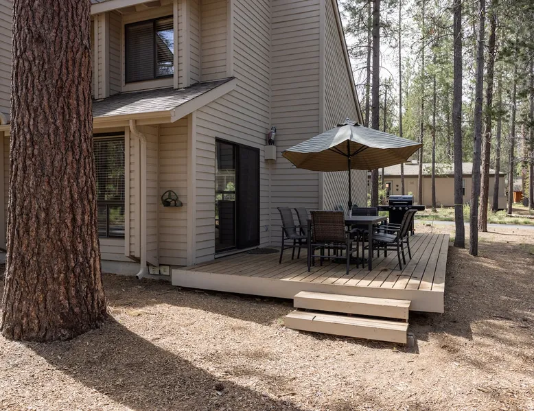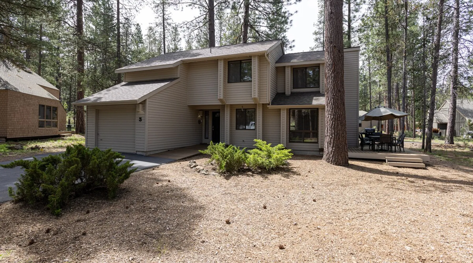 Charming Sunriver retreat with a private hot tub and cozy living spaces perfect for making memories with family and friends. Relax by the wood-burning fireplace, cook together in the fully stocked kitchen, and share meals around the dining table. Enjoy peaceful evenings under the stars and use this inviting home as your base for exploring all the beauty and adventure Sunriver has to offer. The space Welcome to 3 Otter Lane – your cozy Sunriver retreat! This charming two-level home has 3 bedrooms and 2 bathrooms, comfortably accommodating up to 8 guests with plenty of space to relax and make memories together. Step inside to a bright, inviting living room with a wood-burning fireplace, comfy sofa, loveseat, and armchair—the perfect spot to unwind with a good movie on the large flat-screen TV. Hardwood floors flow into the dining area, where a table for six sits next to the fully stocked kitchen. With stainless steel appliances, ample counter space, and a breakfast bar, meal prep is a breeze. Upstairs, you’ll find a spacious king bedroom with a workstation, a queen bedroom, and a fun bunk room with two twin-over-twin bunks, perfect for kids or extra guests. There’s a full bathroom on each level for everyone’s convenience. Outside, enjoy the low open deck, fire up the BBQ, or soak in the private hot tub under the stars. Four adult bikes are included so you can easily explore Sunriver’s 30+ miles of scenic bike paths right from your door. Please note: This home has a front door camera and strictly enforces a no-pet policy due to severe homeowner allergies. Other things to note AGE RESTRICTIONS: Guests must be 23 years or older to rent Bennington homes and the person reserving must occupy the home the whole reservation.