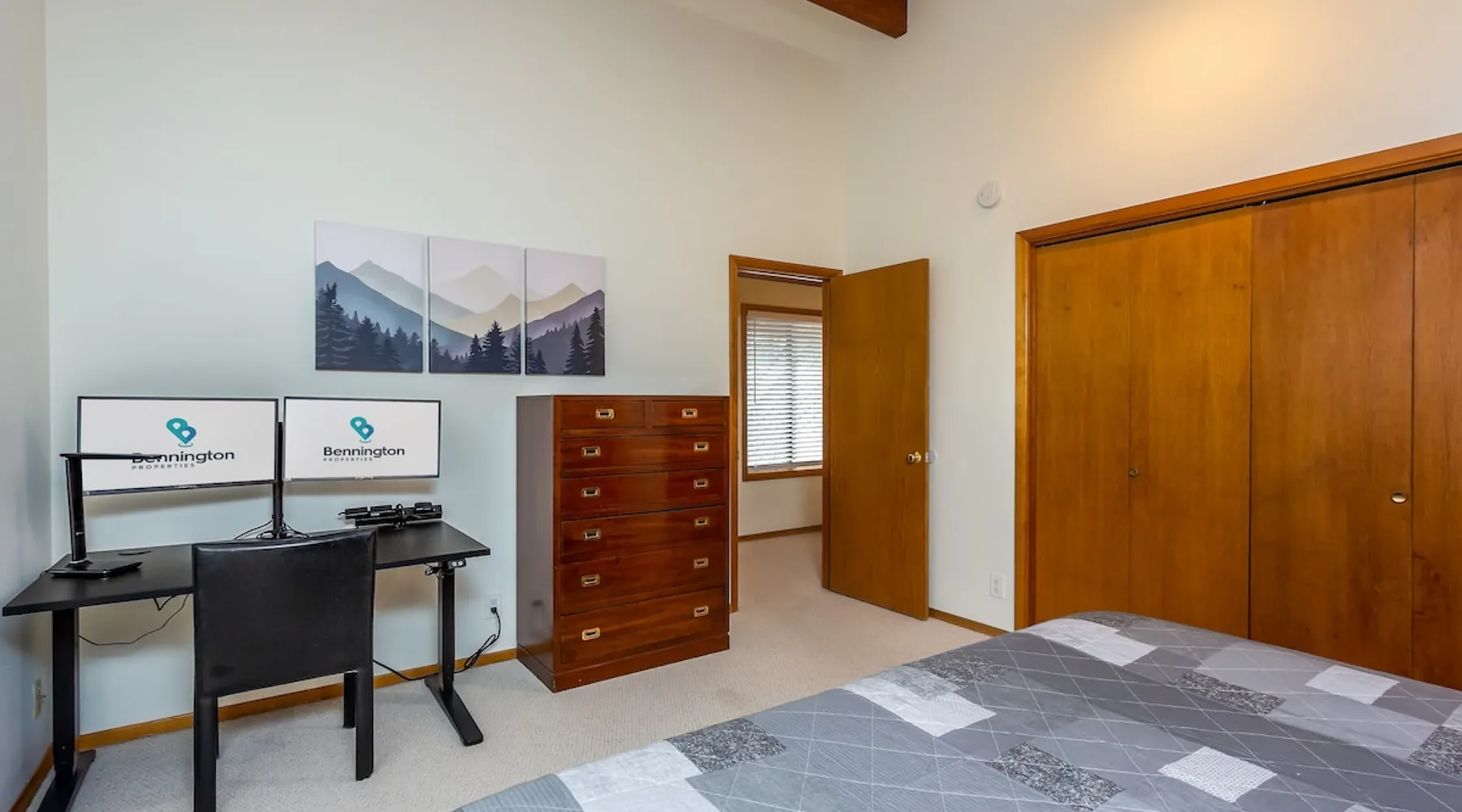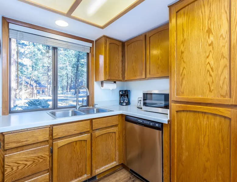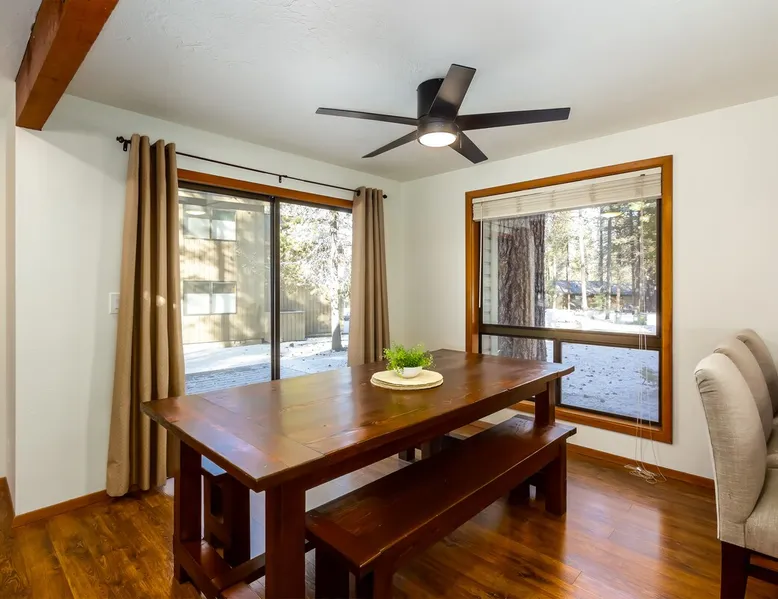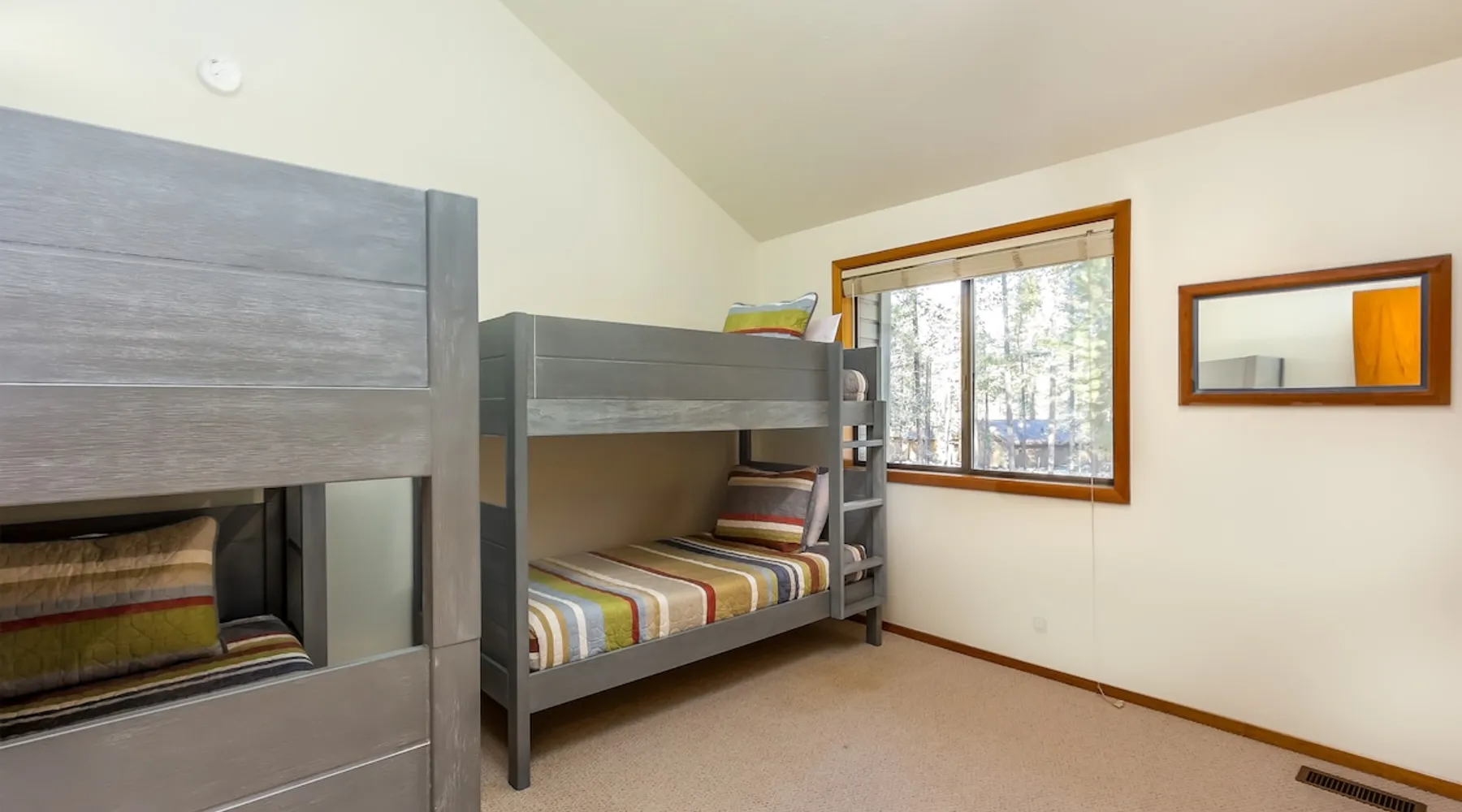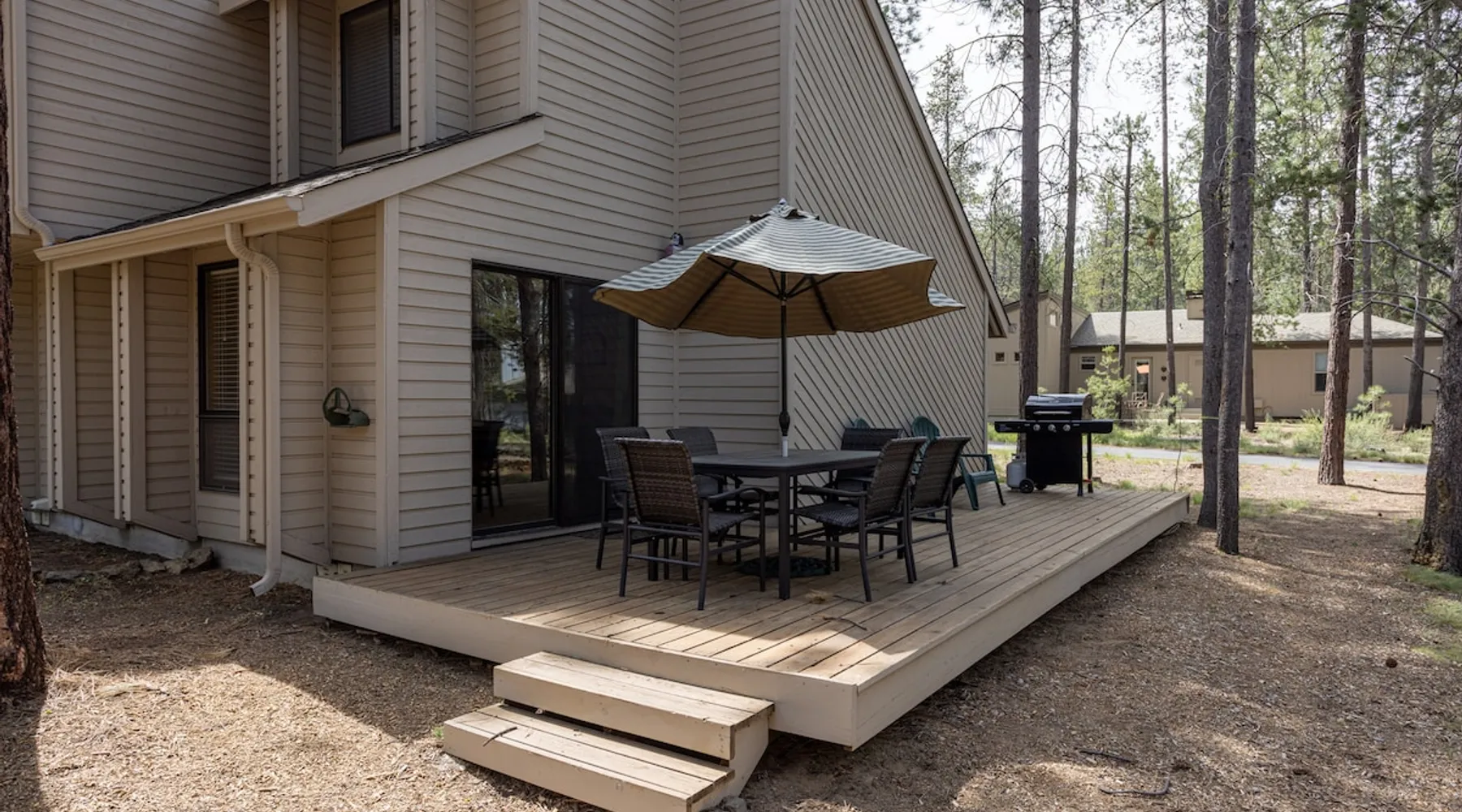 Charming Sunriver retreat with a private hot tub and cozy living spaces perfect for making memories with family and friends. Relax by the wood-burning fireplace, cook together in the fully stocked kitchen, and share meals around the dining table. Enjoy peaceful evenings under the stars and use this inviting home as your base for exploring all the beauty and adventure Sunriver has to offer. The space Welcome to 3 Otter Lane – your cozy Sunriver retreat! This charming two-level home has 3 bedrooms and 2 bathrooms, comfortably accommodating up to 8 guests with plenty of space to relax and make memories together. Step inside to a bright, inviting living room with a wood-burning fireplace, comfy sofa, loveseat, and armchair—the perfect spot to unwind with a good movie on the large flat-screen TV. Hardwood floors flow into the dining area, where a table for six sits next to the fully stocked kitchen. With stainless steel appliances, ample counter space, and a breakfast bar, meal prep is a breeze. Upstairs, you’ll find a spacious king bedroom with a workstation, a queen bedroom, and a fun bunk room with two twin-over-twin bunks, perfect for kids or extra guests. There’s a full bathroom on each level for everyone’s convenience. Outside, enjoy the low open deck, fire up the BBQ, or soak in the private hot tub under the stars. Four adult bikes are included so you can easily explore Sunriver’s 30+ miles of scenic bike paths right from your door. Please note: This home has a front door camera and strictly enforces a no-pet policy due to severe homeowner allergies. Other things to note AGE RESTRICTIONS: Guests must be 23 years or older to rent Bennington homes and the person reserving must occupy the home the whole reservation.