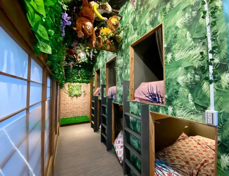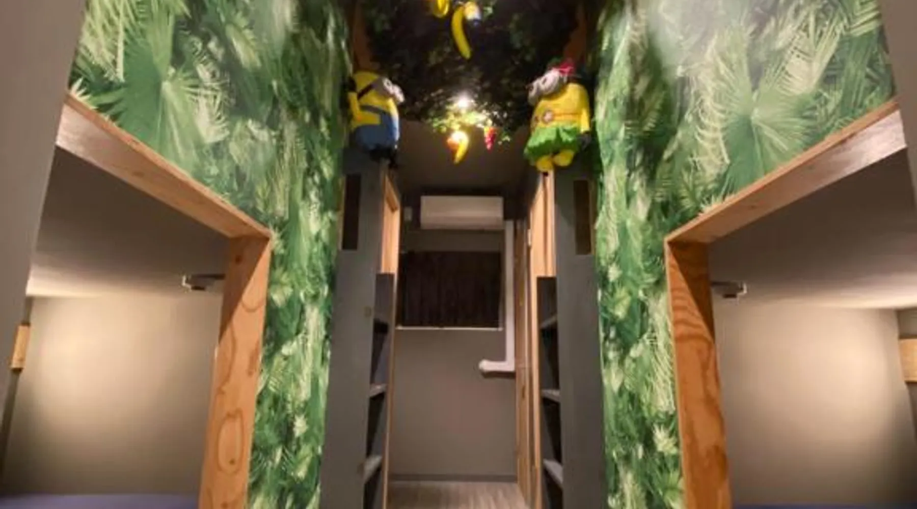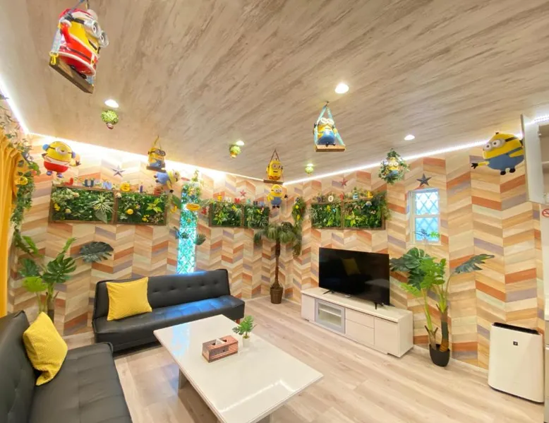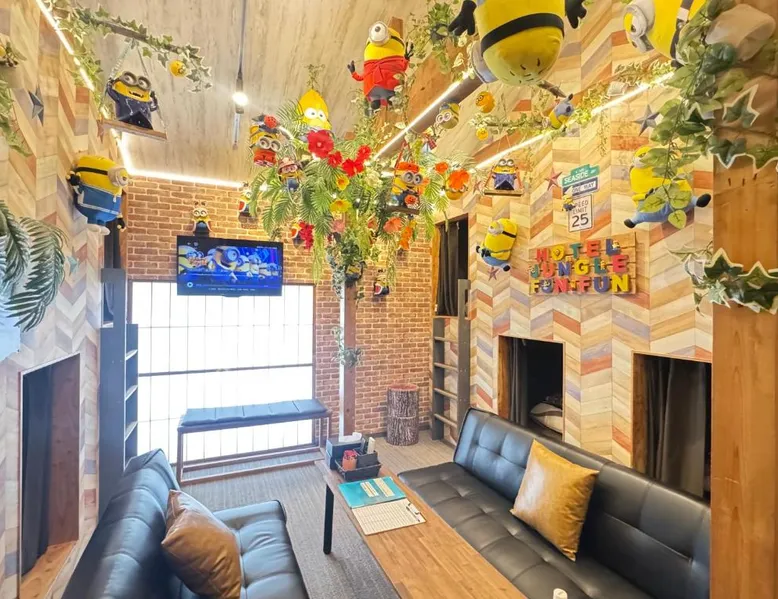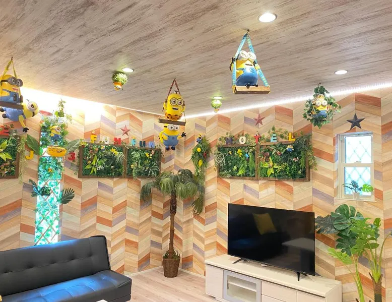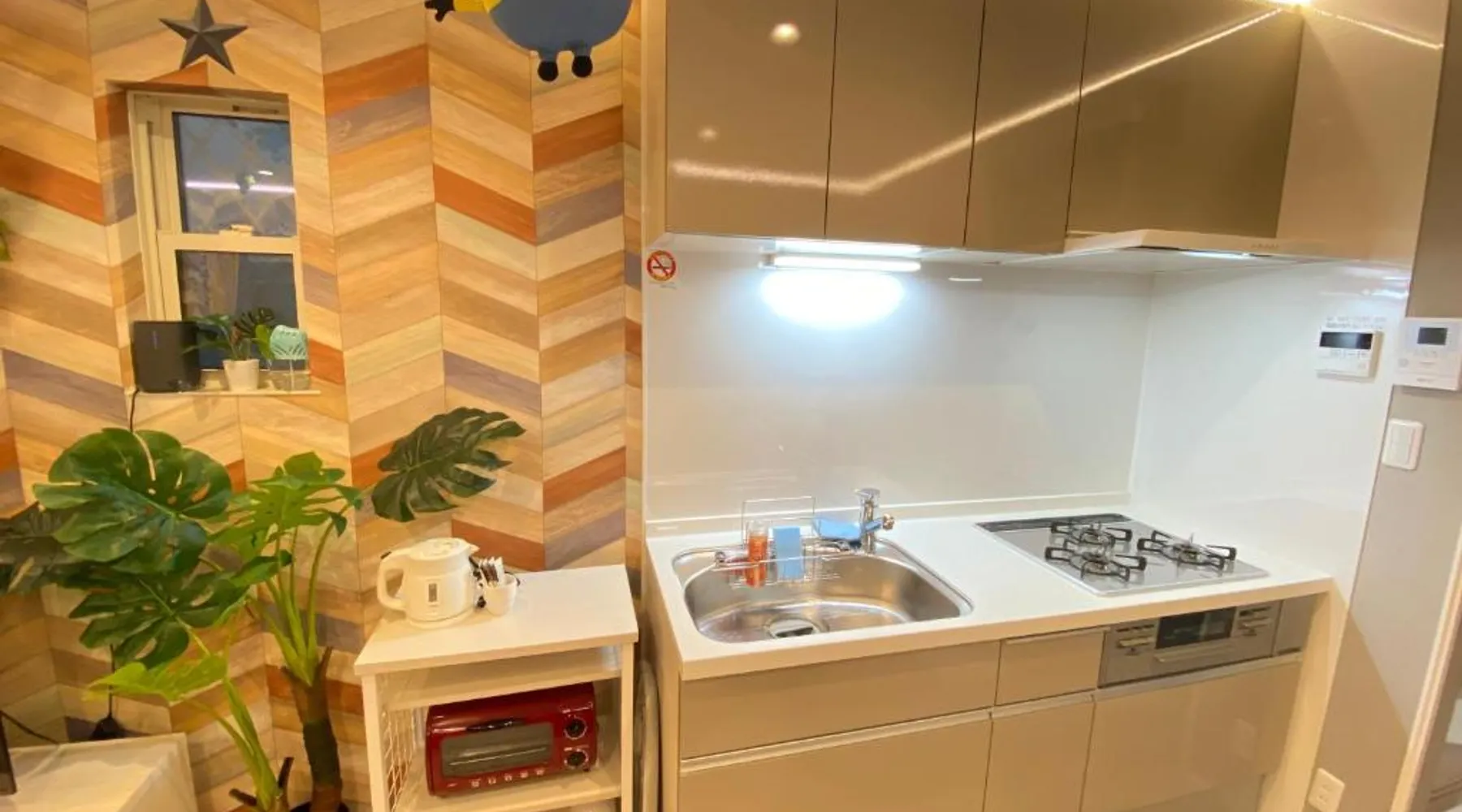 Comfortable Accommodations: Hotel Jungle fun fun in Osaka offers apartment-style rooms with air-conditioning, balconies, and private bathrooms. Each unit includes a washing machine, refrigerator, work desk, and free toiletries. Essential Facilities: Guests enjoy free WiFi, full-day security, and luggage storage. Additional amenities include a terrace, kitchenette, and city views. Prime Location: Located in the city center, the property is 12 mi from Itami Airport. Nearby attractions include Wiste Mall, Tenjinsha Shrine, and Shimo-fukushima Park, each 1.2 mi away. Hiking trails are also available in the surroundings. Guest Satisfaction: Highly rated for its child-friendliness and family-friendly environment, the hotel ensures a pleasant stay for all visitors. This spacious suite is consisted of of 1 living room, 1 separate bedroom and 1 bathroom with a bath and free toiletries. The well-equipped kitchen features a refrigerator, kitchenware, a microwave and a tea and coffee maker. Featuring a terrace, this suite also offers air conditioning, a washing machine and a flat-screen TV. The unit offers 12 beds.