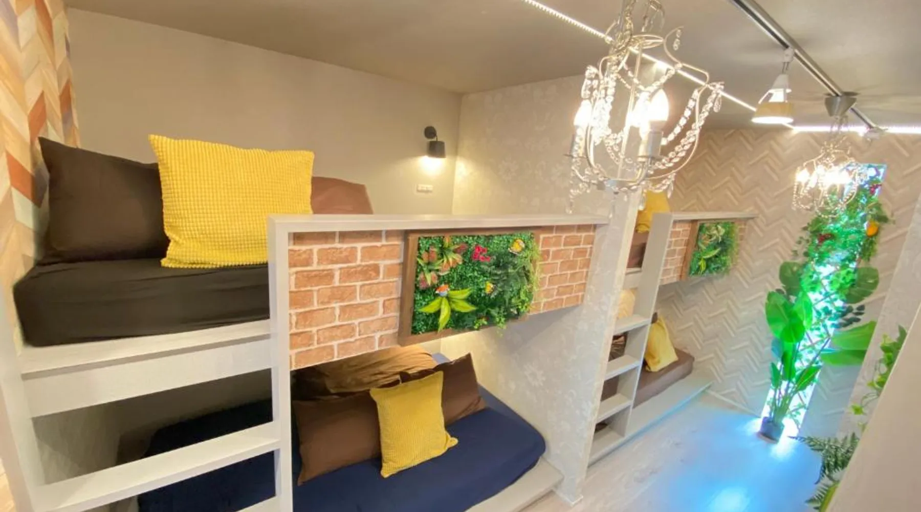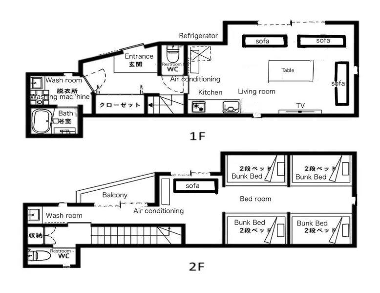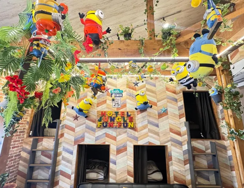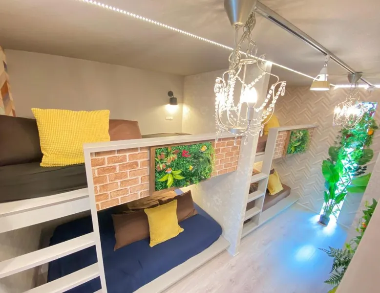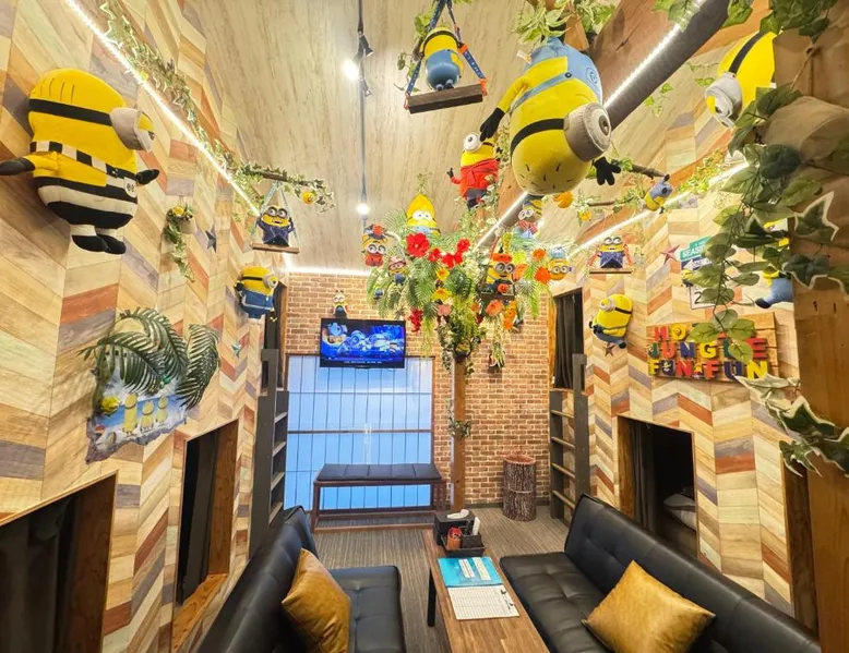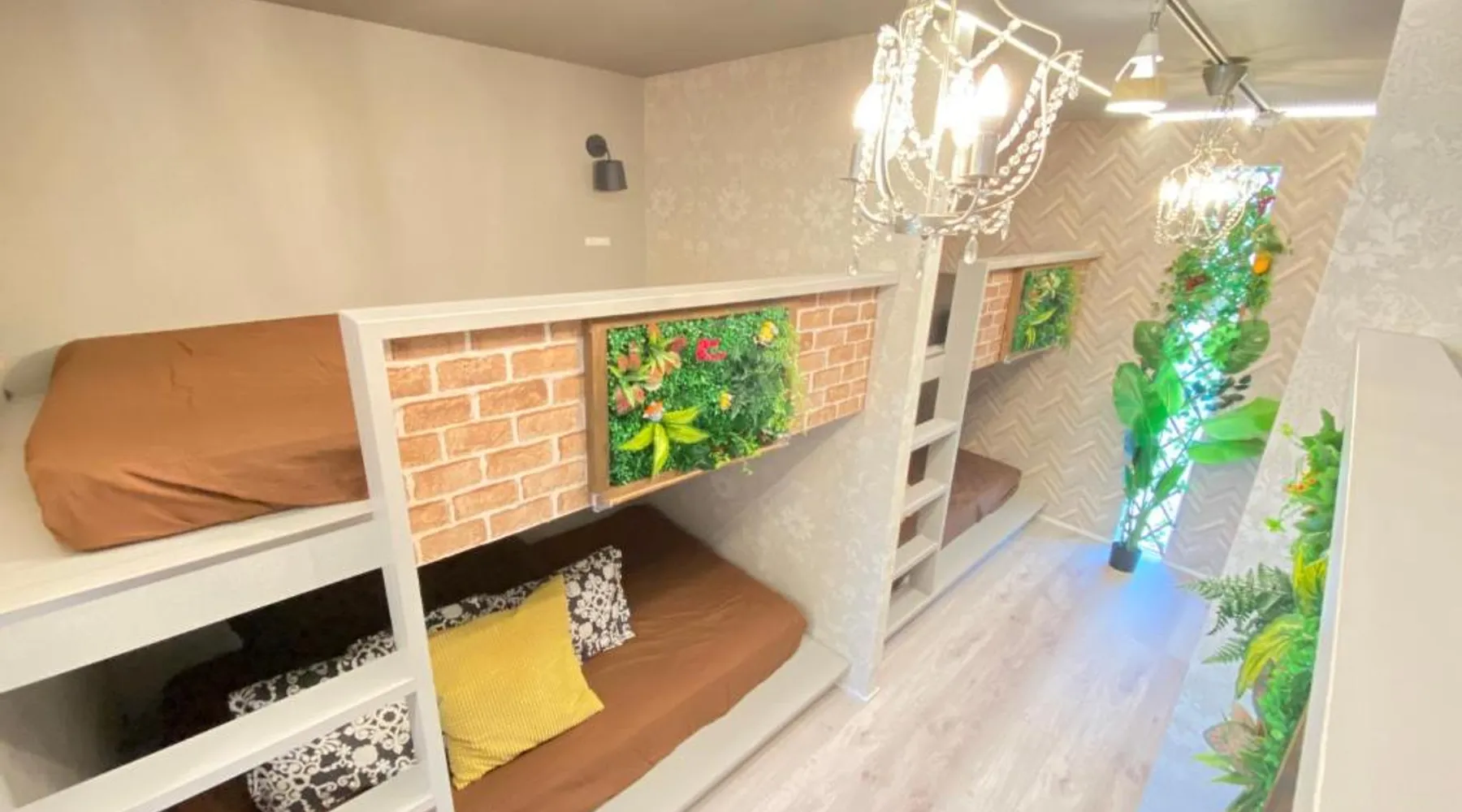 Comfortable Accommodations: Hotel Jungle fun fun in Osaka offers apartment-style rooms with air-conditioning, balconies, and private bathrooms. Each unit includes a washing machine, refrigerator, work desk, and free toiletries. Essential Facilities: Guests enjoy free WiFi, full-day security, and luggage storage. Additional amenities include a terrace, kitchenette, and city views. Prime Location: Located in the city center, the property is 12 mi from Itami Airport. Nearby attractions include Wiste Mall, Tenjinsha Shrine, and Shimo-fukushima Park, each 1.2 mi away. Hiking trails are also available in the surroundings. Guest Satisfaction: Highly rated for its child-friendliness and family-friendly environment, the hotel ensures a pleasant stay for all visitors. This spacious suite is consisted of of 1 living room, 1 separate bedroom and 1 bathroom with a bath and free toiletries. The well-equipped kitchen features a refrigerator, kitchenware, a microwave and a tea and coffee maker. Featuring a terrace, this suite also offers air conditioning, a washing machine and a flat-screen TV. The unit offers 12 beds.