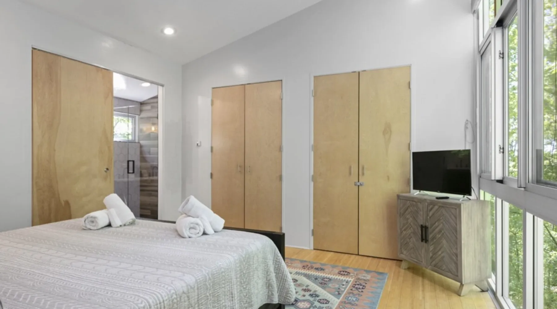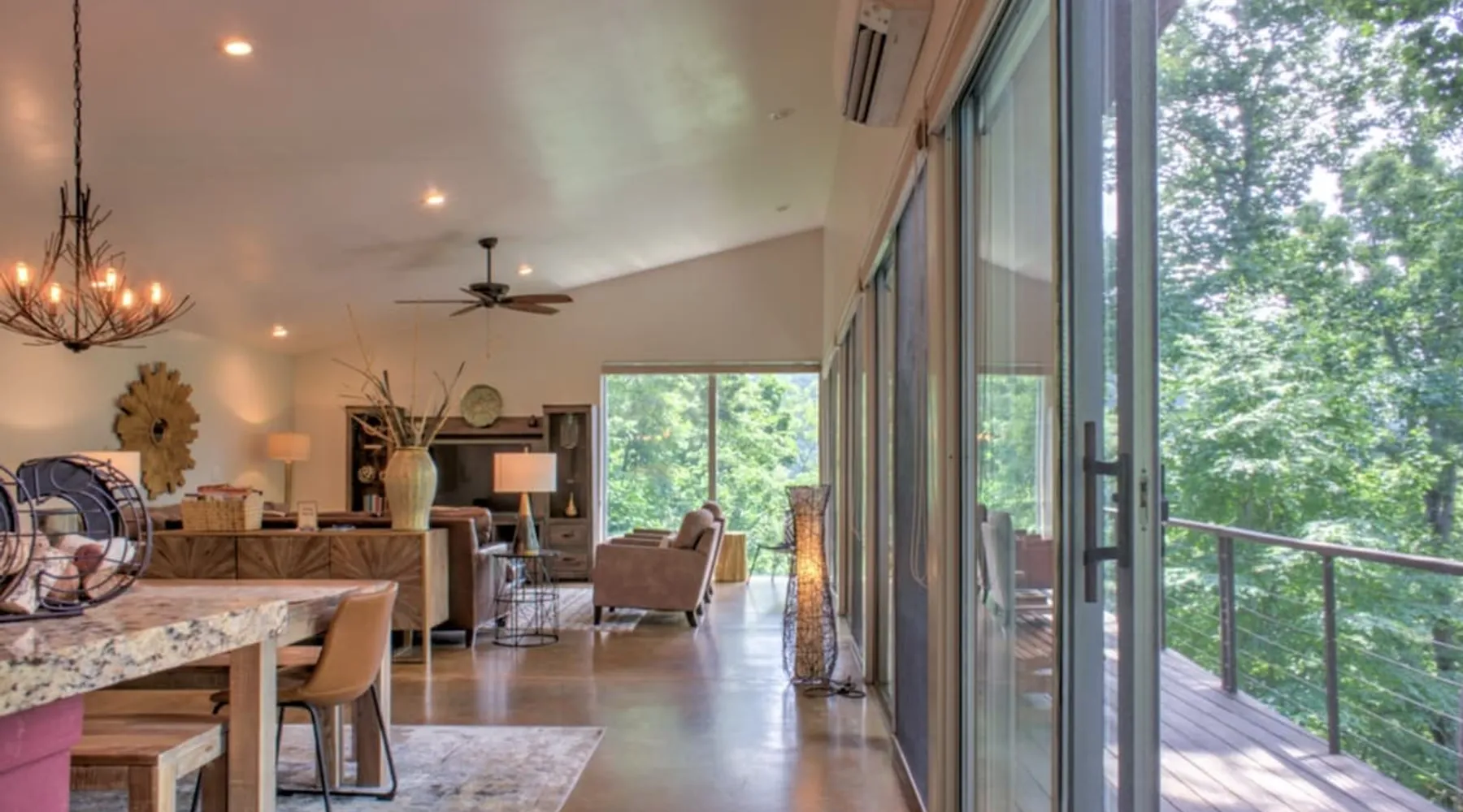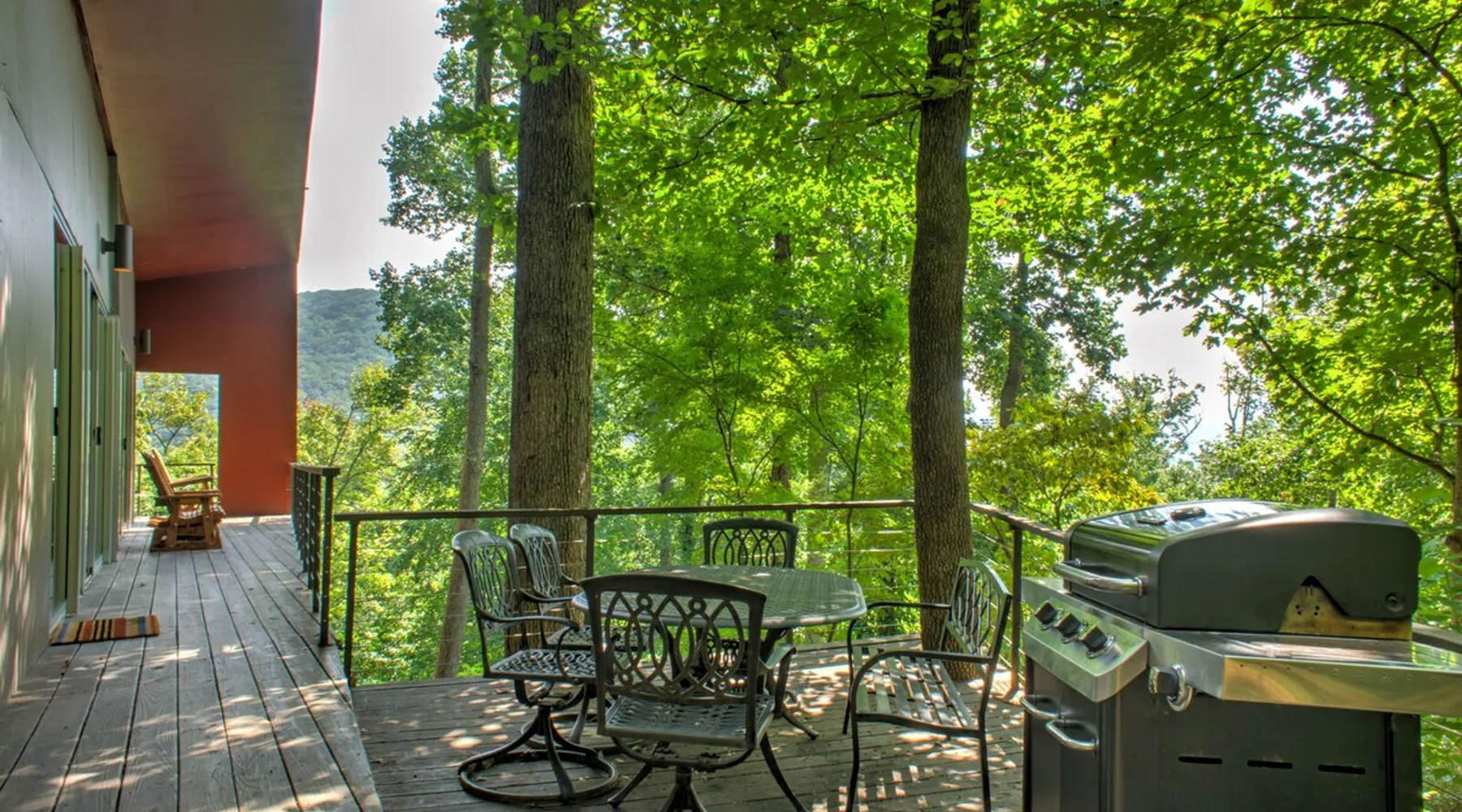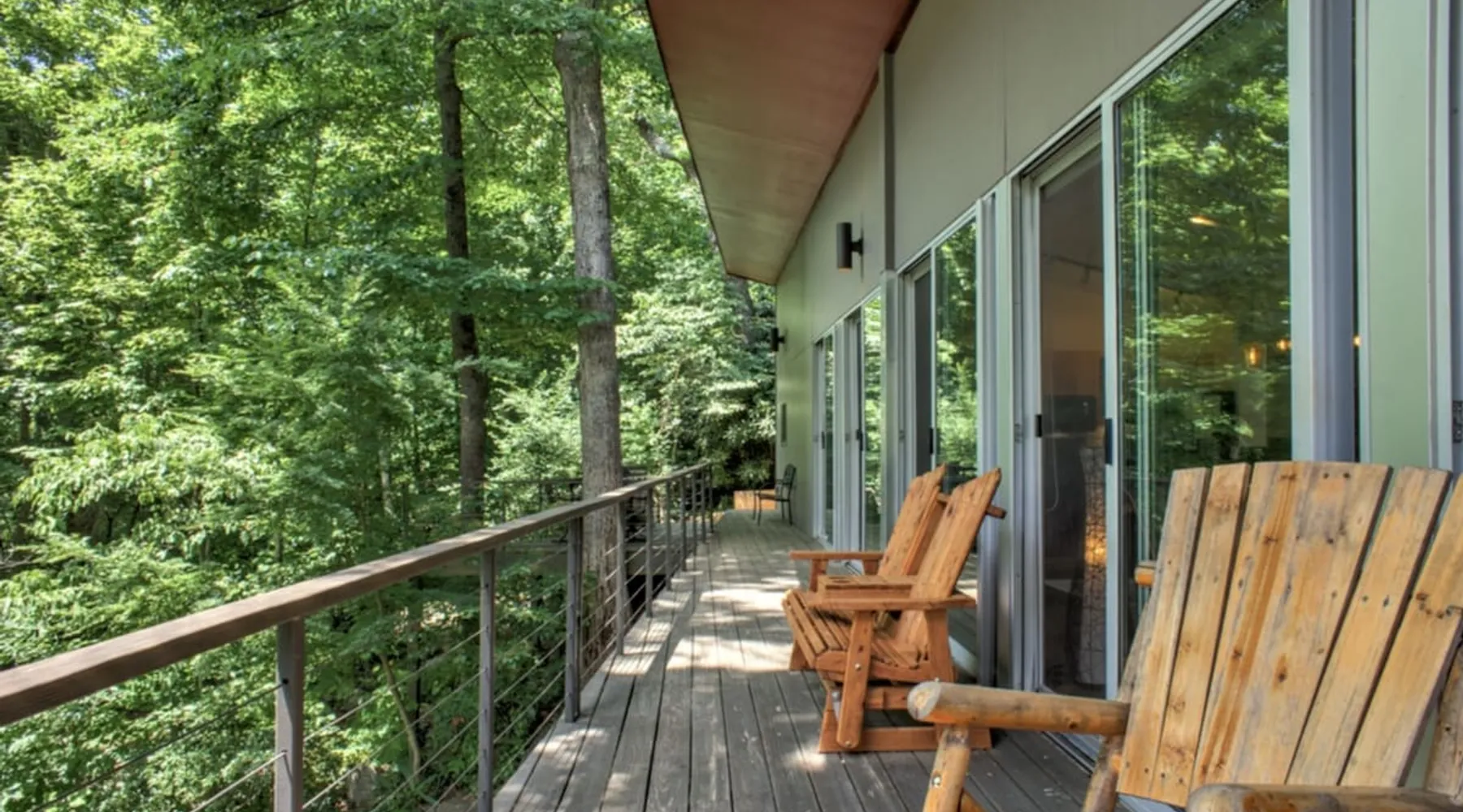 Welcome to Tara's Treehouse, a hidden gem nestled amidst the beauty of nature. This mountain modern house offers a perfect blend of contemporary design and rustic charm, creating a truly enchanting retreat. The modern details of the house are accentuated by tasteful rustic decor touches, creating a warm and inviting atmosphere. This idyllic retreat offers the perfect balance between seclusion and accessibility, as it's just a short 20-minute drive from downtown Asheville, NC. The space As you step inside, you'll be captivated by the stunning wall of windows that flood the space with natural light and offer picturesque views of the surrounding wilderness. The spacious open floor plan including living, dining and kitchen is the perfect space to gather and create memories. The highlight of the house is the wrap-around deck, where you can immerse yourself in the tranquility of the forest, enjoying all that nature has to offer. Whether you're lounging on the deck or sitting by the fire pit, Tara's Treehouse promises a peaceful escape from the hustle and bustle of everyday life. Tara's Treehouse boasts three bedrooms, ensuring ample space for you and your group to relax and unwind. There are plenty of activities onsite including a playground, disc golf and shuffle board. With its pet-friendly policy, you can bring along your furry companions to share in the joy of this magical hideaway. Whether you're seeking outdoor adventures in the nearby mountains or exploring the vibrant city life, Tara's Treehouse serves as an ideal base for your explorations. Escape to this tranquil sanctuary and create lasting memories in the heart of nature's splendor. Whether you're seeking adventure or simply craving a peaceful break from the city's pace, Tara's Treehouse promises an unforgettable experience for all who enter its welcoming embrace. Exclusive Yonder Special: When you book Tara's Treehouse you will receive a special code for discounted tickets to the Biltmore Estate! Click here for more info. Home Truths: - Sleeps in beds: 6 - Max Occupancy: 8 - Sleeper sofa in the living room - Yonder provides linens for all beds; other occupancy will require guests providing their own linens - Internet Speed: Download - 300Mbps - Parking for 2 vehicles - Cleaning fee: Yonder openly shares our Cleaning Fees in a manner of full disclosure, as we think this is the most honest and forthright approach with respect to our guests. Our Cleaning Fees are backed by our Clean Guarantee, which reflects the highest level of standards, pristine environments for our guests, and a level of clean that surpasses any other vacation homes; we literally guarantee it! Quiet Policy: Please note that the property is located in a quiet community. Parties, loud noise and unruly behavior are absolutely prohibited, and guests are expected to respect the neighbors and the peace this mountain retreat area affords. Early Check In and/or Late Check Out may be possible, depending on cleaning schedules and other reservations. If it is possible, there may be an additional fee that would be determined based on the time that you wish to check in or out and the seasonal rates. Pets: This home and property are very dog friendly, and guests are welcome to bring their "best friends" with them. There is a non-refundable Pet Fee of $130 with a limit of 2 dogs per booking party. *If additional pets are approved, additional charges will apply (This is NOT automatically added by VRBO, TripAdvisor or Airbnb, so please let us know so that we can add the fee for you) Please inquire for details regarding payment, the cancellation policy, military discounts, and trip insurance. Note: Reservations over 30 days are subject for review prior to acceptance. A separate rental agreement will be required for 90+ day stays. Last Minute Bookings: Reservations made within 7 days of check-in require additional documentation before confirmation.