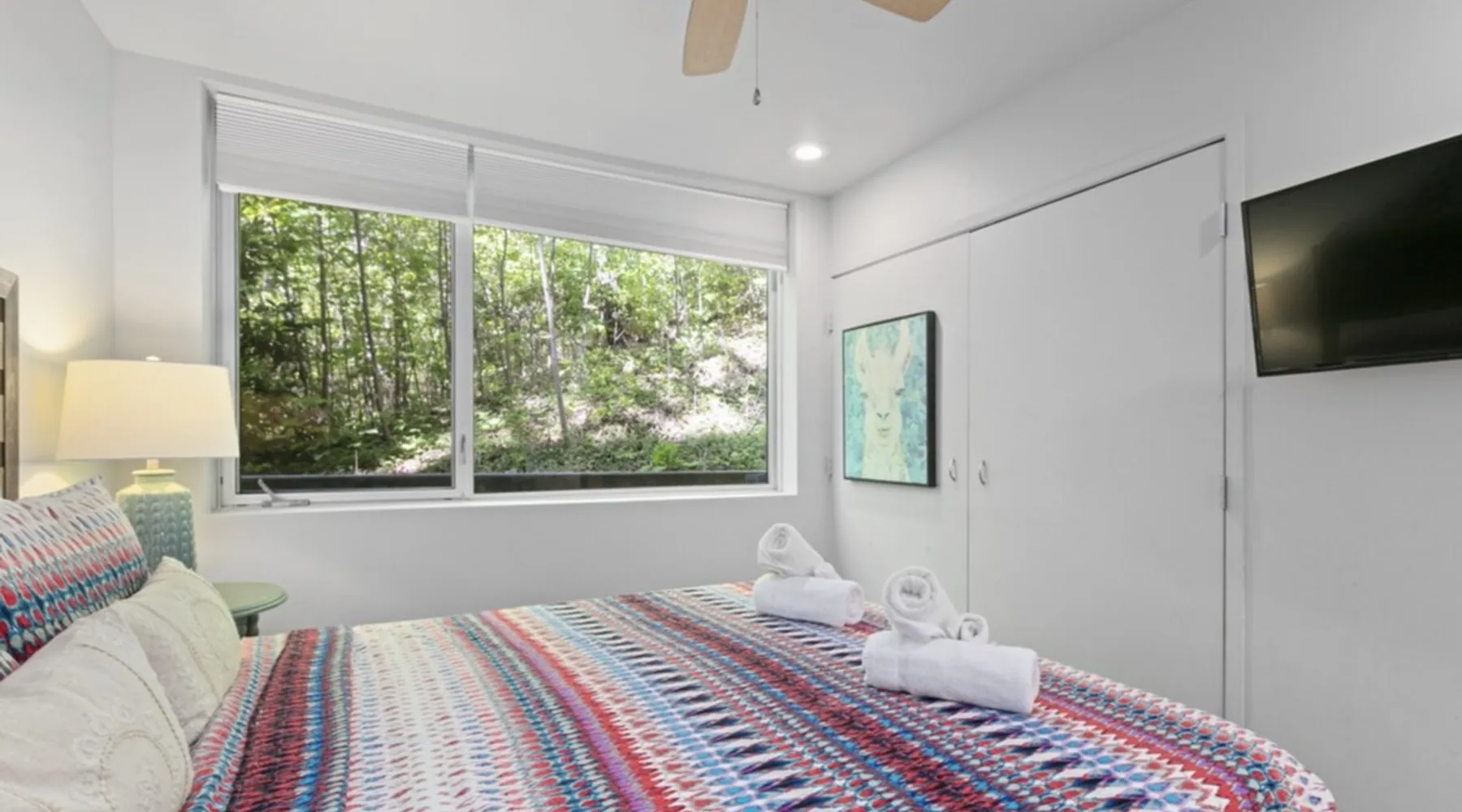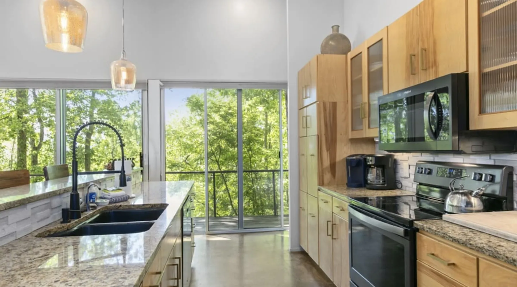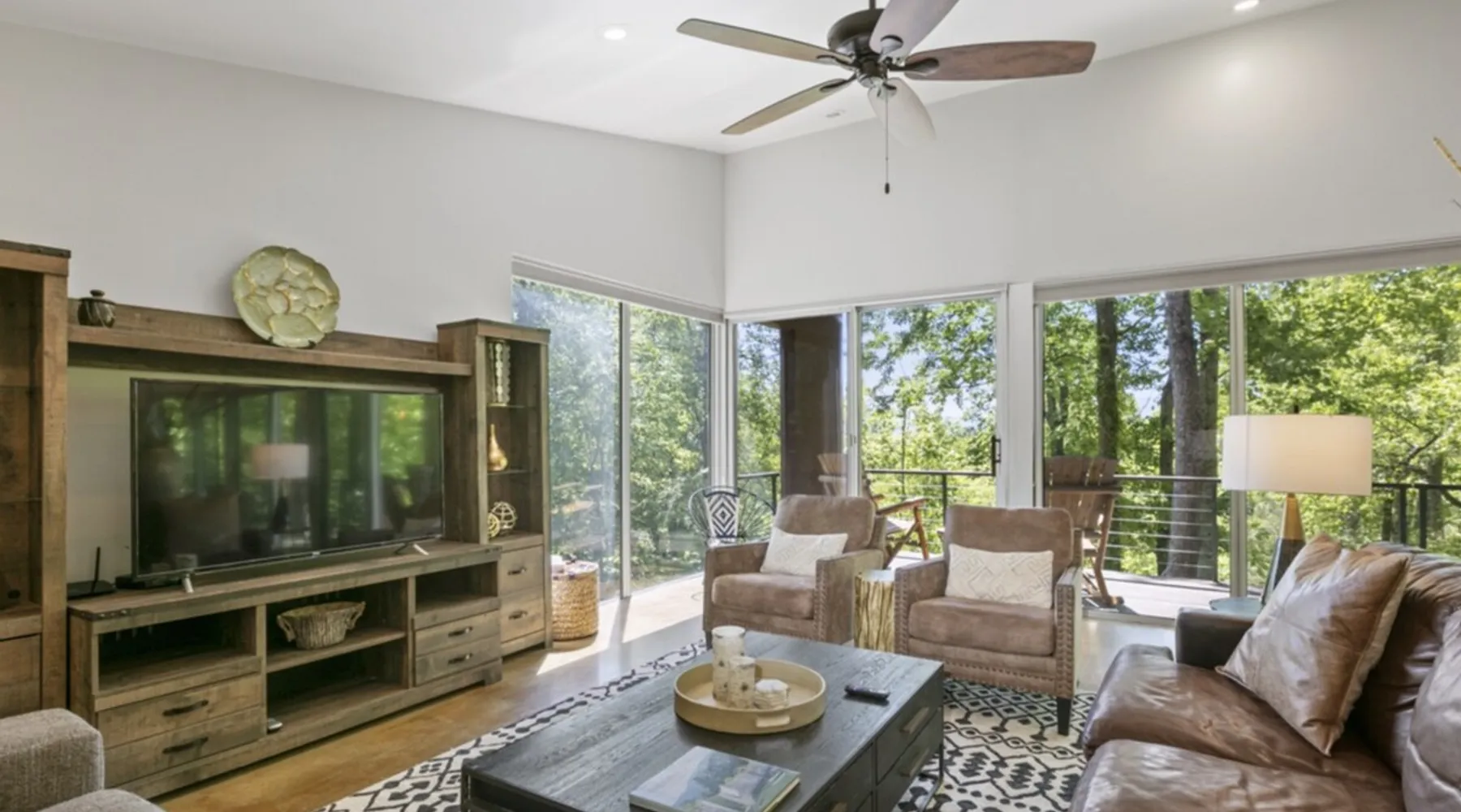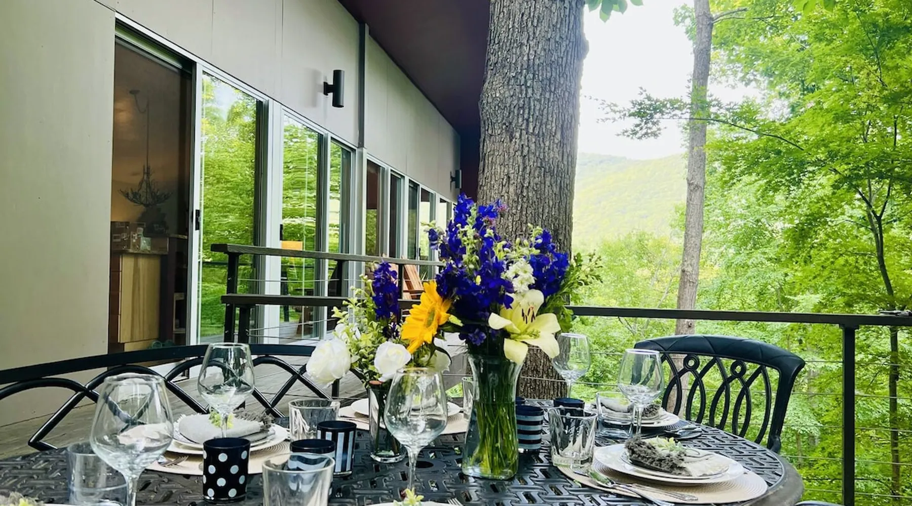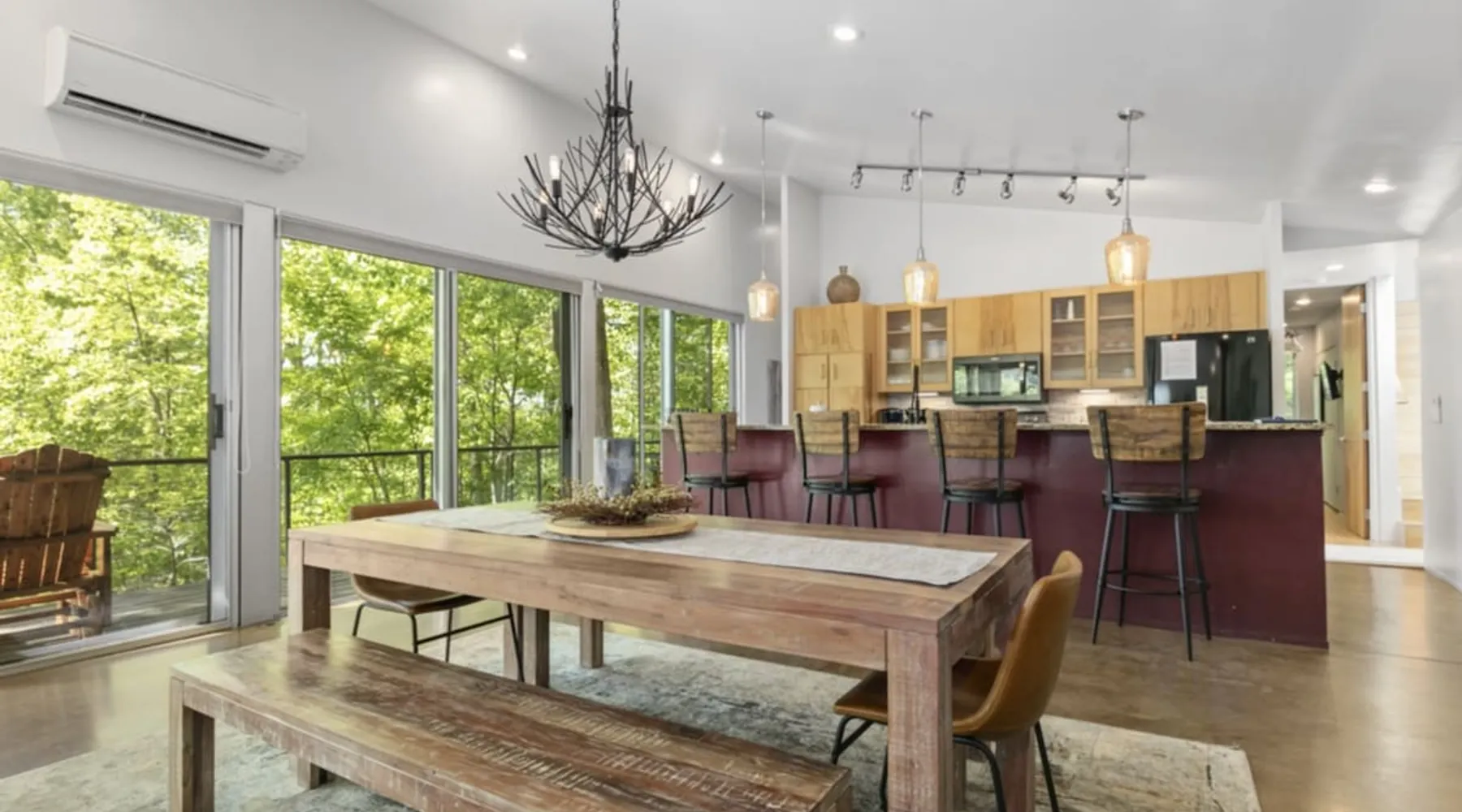Welcome to Tara's Treehouse, a hidden gem nestled amidst the beauty of nature. This mountain modern house offers a perfect blend of contemporary design and rustic charm, creating a truly enchanting retreat. The modern details of the house are accentuated by tasteful rustic decor touches, creating a warm and inviting atmosphere. This idyllic retreat offers the perfect balance between seclusion and accessibility, as it's just a short 20-minute drive from downtown Asheville, NC. The space As you step inside, you'll be captivated by the stunning wall of windows that flood the space with natural light and offer picturesque views of the surrounding wilderness. The spacious open floor plan including living, dining and kitchen is the perfect space to gather and create memories. The highlight of the house is the wrap-around deck, where you can immerse yourself in the tranquility of the forest, enjoying all that nature has to offer. Whether you're lounging on the deck or sitting by the fire pit, Tara's Treehouse promises a peaceful escape from the hustle and bustle of everyday life. Tara's Treehouse boasts three bedrooms, ensuring ample space for you and your group to relax and unwind. There are plenty of activities onsite including a playground, disc golf and shuffle board. With its pet-friendly policy, you can bring along your furry companions to share in the joy of this magical hideaway. Whether you're seeking outdoor adventures in the nearby mountains or exploring the vibrant city life, Tara's Treehouse serves as an ideal base for your explorations. Escape to this tranquil sanctuary and create lasting memories in the heart of nature's splendor. Whether you're seeking adventure or simply craving a peaceful break from the city's pace, Tara's Treehouse promises an unforgettable experience for all who enter its welcoming embrace. Exclusive Yonder Special: When you book Tara's Treehouse you will receive a special code for discounted tickets to the Biltmore Estate! Click here for more info. Home Truths: - Sleeps in beds: 6 - Max Occupancy: 8 - Sleeper sofa in the living room - Yonder provides linens for all beds; other occupancy will require guests providing their own linens - Internet Speed: Download - 300Mbps - Parking for 2 vehicles - Cleaning fee: Yonder openly shares our Cleaning Fees in a manner of full disclosure, as we think this is the most honest and forthright approach with respect to our guests. Our Cleaning Fees are backed by our Clean Guarantee, which reflects the highest level of standards, pristine environments for our guests, and a level of clean that surpasses any other vacation homes; we literally guarantee it! Quiet Policy: Please note that the property is located in a quiet community. Parties, loud noise and unruly behavior are absolutely prohibited, and guests are expected to respect the neighbors and the peace this mountain retreat area affords. Early Check In and/or Late Check Out may be possible, depending on cleaning schedules and other reservations. If it is possible, there may be an additional fee that would be determined based on the time that you wish to check in or out and the seasonal rates. Pets: This home and property are very dog friendly, and guests are welcome to bring their "best friends" with them. There is a non-refundable Pet Fee of $130 with a limit of 2 dogs per booking party. *If additional pets are approved, additional charges will apply (This is NOT automatically added by VRBO, TripAdvisor or Airbnb, so please let us know so that we can add the fee for you) Please inquire for details regarding payment, the cancellation policy, military discounts, and trip insurance. Note: Reservations over 30 days are subject for review prior to acceptance. A separate rental agreement will be required for 90+ day stays. Last Minute Bookings: Reservations made within 7 days of check-in require additional documentation before confirmation.