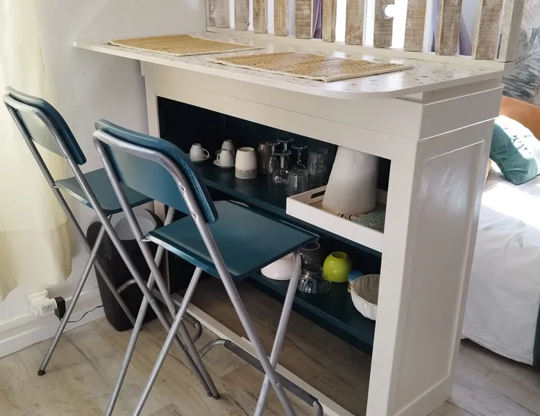 10 minutes from St Émilion, 30 minutes from Bordeaux, in the city center of Libourne, on a quiet street, just behind the walls of the bastide, 6 minutes from the train station and 2 minutes walk from the shopping street, you will find everything you need. This charming studio, with exposed stone walls and warm decor, will welcome you with all the necessary comforts and amenities. (Nb: an on-site sauna area, and possibility of massage by appointment) so what are you waiting for? The space Independent accommodation, with shared laundry room with access to 1 washing machine, dryer, ironing board and iron and even a steamer. The studio includes a bedroom area and a kitchen area with a space for 2 to eat. You will find a bathroom with everything you need, shower gel, hair dryer, bath towels, and a separate toilet. If you have a bike, you can leave it in our garage. the main entrance for tenants is through the garage and the studio is on the 1st floor. Guest access the whole studio and laundry room Other things to note I welcome guests, but in case there is a lockbox for late check-ins or if I am not available.