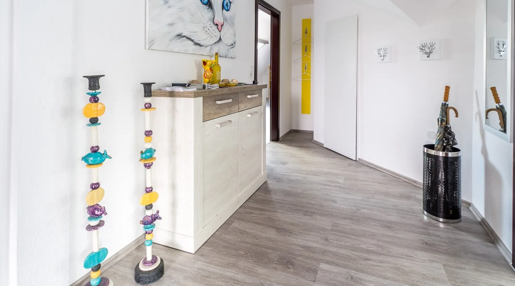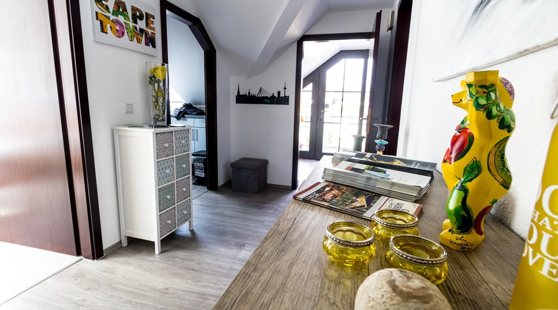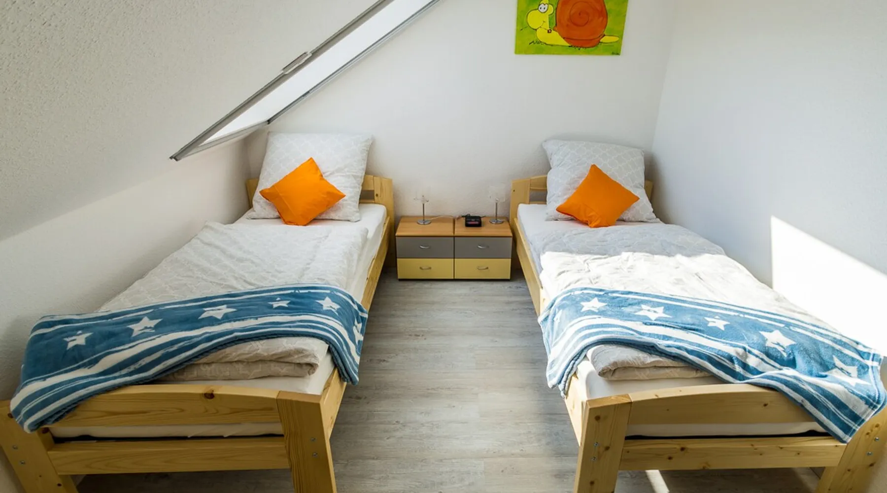Our 4 * apartment is located in Wesel-Blumenkamp. It is located at the end of a dead end road on the 1st floor of our modern two-family house. The rental of holiday guests takes place after a core renovation. Through the core renovation, we offer you the comfort you need for a relaxing holiday. To express this comfort, we have decided to have our apartment objectively reviewed by the DTV classification. We are very proud that our apartment was awarded 4 * The space Our 4 star apartment can comfortably accommodate up to 4 persons with a size of 75 square meters. Air conditioning (individually adjustable) is available in the rooms. Outlets with integrated child safety devices are installed in all rooms. The windows in the living and sleeping area are provided with electric blinds. The apartment will be prepared for your stay. The beds are freshly made, towels and shower towels as well as bathrobes and dish towels are available. A basic set of e.g. toilet paper, hand soap, paper towels, baking paper, dishwasher tablets, spices is available. Our apartment is a non-smoking apartment. Smoking in the apartment is not allowed. We ask for your understanding that pets are not allowed in the apartment! The apartment has been fully furnished with attention to detail. This includes: Large bedroom with box spring bed at a comfortable height of 56 cm (1.80 m x m ) 2 Satellite TV pull-out sofa bed Safe 2. Bedroom beds can be placed either together or apart (each bed: 0.90 m x 2.00 m) Bathroom high quality modern bathroom. Rainshower / Shower XXL Shower Cabin Hair dryer towels and shower towels Kitchen Microwave Oven, ceramic hob Extractor hood Coffee machine Kettle egg cooker Toaster Dishwasher Fridge with freezer other kitchen utensils Living & Dining Room Satellite TV Stereo System Bluray Player Wii Wifi free utility room Washer drying rack ironing board ironing board Guest access Our apartment has a separate entrance and is completely at your disposal. Other things to note Children's package Stokke Stair High chair Travel cot with mattress, bed and bed linen Baby bathtub diaper bucket bottle warmer and sterilizer Baby monitor changing mat can be booked on request for 20.00 euros / stay.