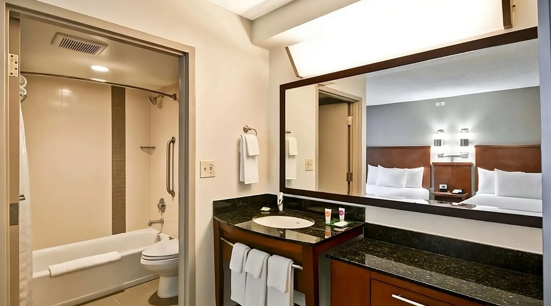 Situated moments from the I-85 highway in suburban Duluth, this hotel offers the ideal location for exploring nearby attractions and the Metropolitan Atlanta region. The area has several family-friendly activities, including Hermitage Plantation, World of Coca-Cola, and Six Flags Over Georgia. The hotel also provides a convenient base for visits to Gas South Arena, State Farm Arena, and Mercedes-Benz Stadium. The close by Stone Mountain Park will interest those who prefer outdoor pursuits. The space Our pet-friendly hotel's spacious rooms have double, queen, or king beds. All rooms also feature a host of contemporary amenities, including a flat-screen TV, coffee maker, separate seating area, and free Wi-Fi. The hotel's casual restaurant offers breakfast, coffee, light bites, and shared appetizers and snacks. The on-site bar is ideal for ending the day with a house-crafted cocktail, wine, or beer. Guests can also work out at the fitness center before unwinding in the seasonal outdoor pool. The hotel offers a 24-hour business center for corporate travelers, with meeting rooms and conferencing space available. Complimentary parking and shuttle services around the community are also provided. PLEASE NOTE: This listing is specifically for a hotel room located within a hotel, distinguishing it from typical residential or apartment accommodations. - These are TWO separate hotel rooms. Rooms are individually unique and may not be adjoining or adjacent, allocated based on availability upon arrival. The price is for all rooms. - Early check-in is subject to availability upon arrival. - To check-in, bring your valid government-issued photo ID or passport to the front desk in the lobby. The minimum age required to check-in is 21 years old. This accommodation is a part of Sonesta Select Atlanta Duluth. We're delighted you're considering RoomPick’s curated selection of boutique hotels, condo hotels, and resorts worldwide. THE UNITS Each 475sf unit features: - 2 Double beds; - Sofa bed; - Housekeeping on request; - Coffee maker, Mini fridge; - All linens, towels, and bathroom essentials are provided. You don’t need to bring a thing!! THE PROPERTY Our family-friendly property provides the following on-site amenities: - 24/7 Front desk and Security; - Seasonal outdoor swimming pool; - Loungers and towels by the pool; - Fitness center; - Business center; - Pet fee: USD 75 per pet, per stay (maximum USD 175 per stay) plus USD 100 one-time cleaning fee; - Parking is available for guests on the property and is free of cost (for 1 car per unit). Please ensure you have a valid ID for check-in, as it is mandatory for entry. Guest access There is a 24/7 front desk in the building that handles the keys. The guests can keep their luggage at the front desk before check-in and after check out. Other things to note We have more units to accommodate larger groups