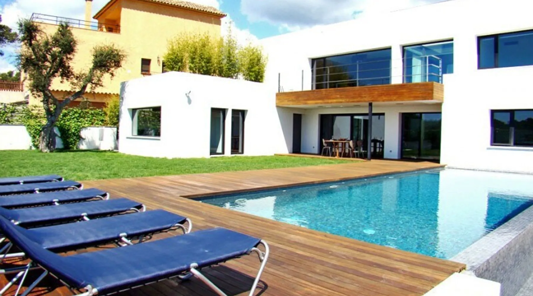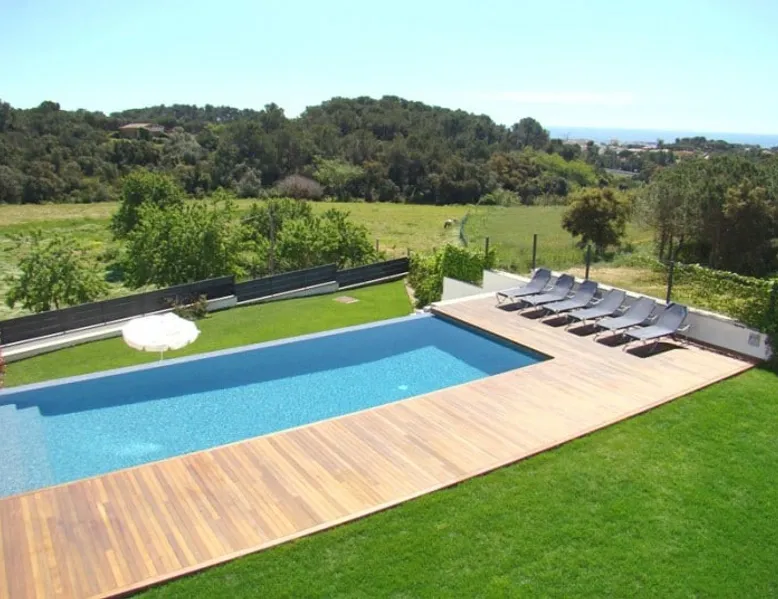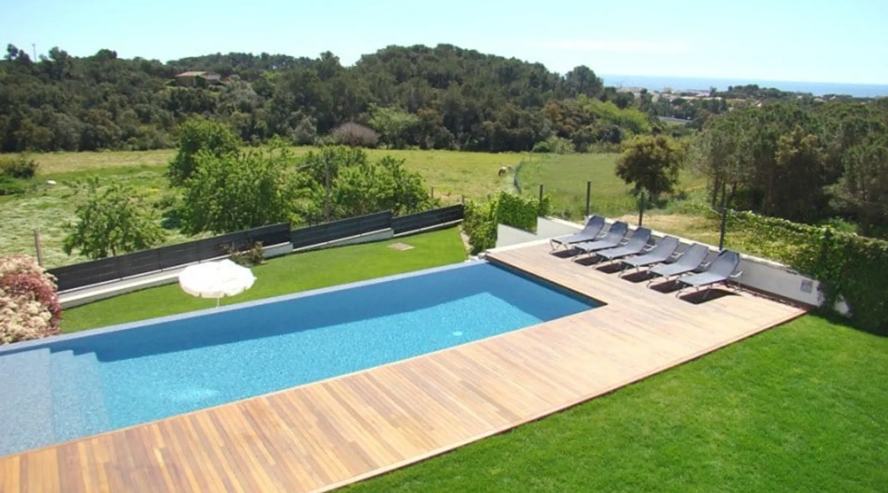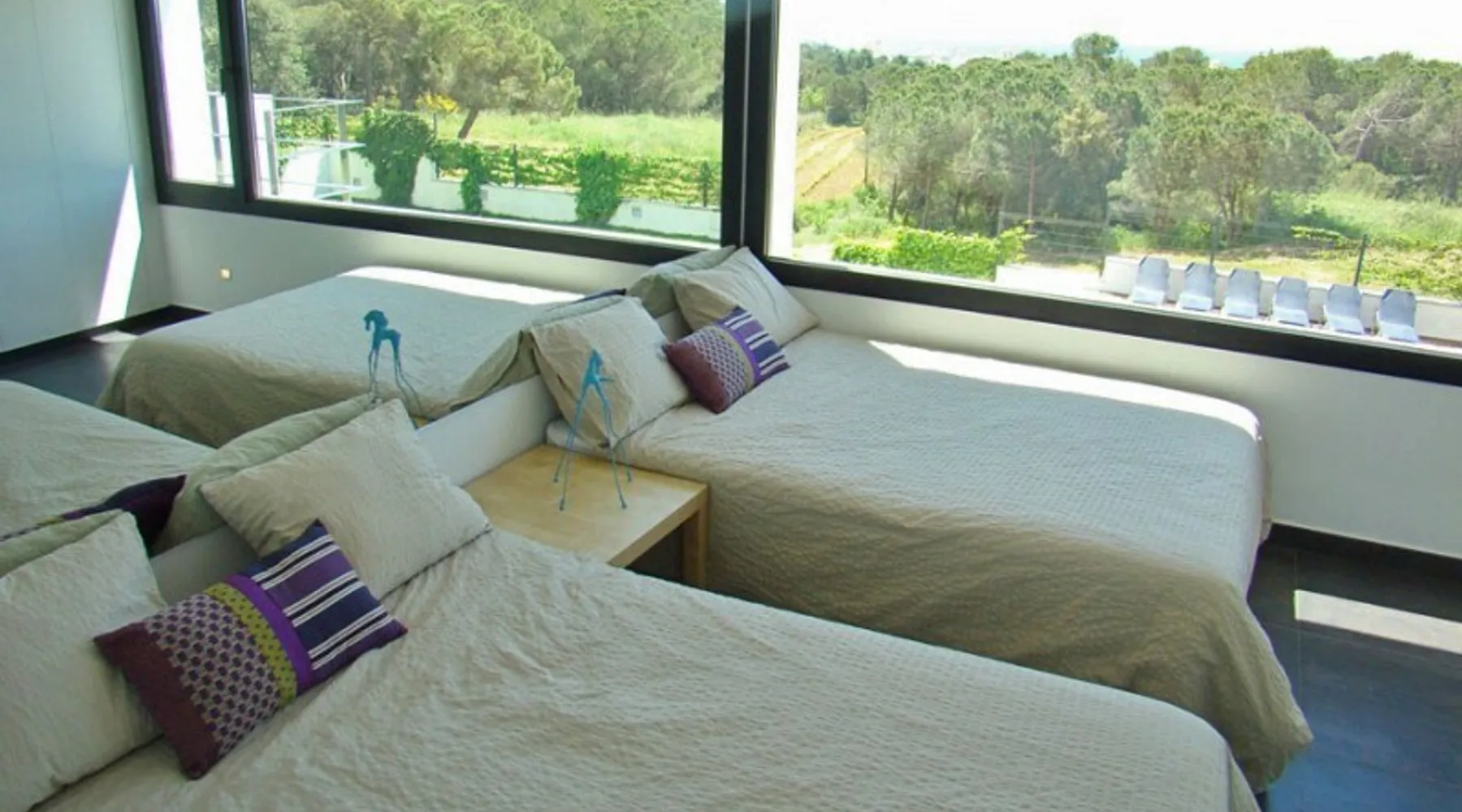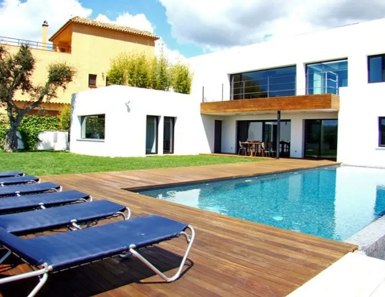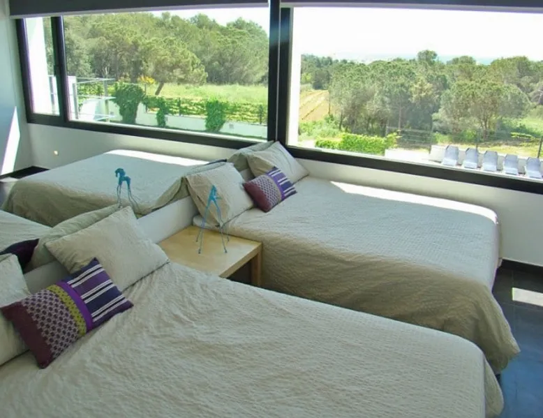 Splendid new villa with private pool, great outside area and fantastic views. Nearby a big recreation/sport area, free entrance. The space Your holiday villa near Calonge Situated on the peaceful residential area Finca Verd, just a 5 minutes drive from the large sandy beaches of charming city Sant Antoni de Calonge this elegant and stylish villa could be an ideal accomodation for guests looking for relax, comfort and privacy. Surrounded by pine-trees forests this area is a small paradise for nature lovers, with an abundance of possibilities to practice mountain-biking, cycling and walking. Just a 200 meters away you will find a sport/recreation area with football, basketball, tennis court a Olympic swimming pool with a childs pool. You have free entrance to this area. Villa Somni is modern, spacious detached villa (300m2) with private “ infinity” pool and beautiful garden. On the ground floor you can find large elegant living room with dining area, modern well-equipped kitchen ( including wine bar and steam oven) , 2 bedrooms and 1 bathroom ( with whirlpool and chromotherapy). At the same level is the swimming pool with easy access from living room with sliding door. On the upper floor there are 2 bedrooms and 2 bathrooms. Villa offers fantastic views over the green hills and Mediteranean sea. Villa boasts air conditioning, heating, Internet Wifi and satellite TV. Outside terrace next to the swimming pool is the ideal place perfect place to relax or enjoy some al-fresco dining. Large swimming pool ( 54m2) has salt water chlorination that it is safer for the skin. You can park your car in the garage as well as on the plot of the villa ( up to 4 cars). There are many games for children, Play Station II and 2 mountain bikes in the villa at disposal for clients. The surroundings of your villa Costa Brava, with it\'s length of about 100 km, runs from Blanes to Port Bou near the French border. This makes the Costa Brava a very popular holiday destination for tourist who travel by car. In the South of the Costa Brava you will find the La Selva district, between the town of Blanes and Tossa de Mar. All Club Villamar villas are situated in this district. The Romans too knew that your days are best spend at the \'Rough Coast\'. In the several fisherman villages you will find remains of this period, with the burrow of Tossa de Mar as a jewel on the crown. The kindness of the climate ( in winter the temperatures rarely drops below zero degrees and well is well above 30 degres in the summer), make it possible to enjoy this extraordinarily beautiful rugged coastline and the several sandy beaches year round. Together with the hearthwarming character of the local populace, the rich historical past, the lovely green hills and the varied exquisite kitchen makes the Costa Brava a holiday region which has a lot going for itself. Drawn by these riches, many famous artist have found serenity and peace at this Spanish part of coast. Bed linen and towels are not included with this villa but can be purchased. Bed linen costs 15 Euro per person, towels 7.50 Euro per person. These can be booked separately. Please let us know at least one week in advance if you wish to arrange this. Unfortunately groups of youngsters (average age below or equal to 25) are not allowed in this holiday residence. Unfortunately pets are not allowed in this villa Bed linen and towels are not included with this villa but can be purchased. Bed linen costs 15 Euro per person, towels 7.50 Euro per person. These can be booked separately. Please let us know at least one week in advance if you wish to arrange this. This villa is offered to you by Club Villamar. Registration Details HUTG-027921