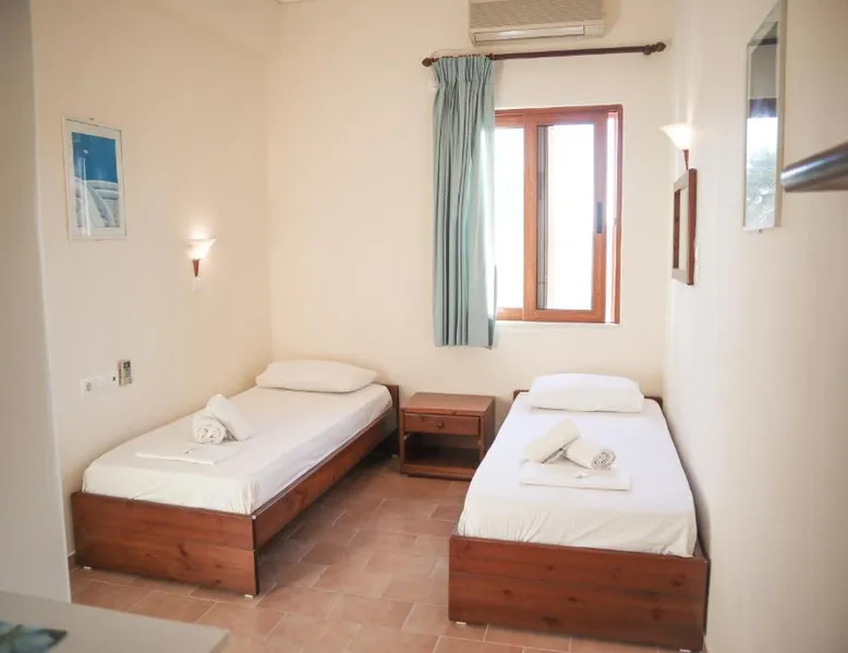 Comfortable Accommodations: The Windmill in Ios Chora offers a guest house experience with free WiFi, air-conditioning, and private bathrooms. Each room includes a refrigerator, free toiletries, shower, TV, tiled floors, and a wardrobe. Convenient Facilities: Guests benefit from free WiFi, housekeeping service, and free parking. The property features a reception staffed with Greek, English, Spanish, and Italian speakers. Local Attractions: Katsiveli Beach is a 14-minute walk away, while Homer's Tomb lies 5.6 mi from the guest house. The Monastery of Agios Ioannis is 14 mi distant. Santorini International Airport is 35 mi away. The twin room features air conditioning, a flat-screen TV, table top fridge, and private bathroom including free toiletries.