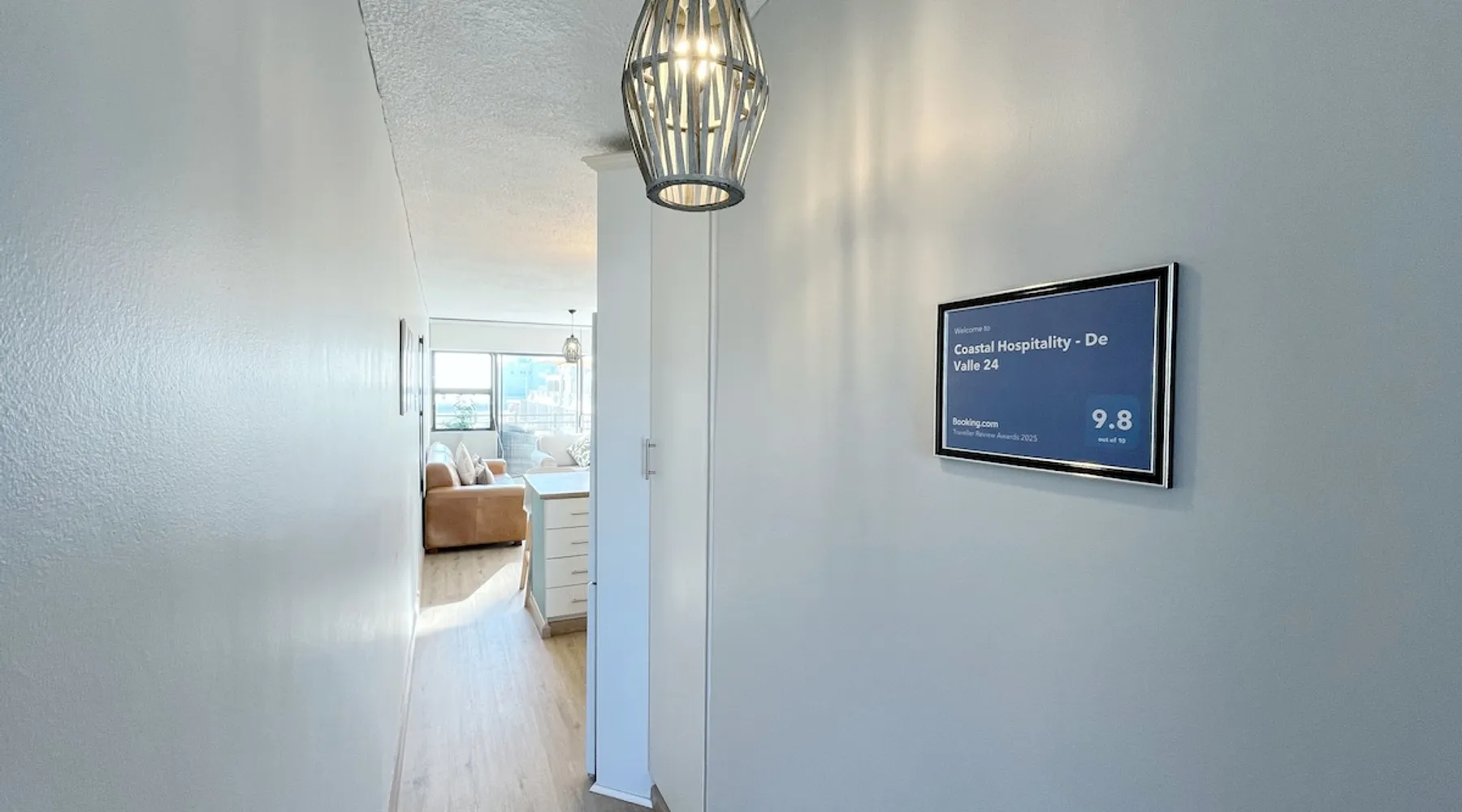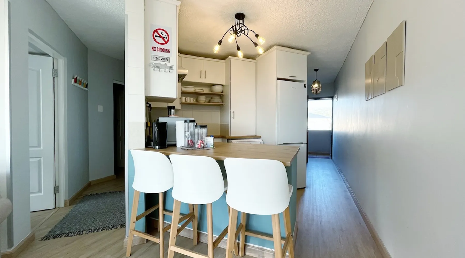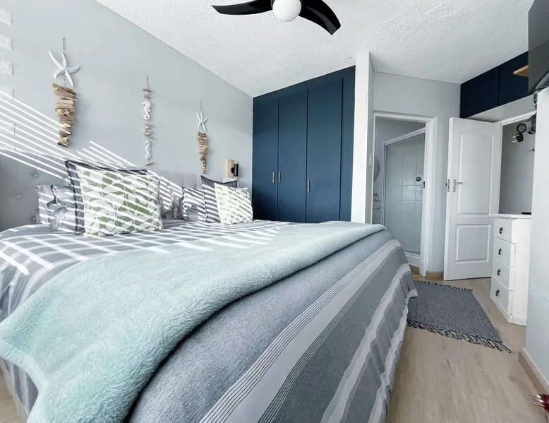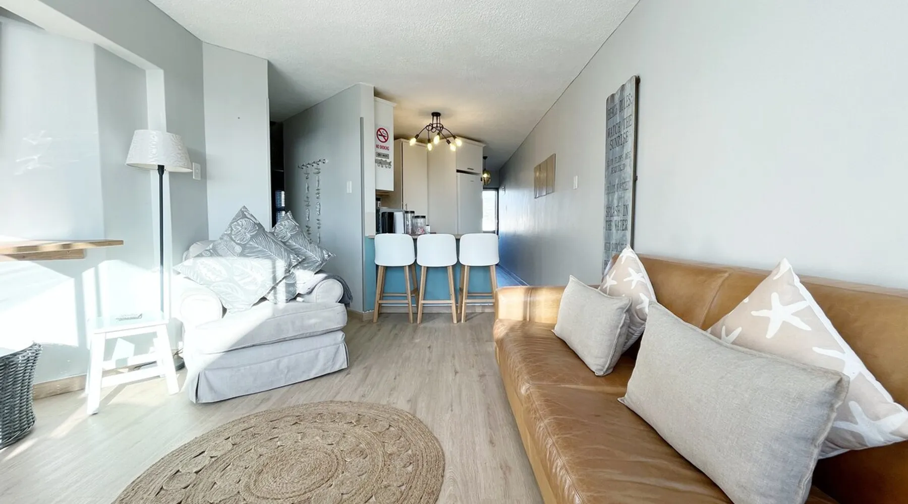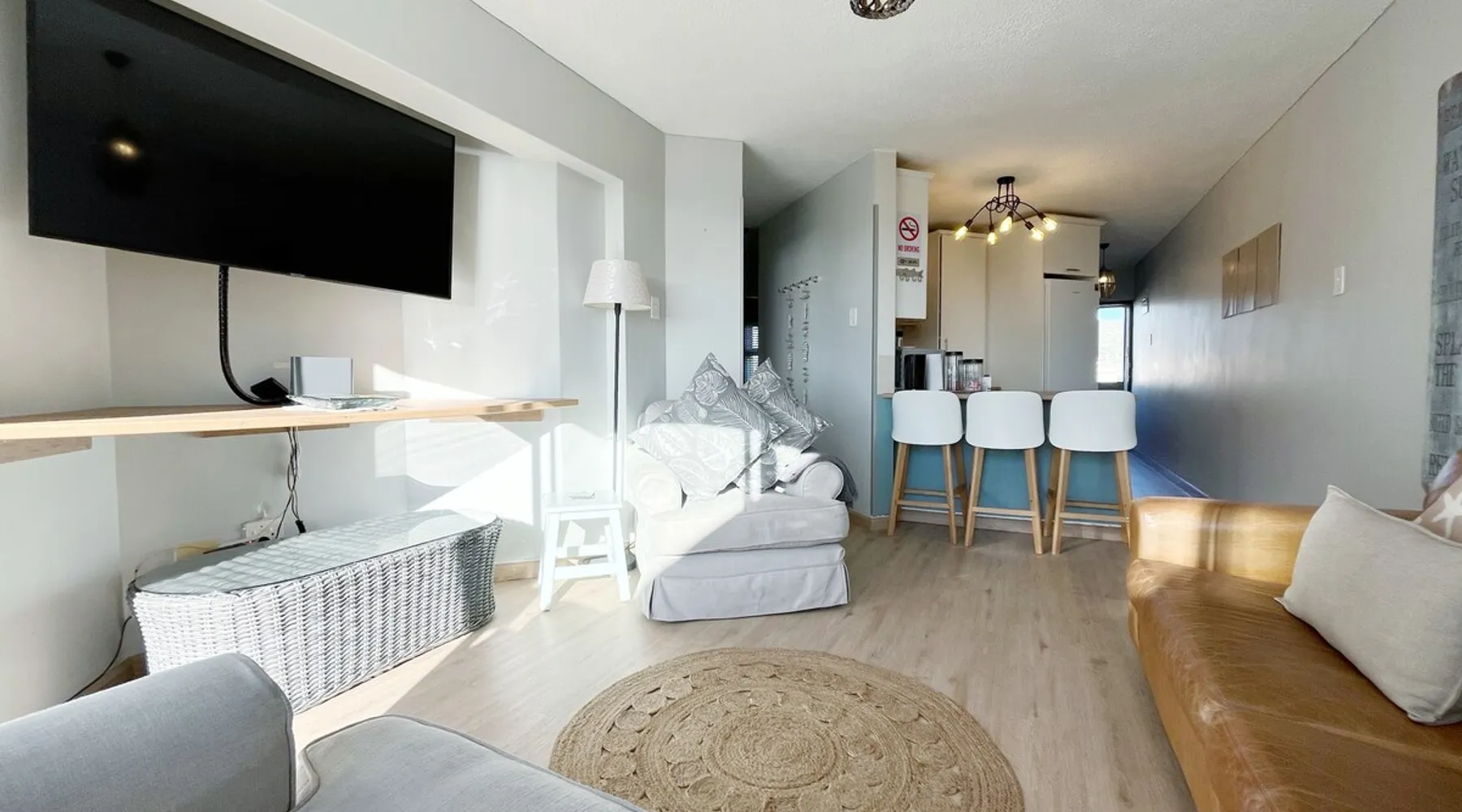 - 3 Bedrooms - 2 Bathrooms - Free Fast Wi-Fi - Partial Sea View - Modern Living - Effortless Entertaining - Large Balcony with outdoor Furniture - Wrber braai (charcoal only) - Smart TV - Secure Parking - Easy beach access - Elevator Available The space This upmarket 3 bedroom apartment is located in the De Valle beachfront complex. The modernly furnished unit, decorated with bold pastel colors and touches of coastal elegance boasts with a partial sea view and features 2 bathrooms. Other facilities include a large patio with outdoor seating and gas braai facilities, Smart TV, Free Wi-Fi and fully equipped kitchen. This unit will give you a true luxury beach getaway experience. Guest access Access to the communal pool and conmunal braai facilities. It is a residential complex, thus limited outdoor facilities Other things to note Housekeeping is not included during your stay. But available upon request after 5 days at an additional charge. Amenities are not replenished, but have been provided for the first night only. We are not serviced accommodation Loadshedding (National Power cuts) may be implemented during your stay without prior notice, as part of South Africa's ongoing electricity crisis. This is a National problem and out of our control. a Power station has been provided in the unit to keep the television and Wi-Fi running and emergency lights are provided.