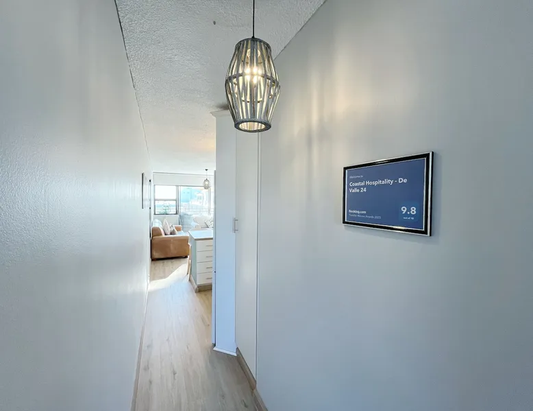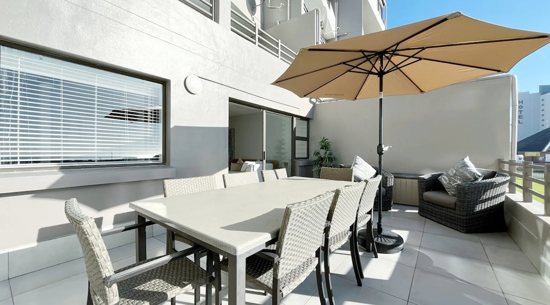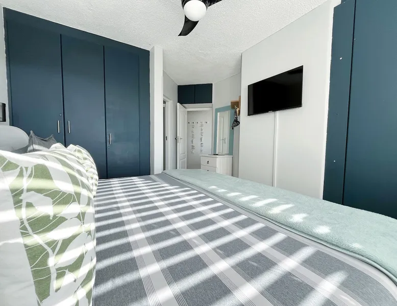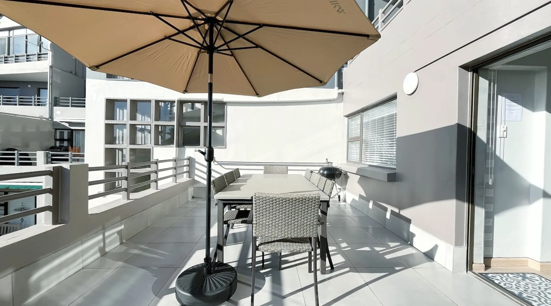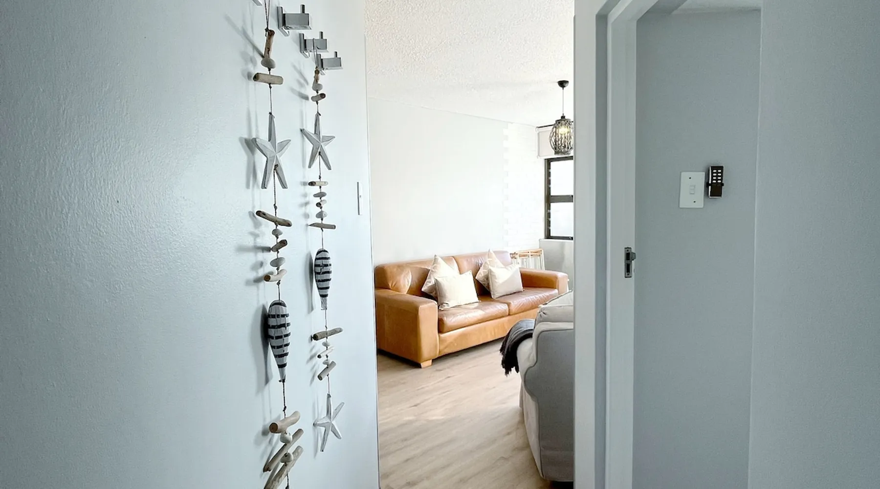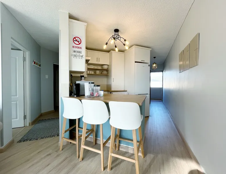- 3 Bedrooms - 2 Bathrooms - Free Fast Wi-Fi - Partial Sea View - Modern Living - Effortless Entertaining - Large Balcony with outdoor Furniture - Wrber braai (charcoal only) - Smart TV - Secure Parking - Easy beach access - Elevator Available The space This upmarket 3 bedroom apartment is located in the De Valle beachfront complex. The modernly furnished unit, decorated with bold pastel colors and touches of coastal elegance boasts with a partial sea view and features 2 bathrooms. Other facilities include a large patio with outdoor seating and gas braai facilities, Smart TV, Free Wi-Fi and fully equipped kitchen. This unit will give you a true luxury beach getaway experience. Guest access Access to the communal pool and conmunal braai facilities. It is a residential complex, thus limited outdoor facilities Other things to note Housekeeping is not included during your stay. But available upon request after 5 days at an additional charge. Amenities are not replenished, but have been provided for the first night only. We are not serviced accommodation Loadshedding (National Power cuts) may be implemented during your stay without prior notice, as part of South Africa's ongoing electricity crisis. This is a National problem and out of our control. a Power station has been provided in the unit to keep the television and Wi-Fi running and emergency lights are provided.