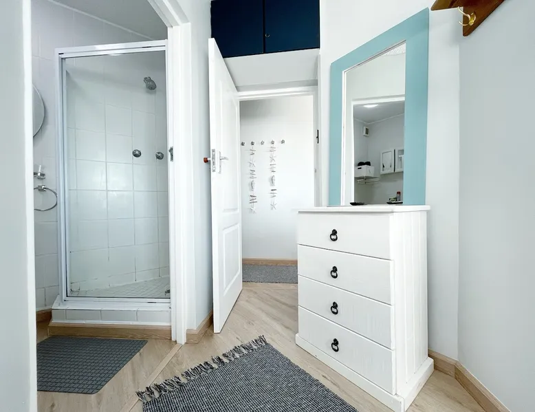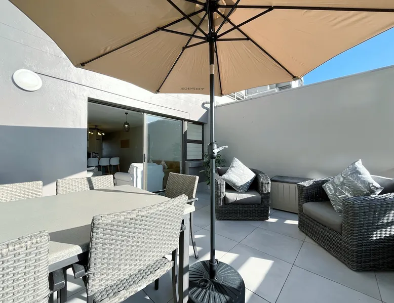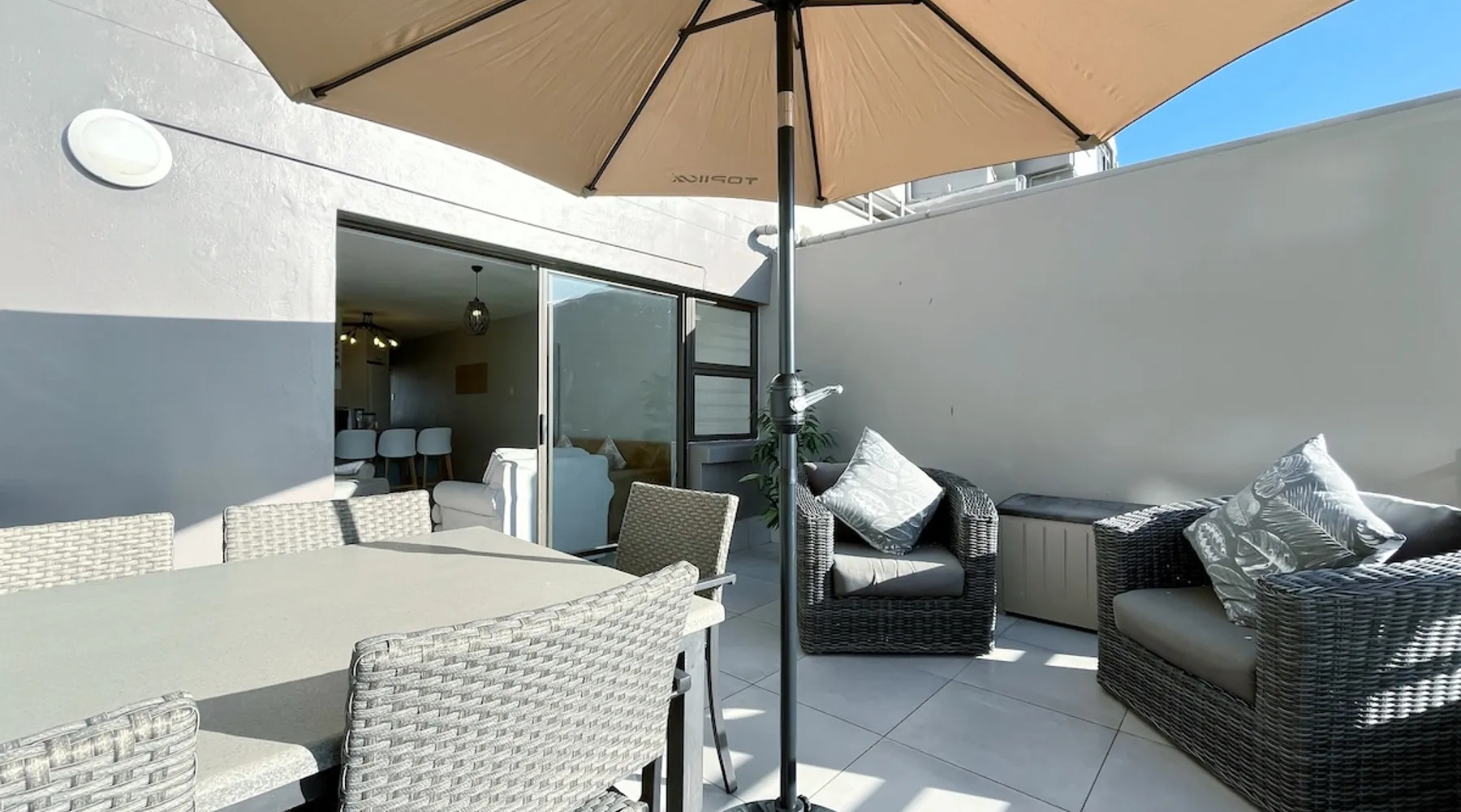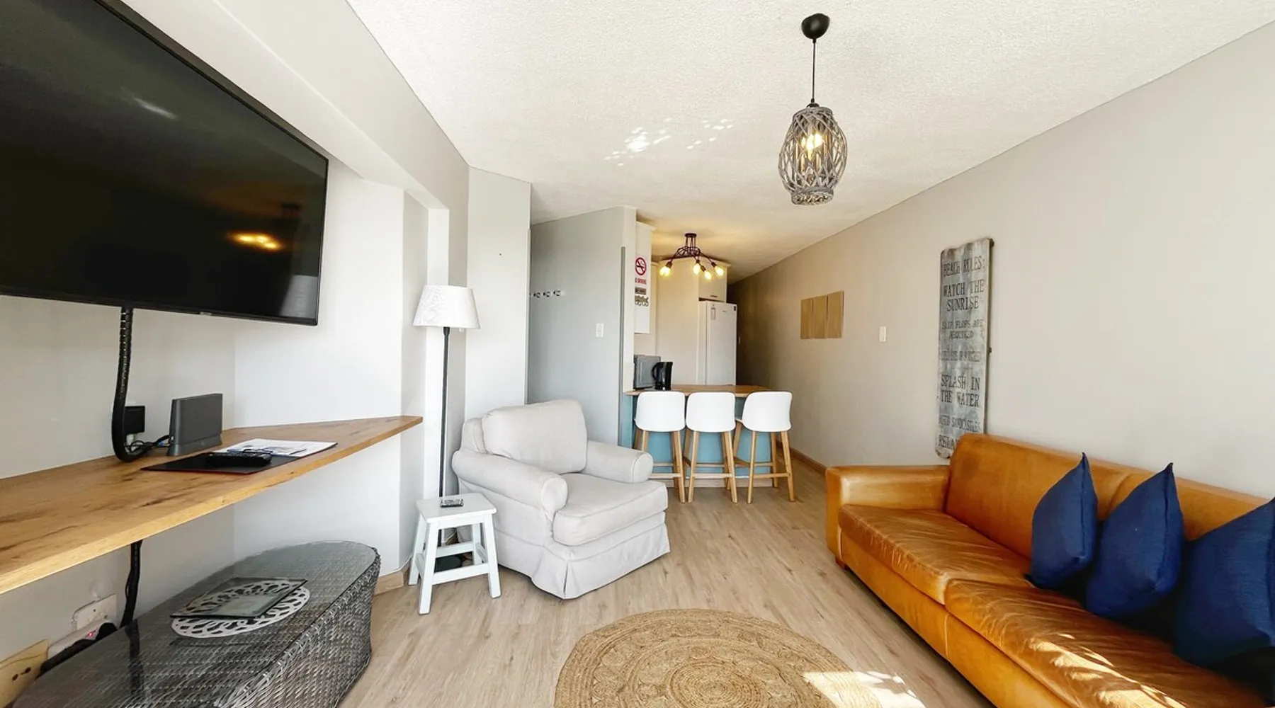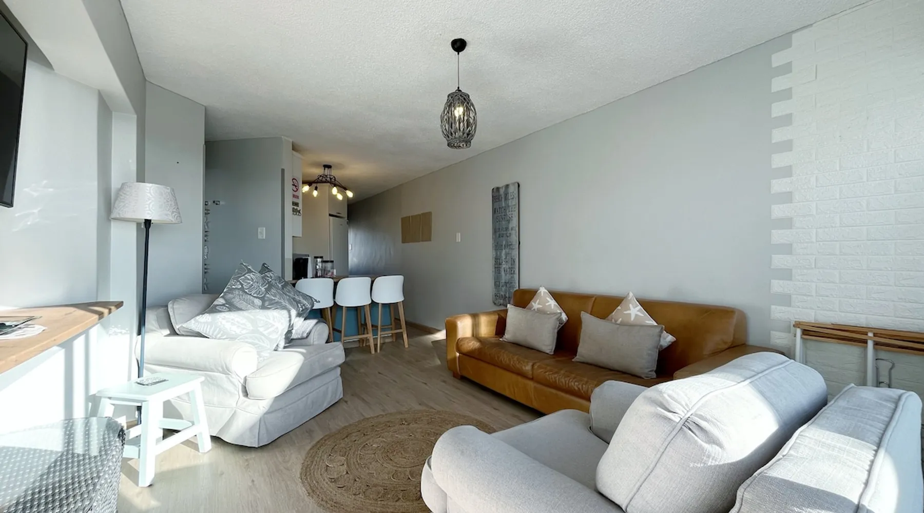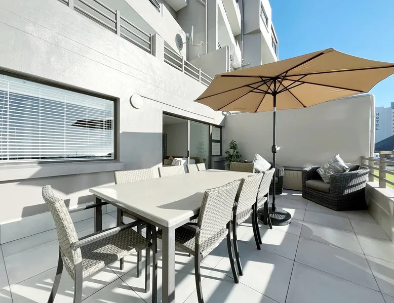 - 3 Bedrooms - 2 Bathrooms - Free Fast Wi-Fi - Partial Sea View - Modern Living - Effortless Entertaining - Large Balcony with outdoor Furniture - Wrber braai (charcoal only) - Smart TV - Secure Parking - Easy beach access - Elevator Available The space This upmarket 3 bedroom apartment is located in the De Valle beachfront complex. The modernly furnished unit, decorated with bold pastel colors and touches of coastal elegance boasts with a partial sea view and features 2 bathrooms. Other facilities include a large patio with outdoor seating and gas braai facilities, Smart TV, Free Wi-Fi and fully equipped kitchen. This unit will give you a true luxury beach getaway experience. Guest access Access to the communal pool and conmunal braai facilities. It is a residential complex, thus limited outdoor facilities Other things to note Housekeeping is not included during your stay. But available upon request after 5 days at an additional charge. Amenities are not replenished, but have been provided for the first night only. We are not serviced accommodation Loadshedding (National Power cuts) may be implemented during your stay without prior notice, as part of South Africa's ongoing electricity crisis. This is a National problem and out of our control. a Power station has been provided in the unit to keep the television and Wi-Fi running and emergency lights are provided.