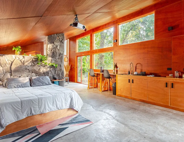 Relax surrounded by nature. In the morning you can hear the birds singing with a good coffee, and enjoy this property in the middle of the forest, watching the sky lying on the giant hammock. The cabin is located 15 minutes from downtown Tepoztlán by vehicle or a 5-minute walk to the transport that will take you downtown. You can also avoid all the traffic as you do not need to cross the center. Very convenient on long weekends. The property is fenced. The vegetation varies.