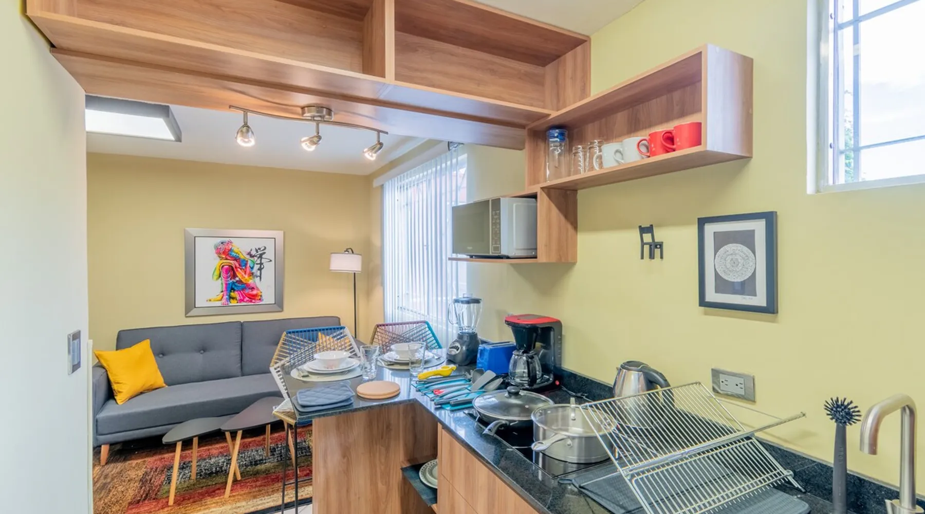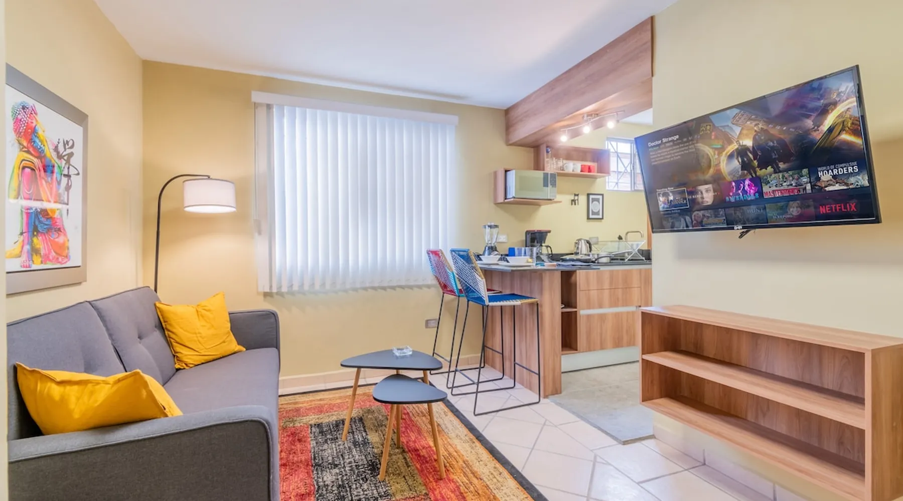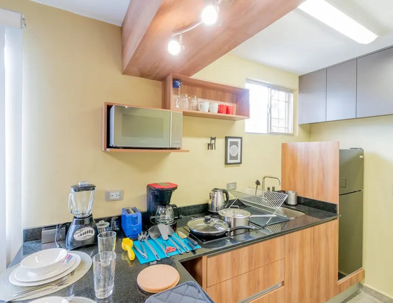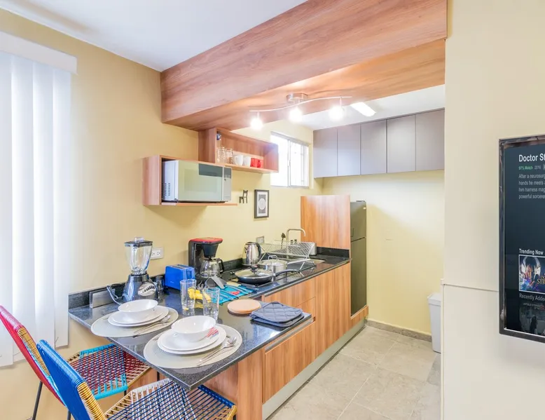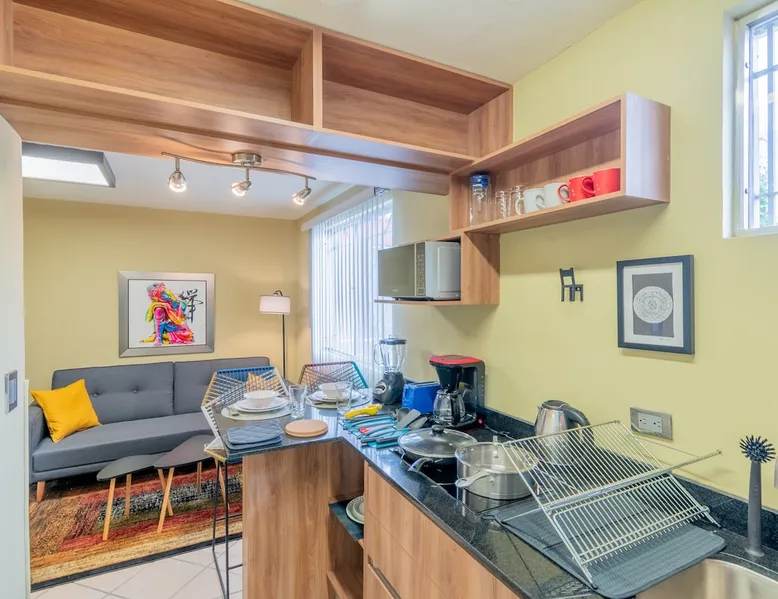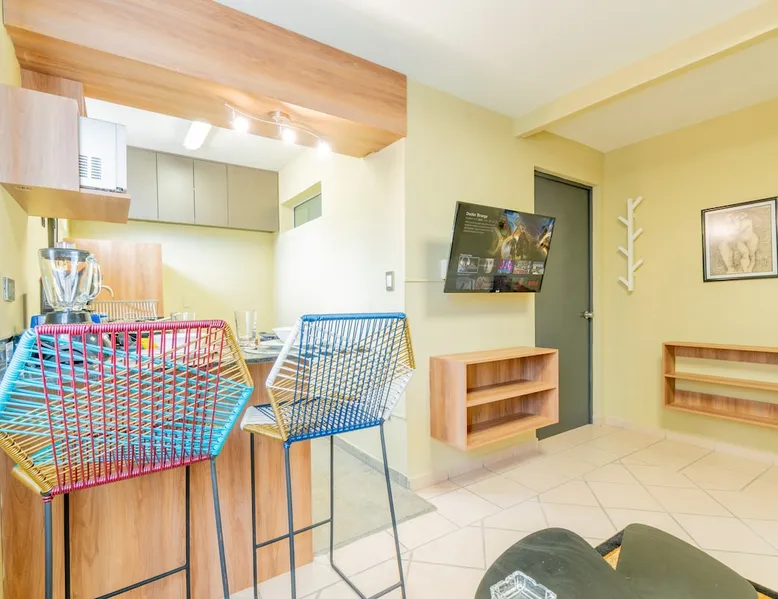 Enjoy a nice and comfortable apartment in the historic center of the city. We have everything to make your stay comfortable. - A kitchen equipped with everything for cooking - Comfortable living room with Netflix - A comfortable queen-size bed - Spacious and comfortable bathroom - Iron and ironing board - Mini-split with A/C and heating - Spacious parking with electric gate And all in an excellent location minutes from the cathedral and Paseo Durango. We look forward to seeing you soon :) The space The space is small and cozy, it is very well decorated and designed. The room has its bed, closet, a desk space, and the sink. Attached to the bathroom is the full bathroom with its spacious and comfortable shower. The kitchen and living room are connected with a small bar with space for two people. The kitchen is fully equipped. The garage is spacious and easy to access Guest access You have access to the garage, which is a common area, your private apartment, and the laundry center, which is also shared with the other apartments. Other things to note Please turn off the air conditioning when you leave the apartment :) You have to go down to open the garage with a code every time you enter