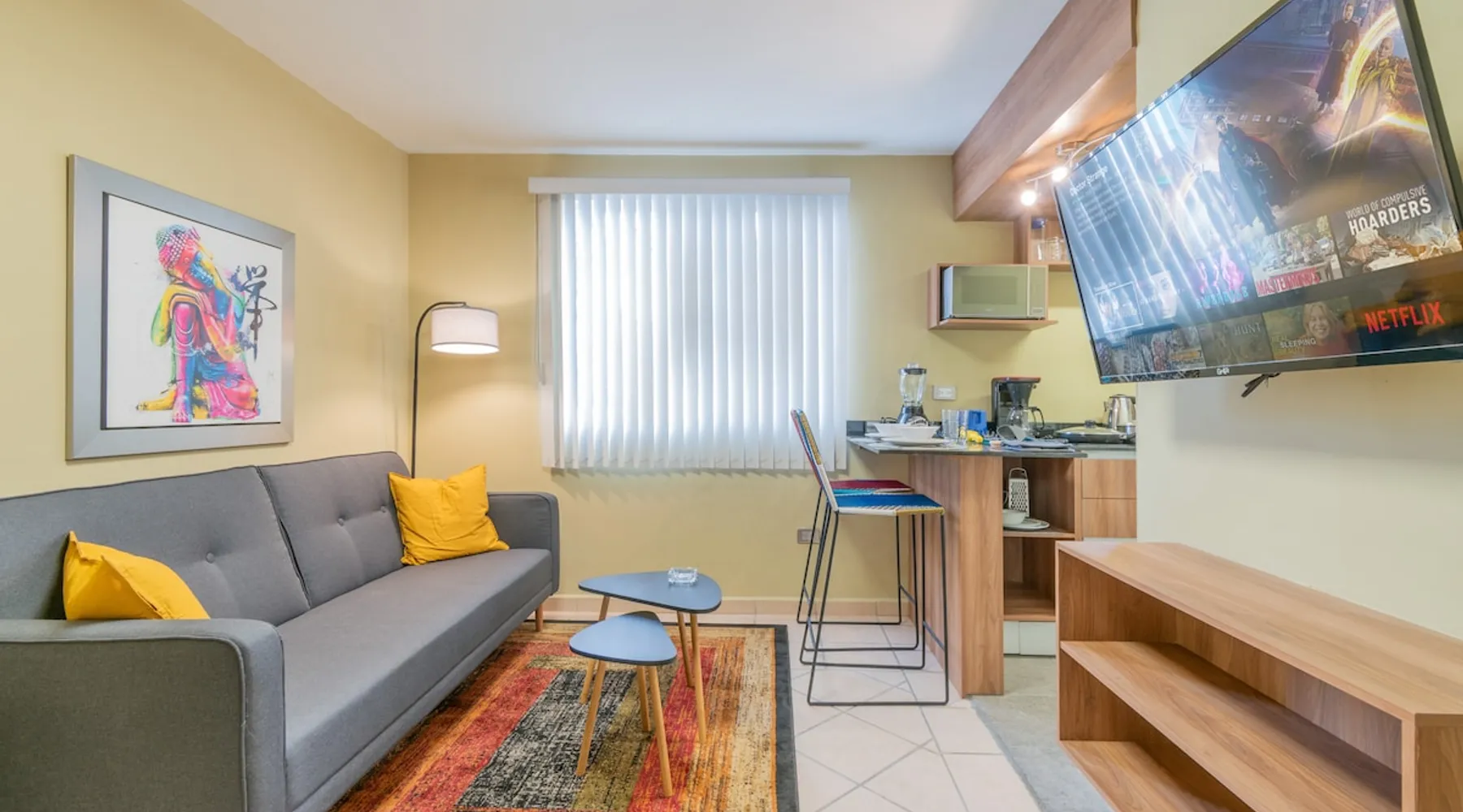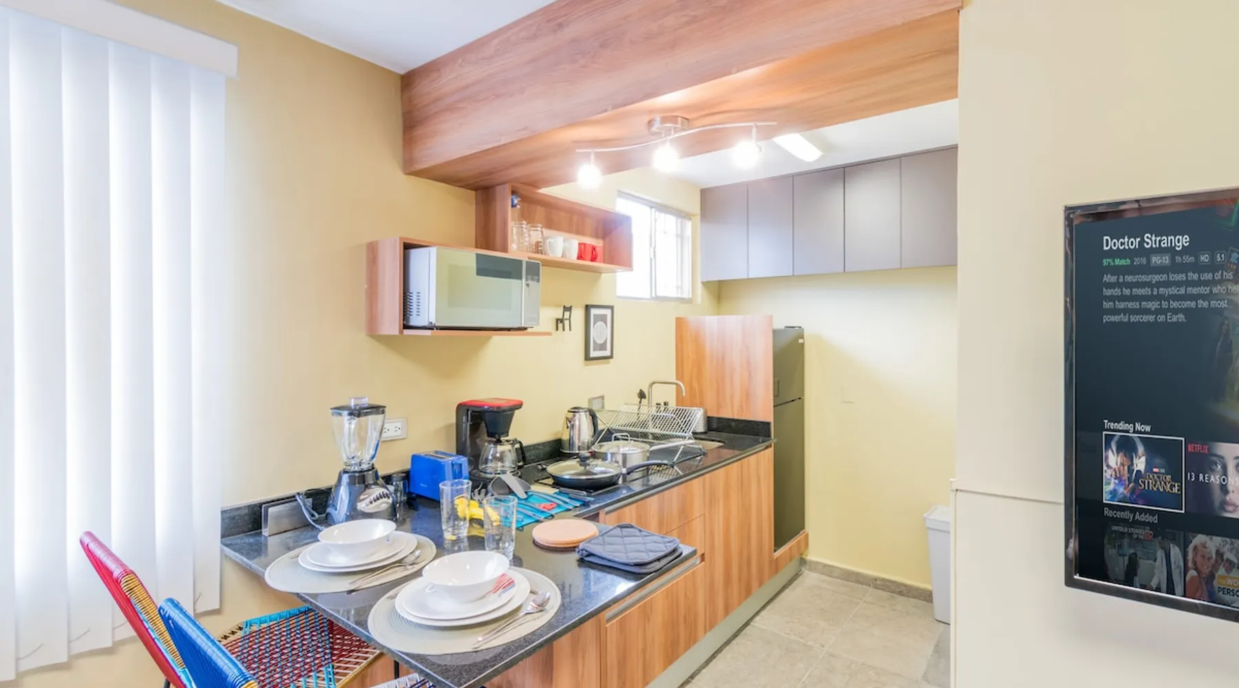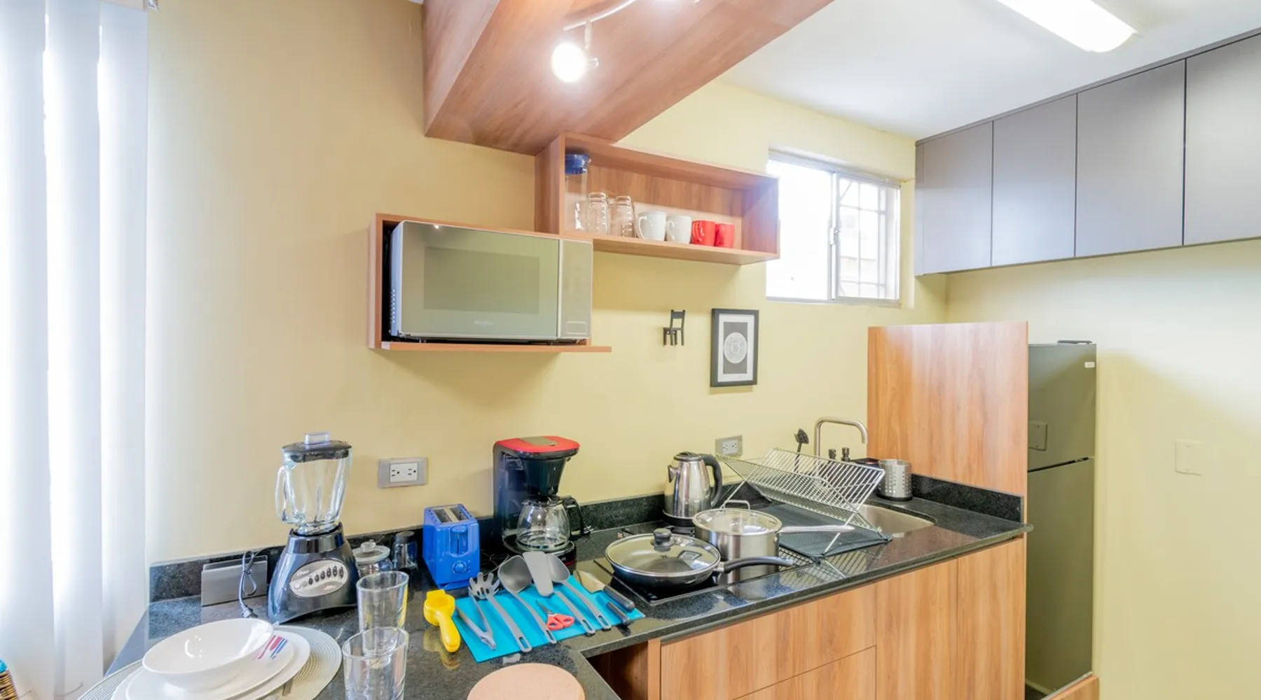 Enjoy a nice and comfortable apartment in the historic center of the city. We have everything to make your stay comfortable. - A kitchen equipped with everything for cooking - Comfortable living room with Netflix - A comfortable queen-size bed - Spacious and comfortable bathroom - Iron and ironing board - Mini-split with A/C and heating - Spacious parking with electric gate And all in an excellent location minutes from the cathedral and Paseo Durango. We look forward to seeing you soon :) The space The space is small and cozy, it is very well decorated and designed. The room has its bed, closet, a desk space, and the sink. Attached to the bathroom is the full bathroom with its spacious and comfortable shower. The kitchen and living room are connected with a small bar with space for two people. The kitchen is fully equipped. The garage is spacious and easy to access Guest access You have access to the garage, which is a common area, your private apartment, and the laundry center, which is also shared with the other apartments. Other things to note Please turn off the air conditioning when you leave the apartment :) You have to go down to open the garage with a code every time you enter