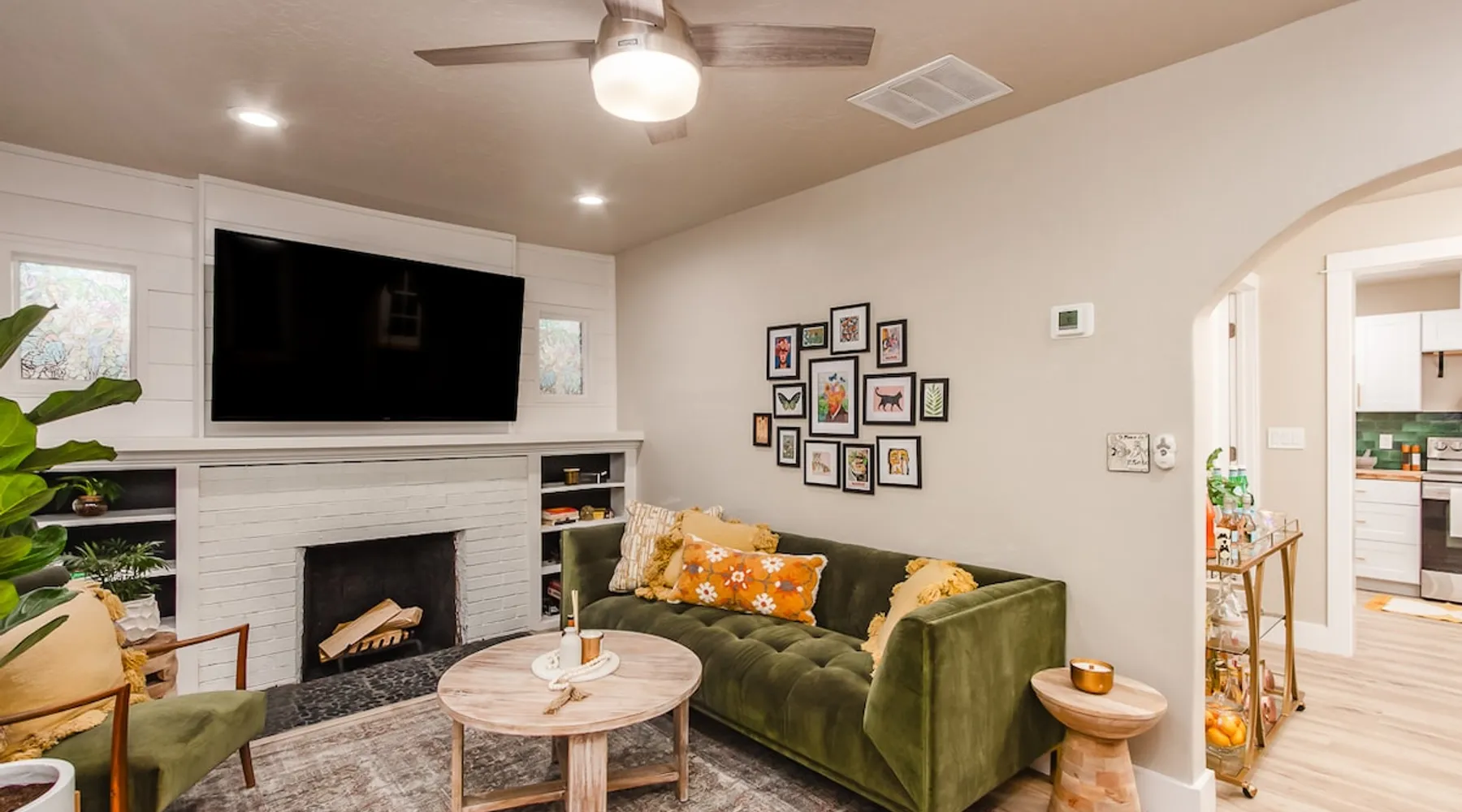Welcome to your very own Boho Bungalow – close to everything – it’s walking distance to historic Hyde Park filled w/ restaurants, ice cream + coffee shops, bars, as well as Camel’s Back Park. Easy access to skiing at Bogus Basin Resort + only a 5 min drive to Downtown. Renovated historic home is brand new on the inside w/ plush designer furniture + sparkling new appliances. Home features queen bed in the master, full in the guest, bikes, coffee bar, record player, string lights + charcoal BBQ The space Host approval required for all parties and additional guests Guest access The entire home. There’s also a dedicated driveway w/ a private parking spot 🙏🏻 Other things to note Restaurants within walking distance: 13th St Pub + Grill, Lost Grove Brewing, Casa Mexico North End Pizza, Certified Bakery, Java Coffee ... and more!! The fireplace is display only due to the age of the home Cruiser bike + mountain bike’s provided, along w/ helmets + a bike lock 🙏🏻