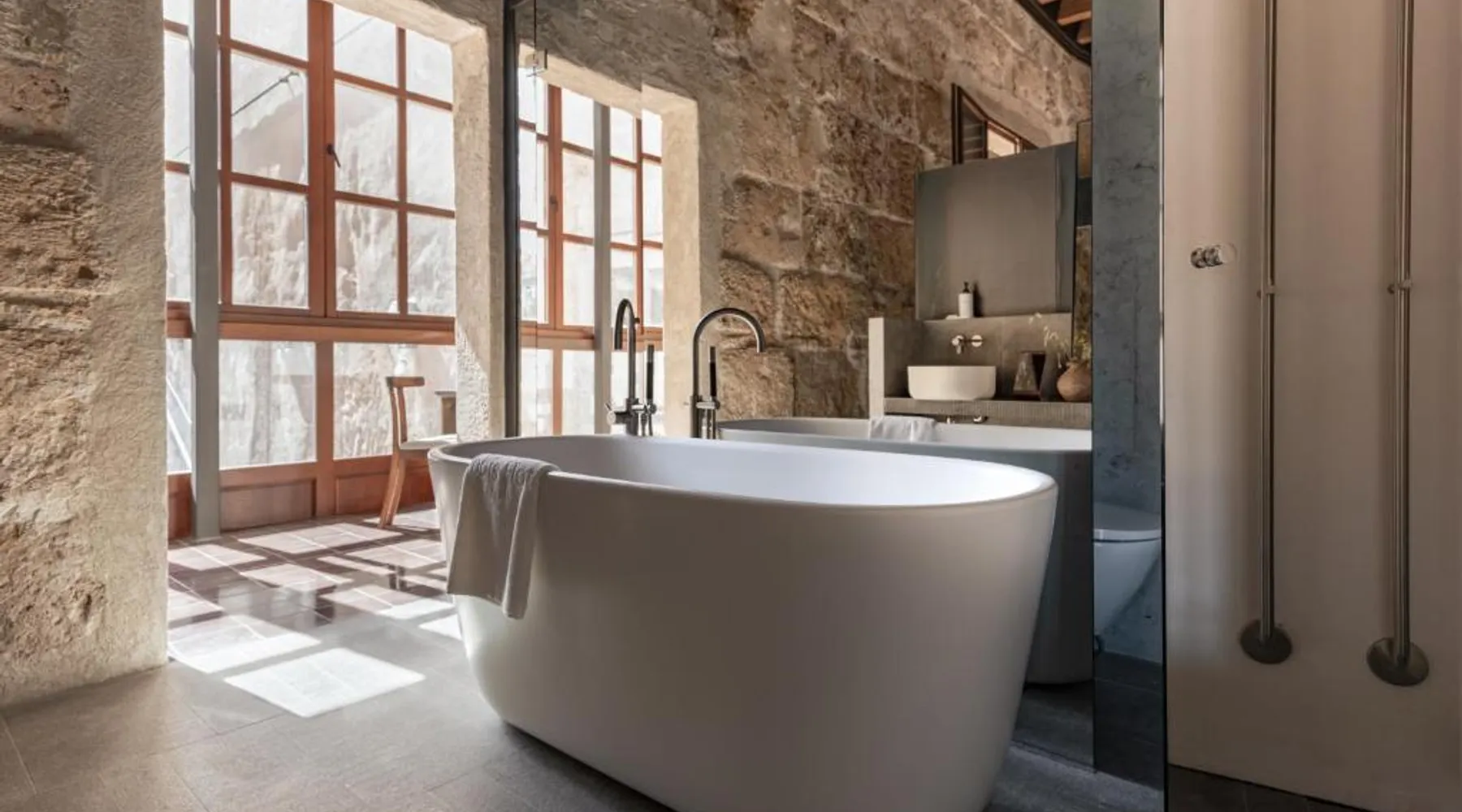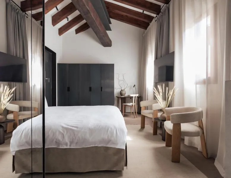 Elegant Accommodations: Nobis Hotel Palma, a Member of Design Hotels in Palma de Mallorca, offers a 5-star experience with spa facilities, a wellness center, sauna, fitness center, sun terrace, restaurant, bar, and free WiFi. Comfortable Amenities: Guests enjoy air-conditioning, terrace, balcony, bathrobes, bath, hairdryer, work desk, seating area, free toiletries, mini-bar, shower, and TV. Private check-in and check-out, fitness room, elevator, 24-hour front desk, concierge service, daily housekeeping, outdoor seating, room service, and luggage storage are available. Dining and Location: The Mediterranean restaurant serves lunch and dinner. Located 5 mi from Palma de Mallorca Airport, the hotel is an 18-minute walk from Playa Ca'n Pere Antoni, 1640 feet from Passeig del Born Avenue and Plaza Mayor, and near attractions such as Santa Eulalia Church and Palau Vivot. Boating is available in the surroundings. Highly rated for staff and service support, bar, and convenient location. The air-conditioned suite is furnished with a desk and a seating area. The unit offers 1 bed.