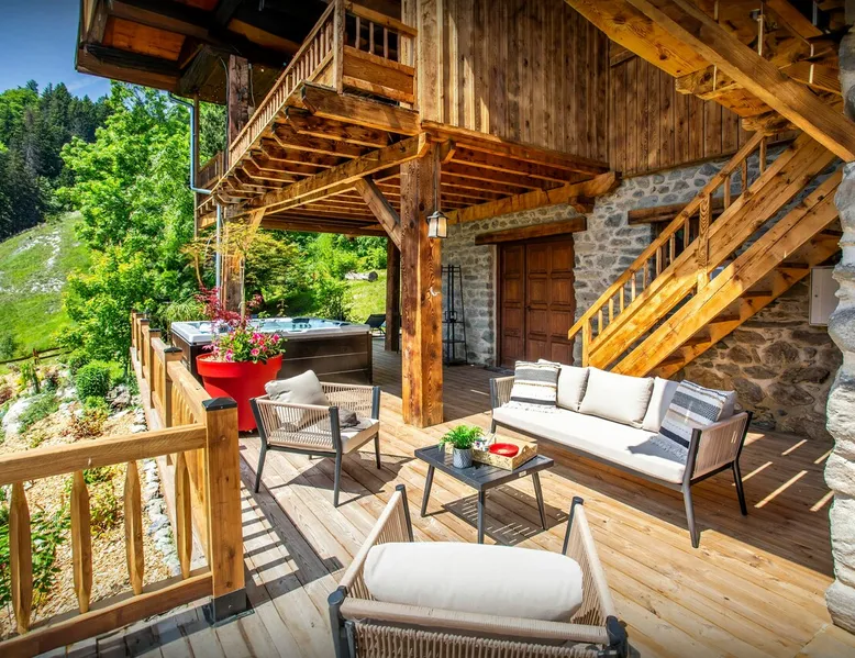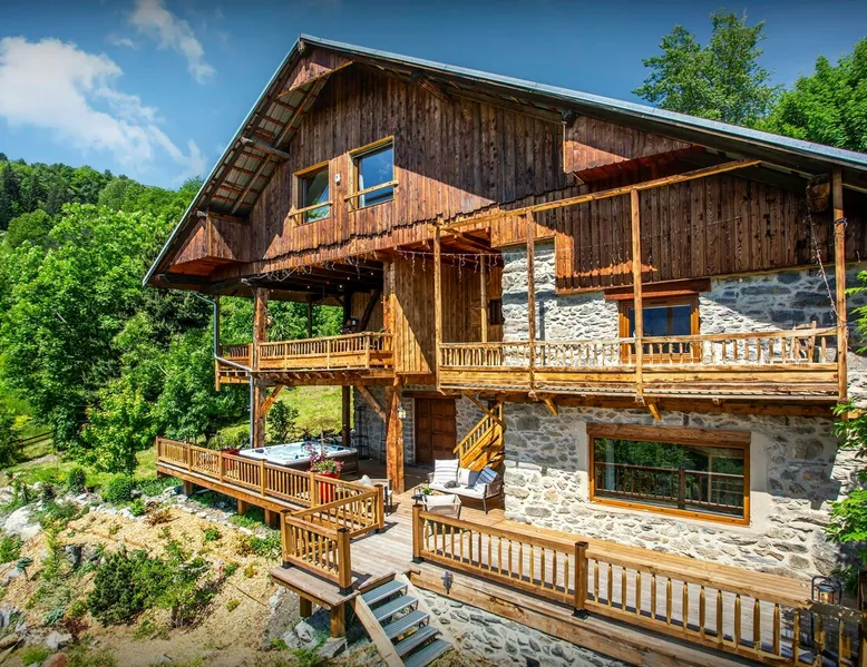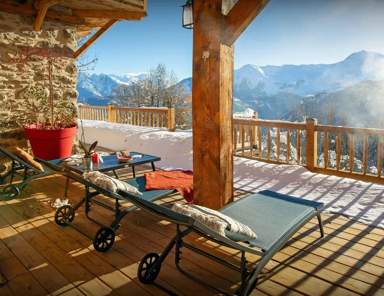 CHALET BENDO - Enjoy breathtaking views from this stunning chalet surrounded by nature, just a short drive from the centre of a busy mountain resort. The space CHALET BENDO - Villarembert - Le Corbier 200 m2, 5 Bedrooms, 3 Bathrooms Sleeps 10 (max 1 baby) Slopes 1.7 km, Village 1.3 km Car recommended Sauna and outdoor hot tub Living room and TV lounge Furnished balcony and terrace OVO Network is the market leader in premium chalet rentals in authentic mountain destinations. Chalet Bendo is an OVO Network property. The OVO Network team’s opinion - Chalet Bendo is a fully-renovated chalet for 8-10 people, with five bedrooms and three bathrooms. You'll also appreciate the sauna and the hot tub! Parties of 10 should be aware that a staircase to the sauna and ski room passes through bedroom, so there may be some privacy issues during the day. The other four bedrooms are on the first floor - there's a spacious master suite with an en suite bathroom, two double rooms, a twin room which can be arranged with a kingsize bed if you prefer and a separate shower room. The cosy living area, which retains many of the old features of this former barn, is decorated in mellow colours and a rustic style - you'll immediately feel at home here! The huge balcony, which is partially covered, is a great place to wrap up and enjoy some star-gazing in the winter or to fire up the barbecue and eat out when the weather is good. The views are stunning, especially when you enjoy them from the hot tub! The kitchen is well-equipped, with a large fridge-freezer, an oven, hob and microwave, and of course a dishwasher to make light work of the clearing up. There's also a separate utility room with a washing machine and dryer. As well as a terrace and a balcony, there's also a large, landscaped garden at Chalet Bendo, with a pond and mountain stream. Children will love to go exploring, but younger children will need to be supervised around the pond and on the steep slopes. You've got the best of both worlds when you stay at Chalet Bendo - a wonderful peaceful haven surrounded by nature just a 15-minute walk from some great skiing, hiking and biking. Free wifi, cleaning, towels & linen included. SECURITY DEPOSIT We require a security deposit of €1,000 via a pre-authentication of your credit or debit card, which does not affect your card balance. The pre-authentication will be released as soon as we’ve checked the property and confirmed there is no damage. This is normally done right after your stay, but it could take up to 14 days after your departure. -- OVO NETWORK - UNIQUE CHALETS, AUTHENTIQUES DESTINATIONS OVO Network is the market leader in premium chalet rentals in authentic mountain destinations, with a portfolio of over 200 chalets hosting 30 000 guests each year. All our partner chalets offer spacious, inviting interiors, elegant decor, and top-of-the-range amenities. Located in charming mountain destinations with strong cultural identities, they ensure you’ll enjoy the best mountain holidays.