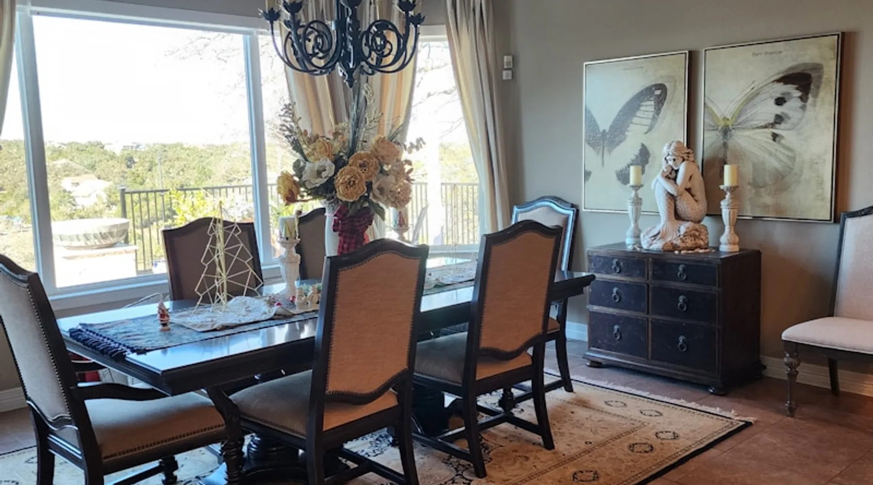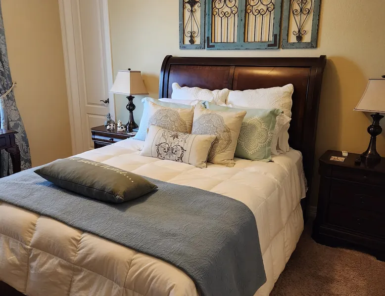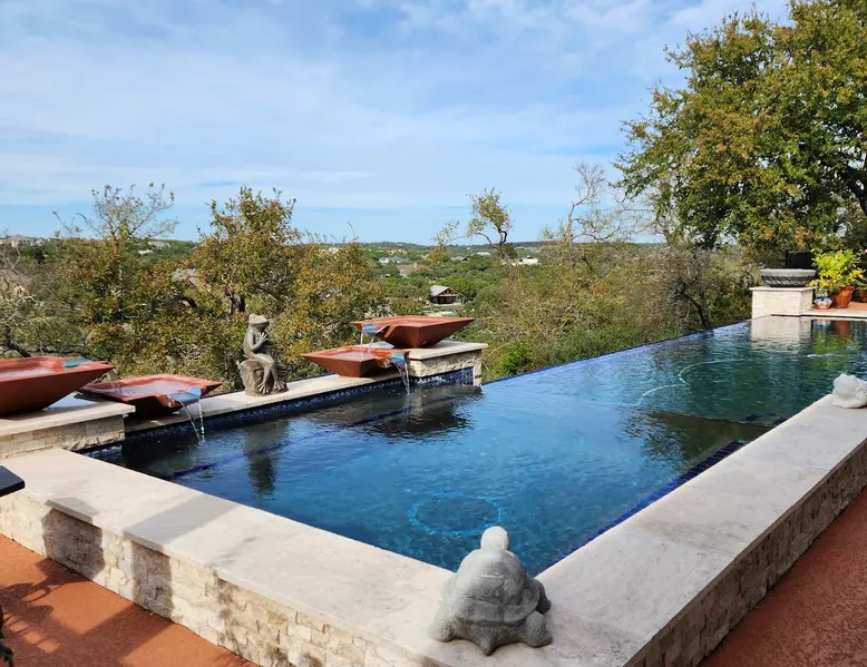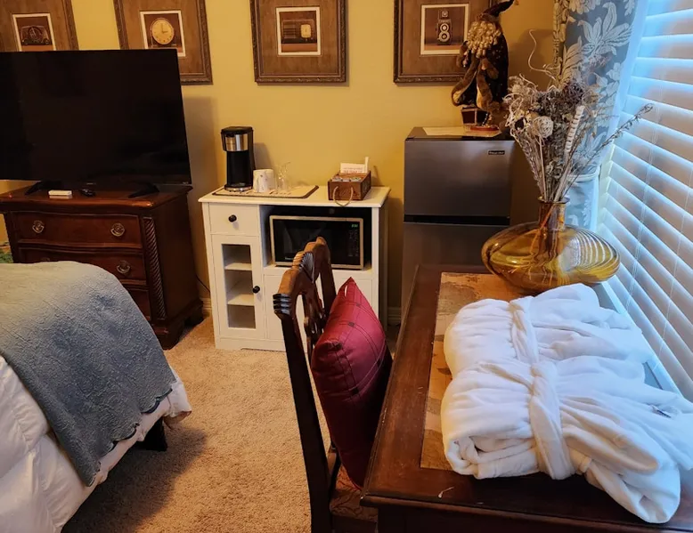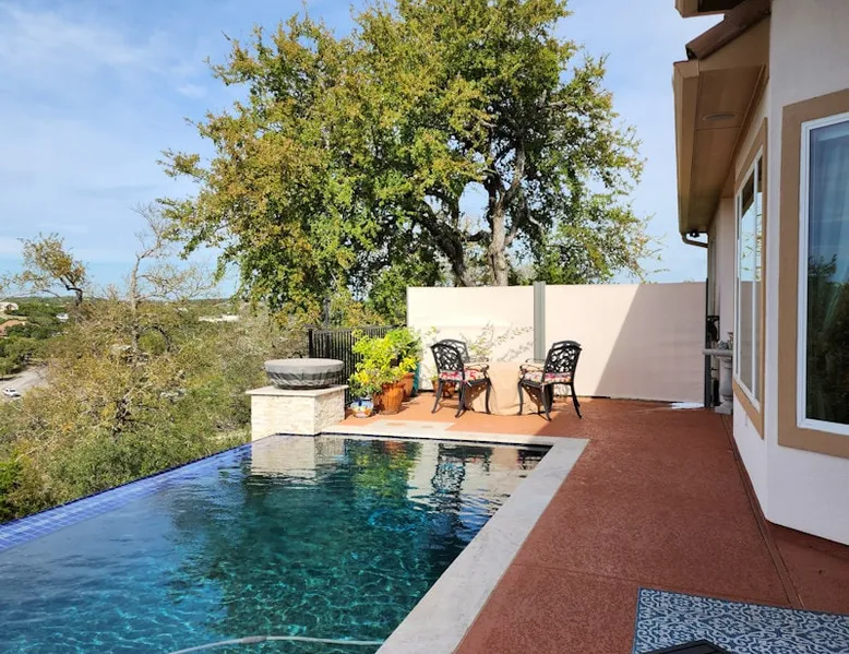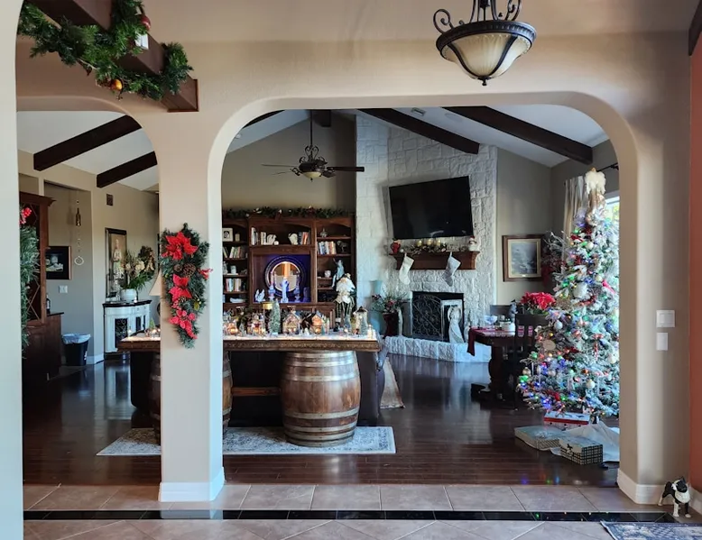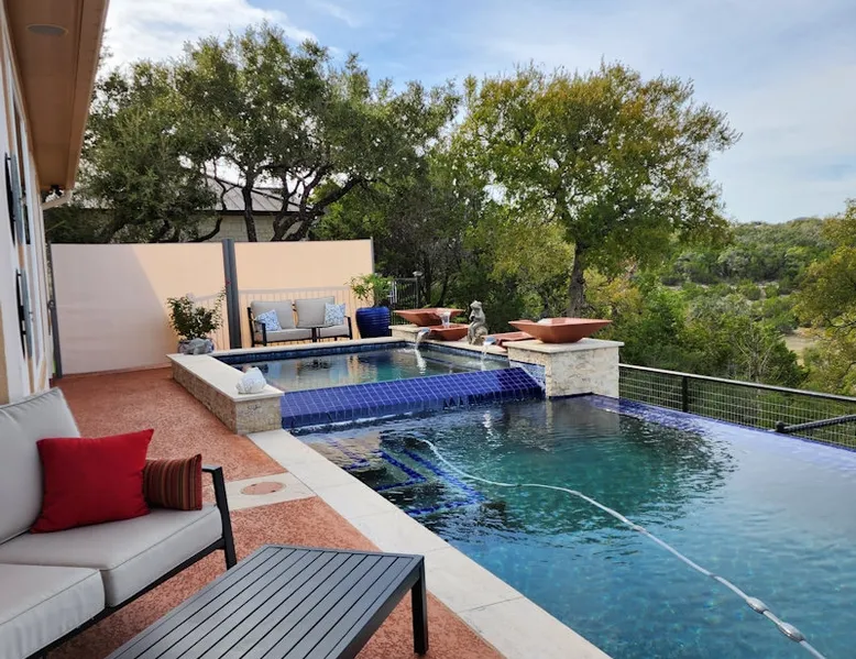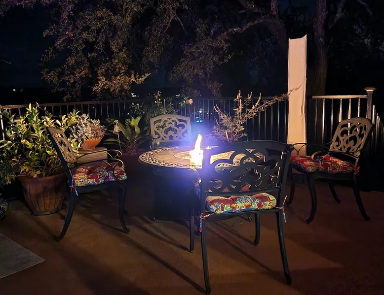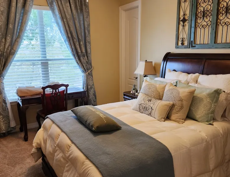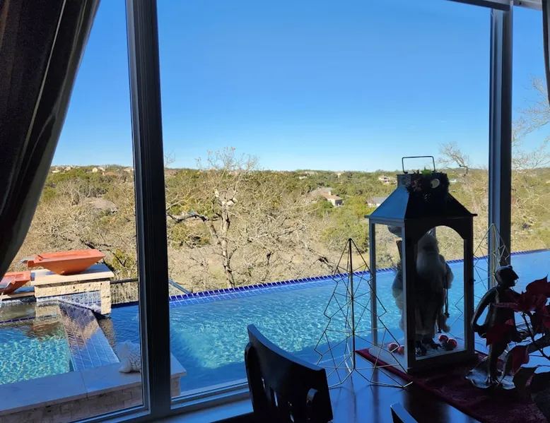 Time to kick back and relax and enjoy your stay. Casa dell'Amore bed and breakfast offers 2 rooms to choose from and are listed on Airbnb. We refer to this room as The Cozy Room. You will find all the amenities you would expect and more, including a home-cooked breakfast each morning during your stay with us. You will find a breakfast menu in your room. Our goal is to make your stay as comfortable as possible with a "home away from home" welcoming. The space Please, adults 25 and older only. No children, pets or support animals. 2 person max. No smoking, vaping or e-cigarettes, anywhere in the house, rooms or pool/spa areas. Your room will have: - hi speed internet - queen size bed - full bath - mini refrigerator/freezer with complimentary orange juice, yogurt and bottled water. There is also Klondike bars in the freezer. - microwave - coffee maker - ice bucket (ice maker located at bar in living room) - assortment of coffee k-pods and creamers - snack basket - with chips, cookies, pop corn, crackers, etc. - hair dryer - lighted make-up mirror - 2 terry cloth bath robes for spa room and poolside - walk-in closet with iron and ironing board, luggage rack and full length mirror ~You will receive a bottle of wine as a gift for staying with us. Just let us know your favorite varietal the day prior to your arrival. On the evening of your arrival, Jim will make his famous homemade Crème Brûlée, with a torched sugar topping, fruit and Cool Whip on top for an evening dessert.~ The Cozy Room has a 65" TV, a desk and chair, bedside tables and dresser. It also has adjacent access to the pool and spa through the bath area. There is access to a shared laundry room with washer and dryer. Bottled water is available in your room refrigerator or in the large refrigerator located in the laundry room. You will have access to the kitchen, dinning room, bar, spa room, and the living room which has a fireplace you're welcome to use during cooler months of the year if you so desire. We want you to feel right at home, so if there is something additional we can do to make your stay more comfortable, please do not hesitate to ask. SPA ROOM** **(Please Note: All massages are only available to those guests visiting 2 or more nights, and not available for single night visitors.) Ready to relax, unwind and let yourself go? We offer a complimentary spa treatment to help you do just that. Our Spa Room has 2 Massage Tables, Linens, Towels, Essential Oil Diffuser, Massage Oils, Assorted Men's and Women's Body Lotions from Bath and Body Works and Streaming Spa Music. The complimentary massage is available for all guests individually and provided by your host, Jim. A four-hand experience is available for an additional fee of $15 per person and provided by Jim and Patty. A couples massage is available for an additional fee of $30 per couple and provided by Jim and Patty. The spa room is also available to couples, for their own personal use. POOL/SPA (Clothing Optional) There is a pool and spa (Hot Tub) which overlooks a nature preserve with hillside views. The spa is large enough to seat 15 and has an infinity edge and fountain features and is open year round. The pool has a full length faux infinity edge. The pool and spa are clothing optional. There are 6' privacy screens, which can be extended, on either side of the pool and spa and can be used during the day for additional privacy. In the pool area, we have a propane fire pit which can be used at any time during your stay. The fire pit has seating for 4. There is also seating for 2 at the spa. On the lower level, from the pool, there is a sofa and 2 side chairs, dining table and chairs and a gas grill. NOTE: Because of it's size we do not keep the spa (hot tub) heated continuously. When getting into the spa, please let us know we will heat for you. At night under the stars is wonderful. However, anytime during the day or evening is great as well. Music is streamed patio and pool side. If you would like different music than what is streaming, please let us know, and we will do our best to accommodate your request. Guest access Guests will have access to kitchen, living room, dining room, laundry room, spa room, pool and spa as well as the patio, grill and outside dining table and chairs. There is a counter top icemaker located in the bar area in the living room. During your stay We are Jim and Patty, both retired and have **3 small fur-babies, Nellie, Chloe and Daisy. We love to entertain, drink wine, and of course we can't imagine ourselves without a pool, hot tub and spa room. It is ageless fun for everyone. We are very open-minded sociable night owls and love interacting with our guests, but we will always respect your privacy as well. If you enjoy socializing, having a great time in a relaxing environment, Casa dell'Amore may be just the place for you to visit. We hope you will come stay with us. You will be welcomed with open arms. NOTE: If you happen to leave your toiletries, i.e., toothbrush, toothpaste, razor, deodorant, etc., at home, we probably have what you need, so please do not hesitate to ask. NOTE: **During your stay at Casa dell'Amore, there will probably be a time of interaction with our dog children. They are sweet, playful, shy and love people. During the day they will roam to and from their side yard. If you are not a dog person or persons, or have allergies to dogs, this BnB would probably not be suited for you. Other things to note Our home is located just over a nature preserve. If you are into walking or hiking, there are trails in the nature preserve with different levels from flat (easy) to hills (difficult). If you like wildlife, you will love it here. We have deer all year around in the nature preserve, our yard, and the entire subdivision. Please be watchful of deer during your stay while driving. There is nothing more relaxing, serene, and with sense of an at home feeling as there is in the Texas hill country. Most people here are very w