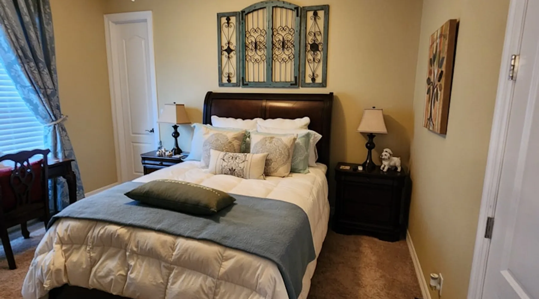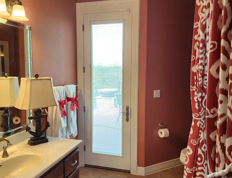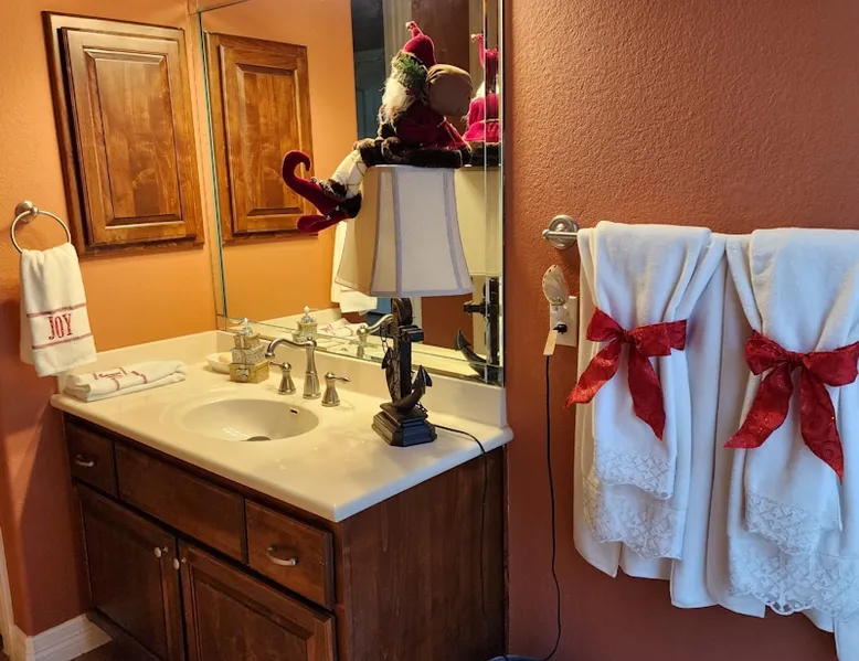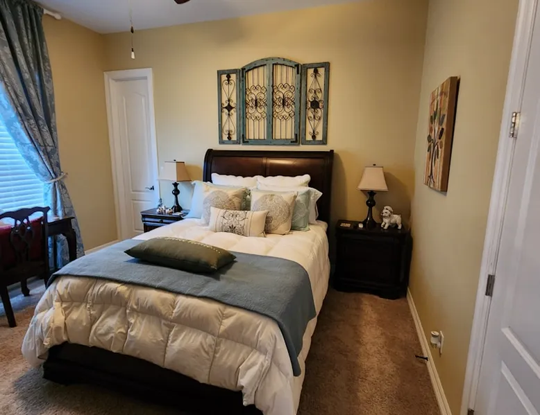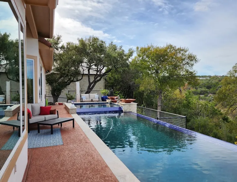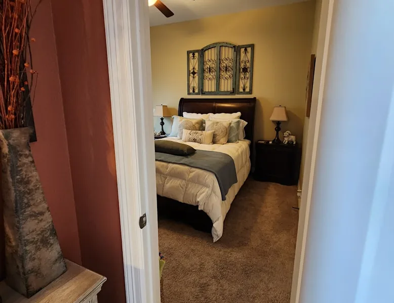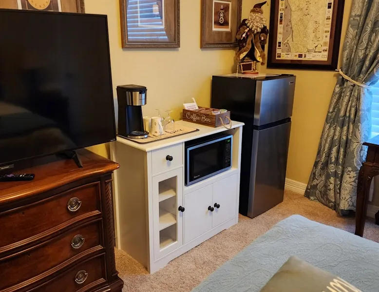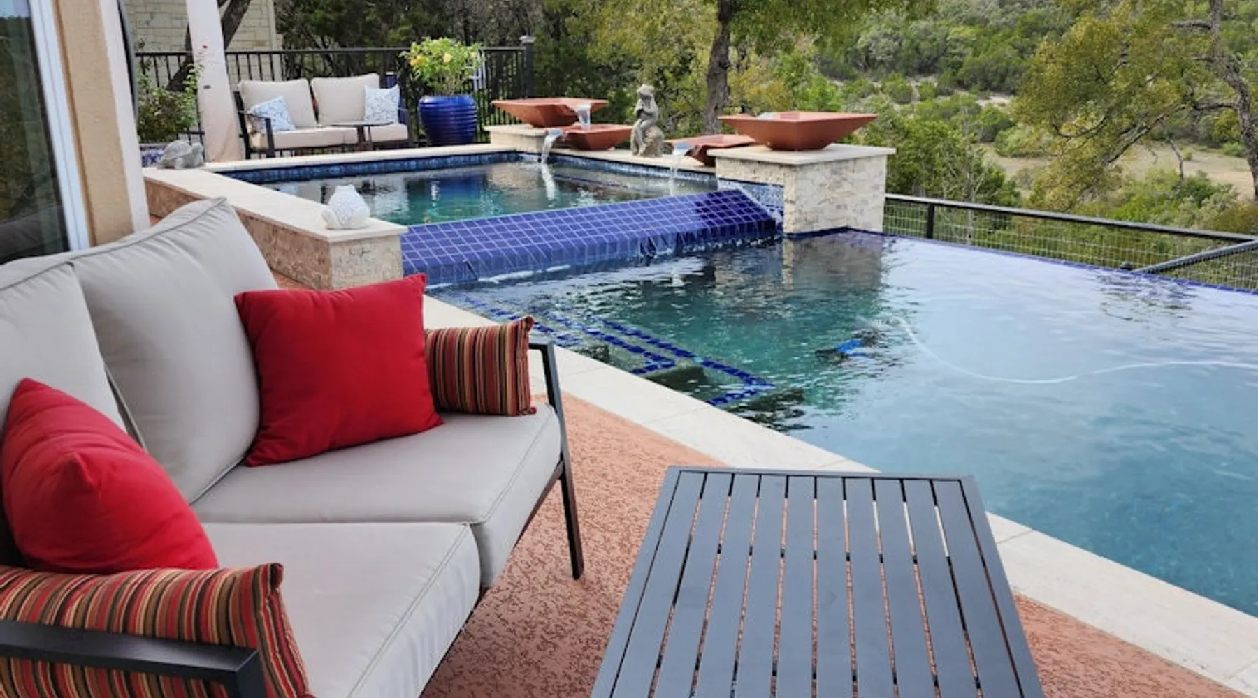Time to kick back and relax and enjoy your stay. Casa dell'Amore bed and breakfast offers 2 rooms to choose from and are listed on Airbnb. We refer to this room as The Cozy Room. You will find all the amenities you would expect and more, including a home-cooked breakfast each morning during your stay with us. You will find a breakfast menu in your room. Our goal is to make your stay as comfortable as possible with a "home away from home" welcoming. The space Please, adults 25 and older only. No children, pets or support animals. 2 person max. No smoking, vaping or e-cigarettes, anywhere in the house, rooms or pool/spa areas. Your room will have: - hi speed internet - queen size bed - full bath - mini refrigerator/freezer with complimentary orange juice, yogurt and bottled water. There is also Klondike bars in the freezer. - microwave - coffee maker - ice bucket (ice maker located at bar in living room) - assortment of coffee k-pods and creamers - snack basket - with chips, cookies, pop corn, crackers, etc. - hair dryer - lighted make-up mirror - 2 terry cloth bath robes for spa room and poolside - walk-in closet with iron and ironing board, luggage rack and full length mirror ~You will receive a bottle of wine as a gift for staying with us. Just let us know your favorite varietal the day prior to your arrival. On the evening of your arrival, Jim will make his famous homemade Crème Brûlée, with a torched sugar topping, fruit and Cool Whip on top for an evening dessert.~ The Cozy Room has a 65" TV, a desk and chair, bedside tables and dresser. It also has adjacent access to the pool and spa through the bath area. There is access to a shared laundry room with washer and dryer. Bottled water is available in your room refrigerator or in the large refrigerator located in the laundry room. You will have access to the kitchen, dinning room, bar, spa room, and the living room which has a fireplace you're welcome to use during cooler months of the year if you so desire. We want you to feel right at home, so if there is something additional we can do to make your stay more comfortable, please do not hesitate to ask. SPA ROOM** **(Please Note: All massages are only available to those guests visiting 2 or more nights, and not available for single night visitors.) Ready to relax, unwind and let yourself go? We offer a complimentary spa treatment to help you do just that. Our Spa Room has 2 Massage Tables, Linens, Towels, Essential Oil Diffuser, Massage Oils, Assorted Men's and Women's Body Lotions from Bath and Body Works and Streaming Spa Music. The complimentary massage is available for all guests individually and provided by your host, Jim. A four-hand experience is available for an additional fee of $15 per person and provided by Jim and Patty. A couples massage is available for an additional fee of $30 per couple and provided by Jim and Patty. The spa room is also available to couples, for their own personal use. POOL/SPA (Clothing Optional) There is a pool and spa (Hot Tub) which overlooks a nature preserve with hillside views. The spa is large enough to seat 15 and has an infinity edge and fountain features and is open year round. The pool has a full length faux infinity edge. The pool and spa are clothing optional. There are 6' privacy screens, which can be extended, on either side of the pool and spa and can be used during the day for additional privacy. In the pool area, we have a propane fire pit which can be used at any time during your stay. The fire pit has seating for 4. There is also seating for 2 at the spa. On the lower level, from the pool, there is a sofa and 2 side chairs, dining table and chairs and a gas grill. NOTE: Because of it's size we do not keep the spa (hot tub) heated continuously. When getting into the spa, please let us know we will heat for you. At night under the stars is wonderful. However, anytime during the day or evening is great as well. Music is streamed patio and pool side. If you would like different music than what is streaming, please let us know, and we will do our best to accommodate your request. Guest access Guests will have access to kitchen, living room, dining room, laundry room, spa room, pool and spa as well as the patio, grill and outside dining table and chairs. There is a counter top icemaker located in the bar area in the living room. During your stay We are Jim and Patty, both retired and have **3 small fur-babies, Nellie, Chloe and Daisy. We love to entertain, drink wine, and of course we can't imagine ourselves without a pool, hot tub and spa room. It is ageless fun for everyone. We are very open-minded sociable night owls and love interacting with our guests, but we will always respect your privacy as well. If you enjoy socializing, having a great time in a relaxing environment, Casa dell'Amore may be just the place for you to visit. We hope you will come stay with us. You will be welcomed with open arms. NOTE: If you happen to leave your toiletries, i.e., toothbrush, toothpaste, razor, deodorant, etc., at home, we probably have what you need, so please do not hesitate to ask. NOTE: **During your stay at Casa dell'Amore, there will probably be a time of interaction with our dog children. They are sweet, playful, shy and love people. During the day they will roam to and from their side yard. If you are not a dog person or persons, or have allergies to dogs, this BnB would probably not be suited for you. Other things to note Our home is located just over a nature preserve. If you are into walking or hiking, there are trails in the nature preserve with different levels from flat (easy) to hills (difficult). If you like wildlife, you will love it here. We have deer all year around in the nature preserve, our yard, and the entire subdivision. Please be watchful of deer during your stay while driving. There is nothing more relaxing, serene, and with sense of an at home feeling as there is in the Texas hill country. Most people here are very w