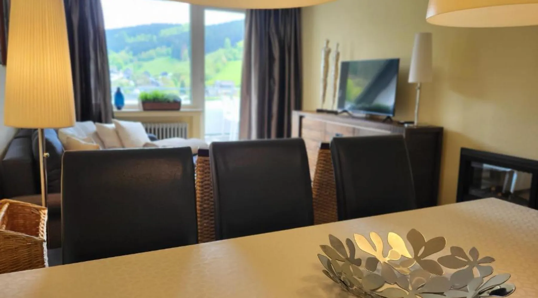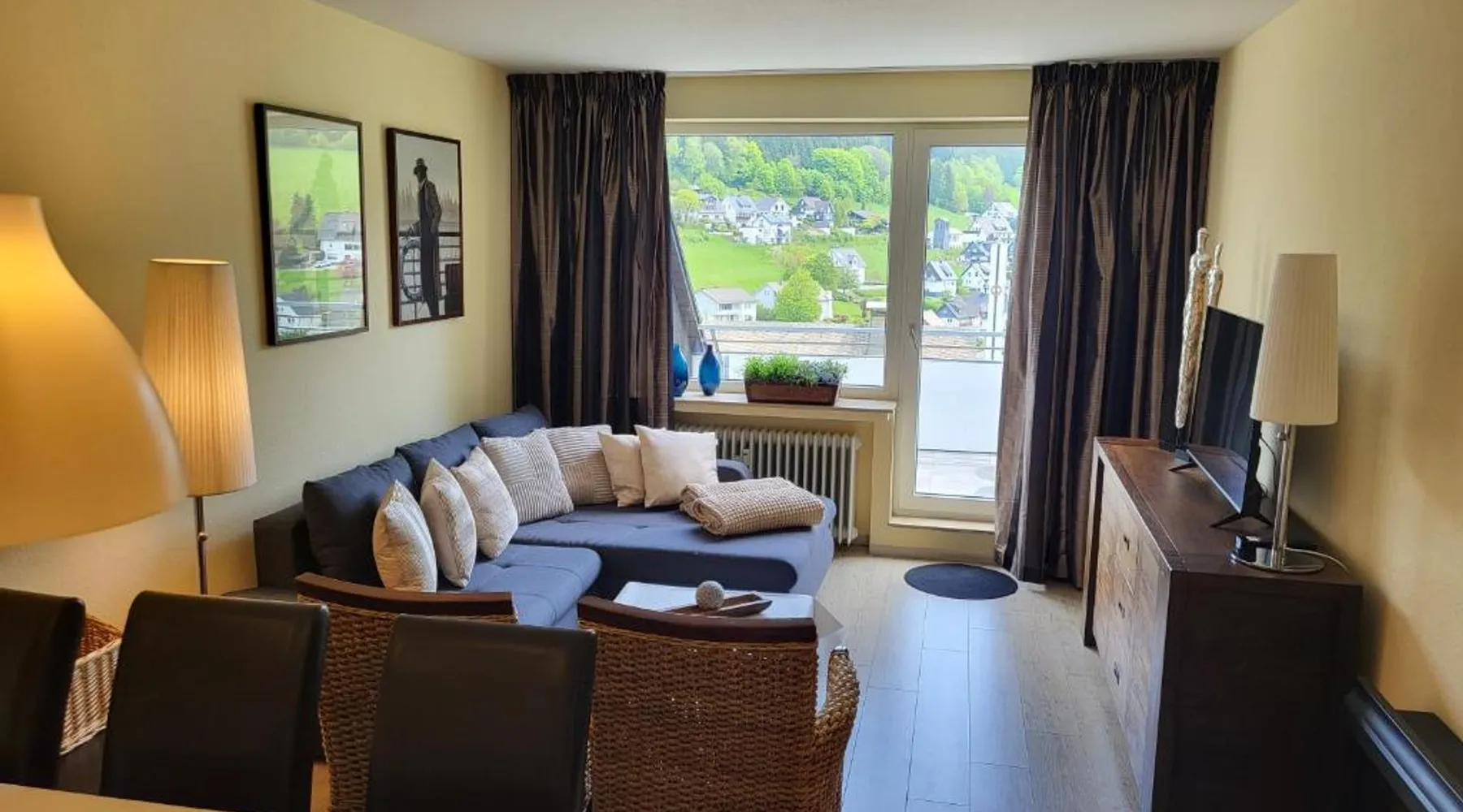 Spacious Accommodations: Panoramablick Winterberg in Winterberg offers a spacious apartment with two bedrooms and a living room. The property features a terrace, balcony, and patio, providing ample outdoor space. Modern Amenities: Guests enjoy free WiFi, a fully equipped kitchen with a kitchenette, and a dishwasher. Additional amenities include a washing machine, TV, and PS4. Convenient Location: Located 34 mi from Paderborn-Lippstadt Airport, the apartment is near attractions such as Kahler Asten (7.5 mi) and St.-Georg-Schanze (3.7 mi). Activities like skiing, hiking, and cycling are available. Guest Favorites: Guests appreciate the scenic views, convenient location, and well-equipped kitchen. This spacious apartment features 1 living room, 2 separate bedrooms and 1 bathroom with a shower and a hairdryer. The well-fitted kitchen has a stovetop, a refrigerator, a dishwasher and kitchenware. Boasting a terrace with garden views, this apartment also features a tea and coffee maker and a flat-screen TV with satellite channels. The unit has 4 beds.