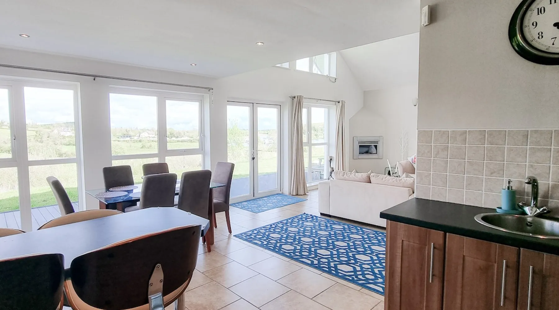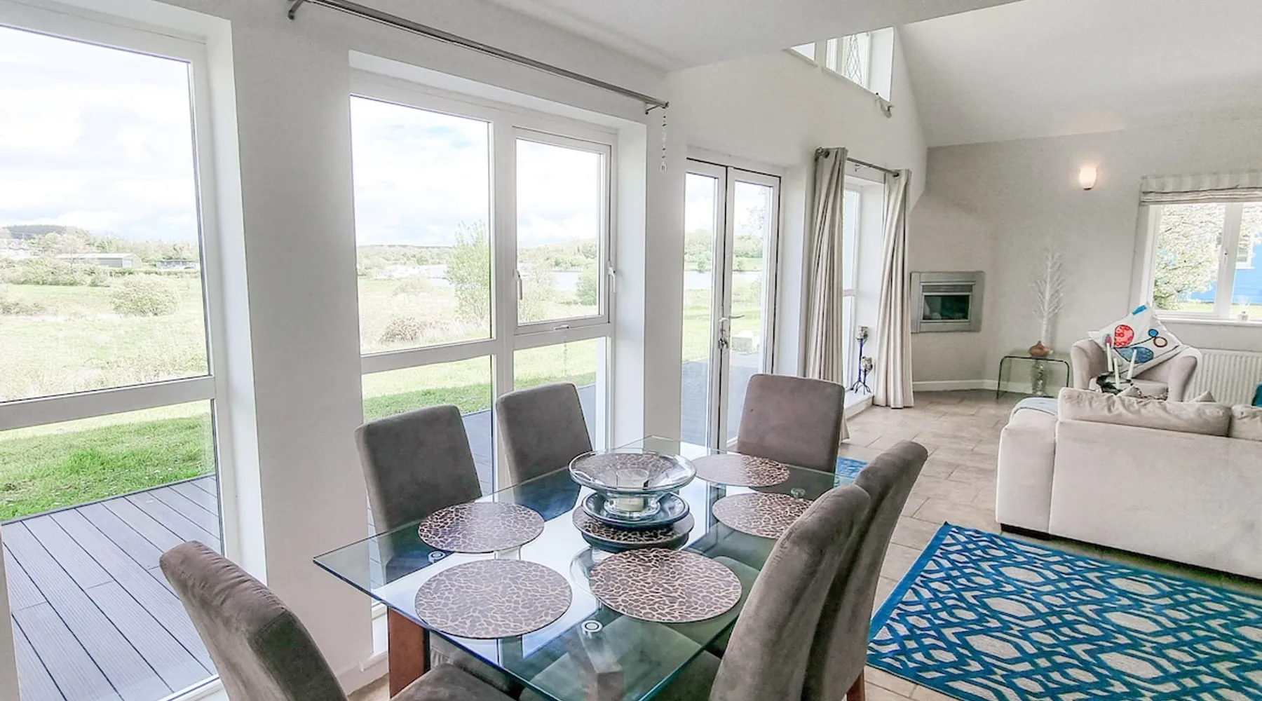 This wonderful luxury Scandinavian style holiday home is situated on the shores of the River Erne in a wildlife reserve. Less than a five-minute drive to the little town of Belturbet, the property is within easy reach of shops, traditional pubs and some good restaurants. With the setting beside the jetty, it is impossible not to want to explore the Shannon Erne waterway by boat. The space This wonderful luxury Scandinavian style holiday home is situated on the shores of the River Erne in a wildlife reserve. Less than a five-minute drive to the little town of Belturbet, the property is within easy reach of shops, traditional pubs and some good restaurants. With the setting beside the jetty, it is impossible not to want to explore the Shannon Erne waterway by boat. But there are also lovely marked walkways and cycle paths along the water’s edge, making these holiday homes perfect for a holiday on land or water. Bicycles are available for hire locally in Belturbet. Riverrun Holiday Homes No 15 – Sleeps 6This spacious and bright holiday home has a beautifully decorated, modern open plan kitchen/dining/living area with an electric fireplace and French doors onto the patio. Additional lounge space with a large Tv is available at the mezzanine level. Enjoy a lot of light and stunning views of River Erne and the local forest. Riverrun Holiday Home No 15 has 3 bedrooms and sleeps 6 guests comfortably: Property layout – Ground floor: - Open kitchen/dining (seats 6-8)/living area - Bedroom 1: Kingsize ensuite (with bath) sleeping 2 - Bedroom 2: Kingsize sleeping 2 - Utility room - Family bathroom with shower, Wc and hand basin - Wc Property layout – First floor: - Lounge area (mezzanine level) - Bedroom 3: Twin ensuite (with bath) sleeping 2 - Family bathroom with bath, over-bath shower, Wc and hand basin - Wc A large open garden (partially decked) with garden furniture and Bbq is available for our guests. There is a gas central heating in this property, and an additional plug-in heater is stored under the stairs. A separate utility room with a washing machine and a dryer is available downstairs. The extra closet is also fitted under the stairs for extra storage. No smoking and no pets. Wifi is available, towels are supplied & travel cot is available on request. Local Area & Tourist Attractions The area is particularly popular with anglers having a reputation for excellent course and pike fishing. There are also a number of stretches of the river which offer good game angling. For a get away from it all holiday, Riverrun Holiday Homes are just perfect. Things to do in the local area: - Speed Boat Tours - Cavan Adventure Centre - Corravahan House & Gardens - Cavan Burren Park - Drumlane Abbey & Round Tower - The Shannon Pot - Killykeen Forest Park - Cloughoughter Castle - Killinkere Visitor & Pet Farm - Tullydermot Falls - Cloughoughter Castle IMPORTANT NOTES1. Heating and Electricity: This is an extra charge which is mostly payable to the Property Manager/Owner. In some cases, energy is charged at a fixed daily rate or a rate per unit on the units consumed or you are required to top up a Pre-Paid Meter while in others, energy charges are included in the rate you have paid. We advise you to check with the local Owner/ Property Manager prior to arrival how this is calculated or prior to making the booking. 2. Security Deposit: A minimum refundable security deposit of €200 (per property) must be paid prior to check-in to your holiday home to the local Property Manager/ Owner. This is either taken over the phone by pre-authorising your credit card when you call the Property Manager to arrange your arrival time 48 hours in advance of arrival or at others it is taken on arrival. In some locations and at certain times of year this can increase to €500 per property. Other things to note Included services - Heating / Electricity: Services available according to season From 28/05 to 28/08. Price: EUR 0.60 per Kw - Booking Fee: Price: EUR 56.00 per booking - Winter Heat: Services available according to season From 01/01 to 27/05. From 29/08 to 31/12. Price: EUR 0.60 per Kw - Parking: Price: Included in the booking - Bed linen: Price: Included in the booking - Towels per Person: Price: Included in the booking - Internet Access: Price: Included in the booking Optional services - Baby high chair: Price: Included in the booking. - Cancellation Insurance: Price: % 5 of the booking price. - Cot/Crib: Price: Included in the booking.