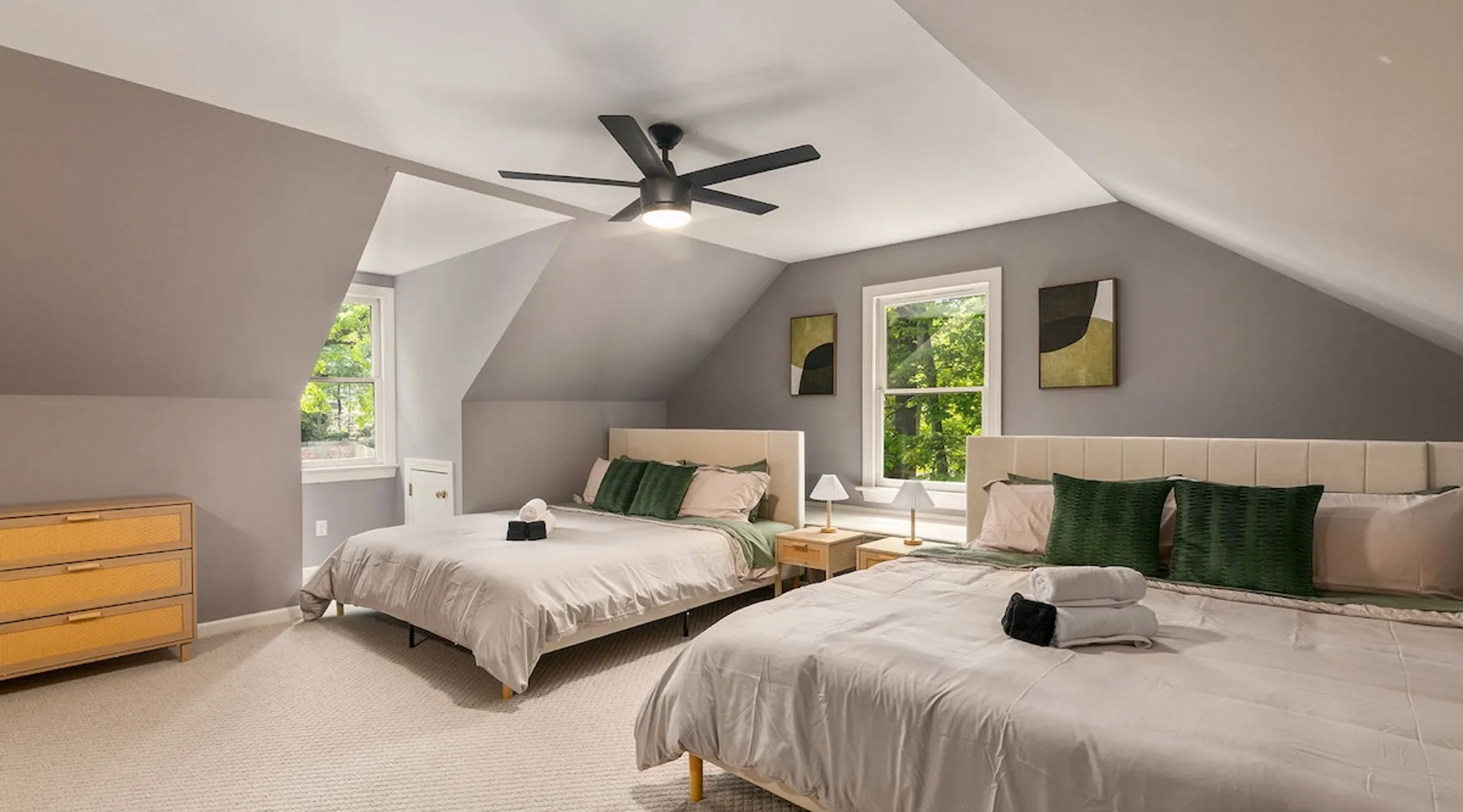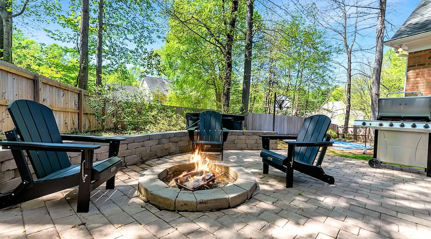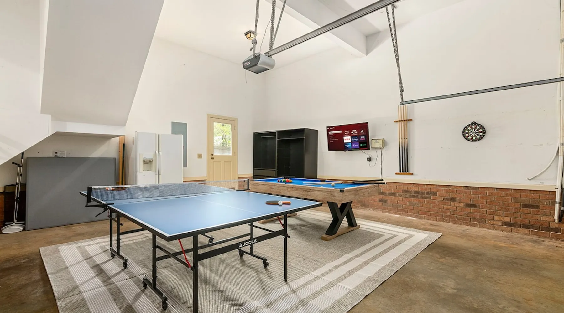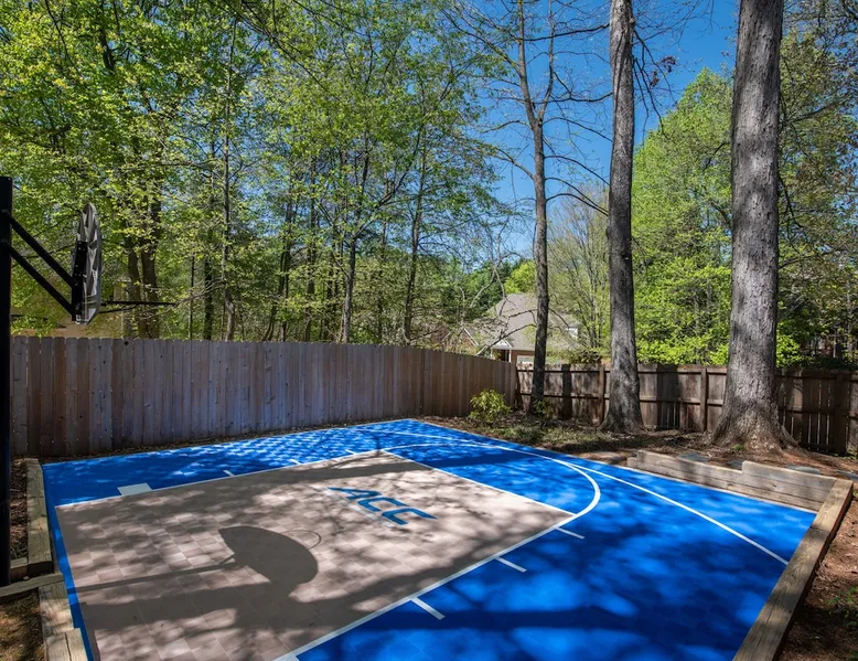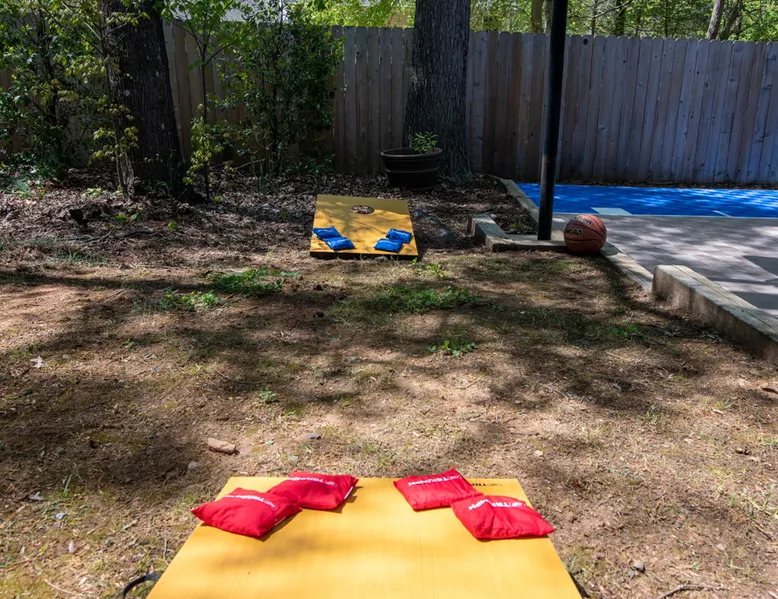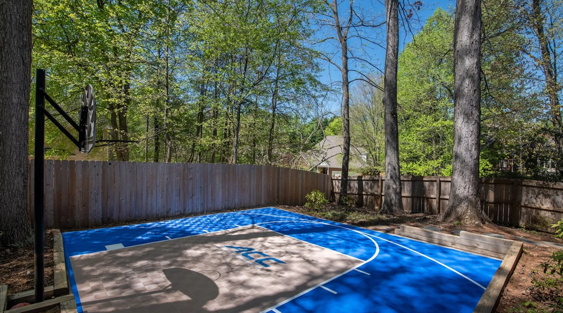 Whether you're in town for a sporting event trade show or a family getaway this spacious and amenity-packed home is your perfect base. With 6 well-appointed bedrooms 12 beds 1 crib and a sprawling outdoor area featuring a basketball court and hot tub your group is sure to create unforgettable memories. n n5 Min to Greensboro Coliseum Complex 15 Min to PGA Sedgefield Country Club Golf 15 Min to Downtown Greensboro 28 Min to High Point ◈Experience Greensboro With Us & Learn More Below!◈VcUBs The space **NO PARTIES, GATHERINGS, OR EVENTS** ☆☆ PLEASE READ HOUSE RULES BEFORE BOOKING IN THE HOUSE RULES SECTION (NOT HERE)☆☆ KEY FEATURES: ☀ Kid-friendly space (Crib & High Chair available) ☀ 6 large bedrooms; 4 kings, 2 doubles, 6 twins, and a crib ☀ 3 full bathrooms + 1 half bath ☀ Fully-equipped kitchen w/ stainless steel appliances ☀ Two open-concept living areas filled with natural light ☀ Private backyard w/ basketball court, hot tub, fire pit, and screened-in patio ☀ Game room with ping pong and pool table ☀ Yoga room for your morning or evening routines ☀ High-speed WiFi + Smart TV ☀ Located in a peaceful neighborhood, a short drive from top attractions Here Are A Few Kind Words From Our Past Guests: "What a charming home and neighborhood with a fantastic host! This stay was wonderful, we really felt right at home and we WILL book again" - Diana "My family and I greatly enjoyed our stay. It accommodated our entire party and served the purpose of what we needed. We cannot thank Blake enough for his hospitality. Thanks Blake!" - Mfoniso & Mary "This home was beautiful! The beds were comfortable, linens were clean, couches comfortable and very nice wall art. " - Heidi ☆☆ BEDROOMS + BATHROOMS ☆☆ Large groups will have plenty of space to spread out between the six spacious bedrooms, all located on the second and third floors. The primary bedroom features a king-sized bed, a large walk-in closet, and an ensuite bathroom, complete with dual sinks, a walk-in shower, and essential toiletries. The other bedrooms are outfitted with a mix of king, double, and twin beds, accommodating a variety of group configurations. These bedrooms share two full bathrooms, each equipped with a shower/tub combo and essential toiletries. There is an additional half bathroom located on the first floor. ☆☆ KITCHEN & LOUNGE ☆☆ The kitchen is a chef’s dream, with ample counter space, a large island, and sleek countertops. You’ll find all the cooking essentials here, including stainless steel appliances, a blender, a spice rack, and more. There’s even a coffee station to kickstart your morning, complete with a Keurig, coffee pods, dry creamer, and branded Greensboro coffee mugs. The kitchen opens up to two cozy living rooms, each equipped with a large flat-screen Smart TV, comfy sofas, and plenty of natural light. Living room indoor fireplace is not available for use, but outdoor fire pit is available! ☆☆ GAME ROOM & YOGA ROOM ☆☆ Our game room is a fun-filled space where you can challenge your friends to a game of pool or ping pong. For those seeking tranquility, the yoga room provides a serene space for your daily practice. ☆☆ OUTDOOR AREA ☆☆ The expansive outdoor area is the highlight of the home. This space features a private basketball court, a hot tub, and a fire pit. There’s also a screened-in patio, a grill, adirondacks, and plenty of seating areas in both shaded and sunny spots. ★☆ Book Today & Let Us Take Care Of You In Greensboro! ☆★ **NO PARTIES, GATHERINGS, OR EVENTS** ☆☆ PLEASE READ HOUSE RULES BEFORE BOOKING IN THE HOUSE RULES SECTION (NOT HERE)☆☆ Other things to note **NO PARTIES, GATHERINGS, OR EVENTS** ☆☆ PLEASE READ HOUSE RULES BEFORE BOOKING IN THE HOUSE RULES SECTION (NOT HERE)☆☆ Our home is equipped with two Ring cameras (outside only) and smart locks for your peace of mind and security during your stay. Each pet must be added your reservation request when booking and a fee of $150 must be submitted with your reservation prior to booking. We look forward to hosting you in this beautiful Greensboro home! **NO PARTIES, GATHERINGS, OR EVENTS** ☆☆ PLEASE READ HOUSE RULES BEFORE BOOKING IN THE HOUSE RULES SECTION (NOT HERE)☆☆