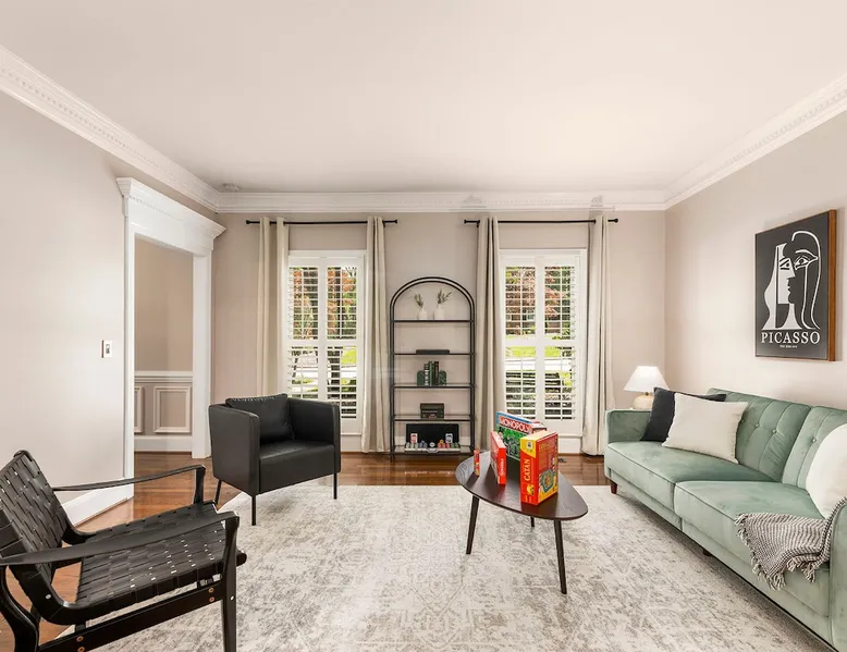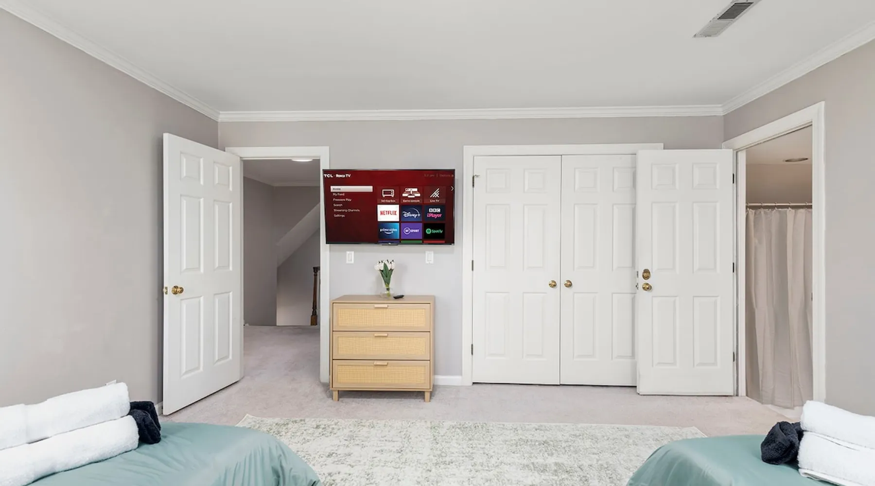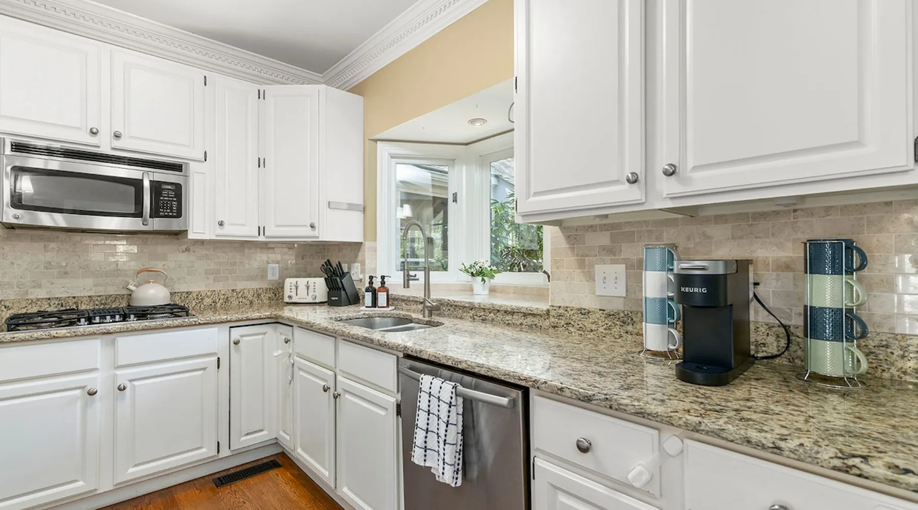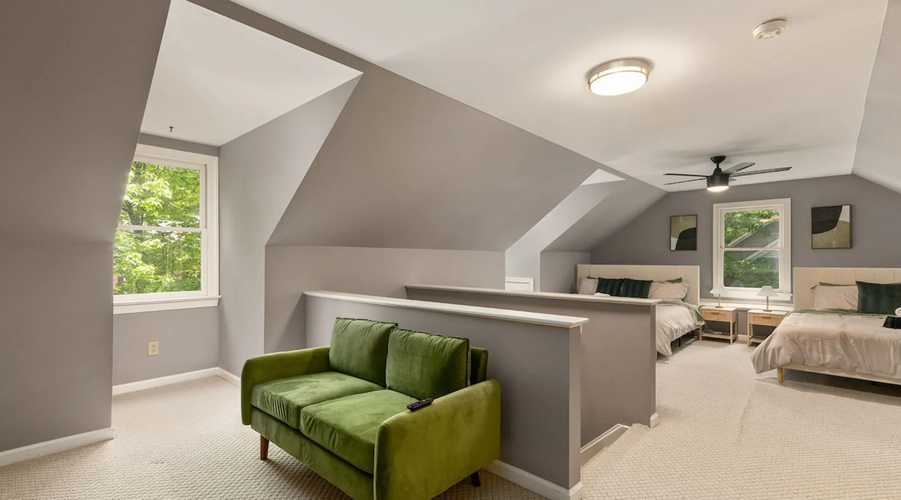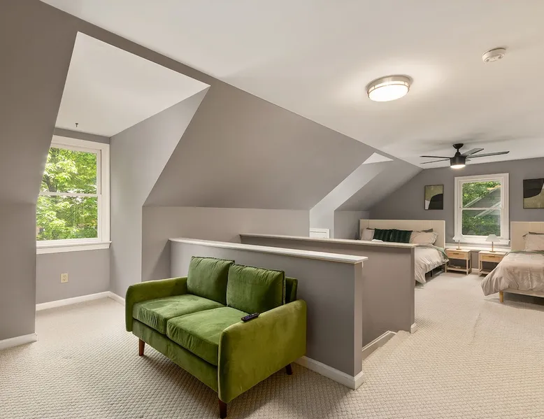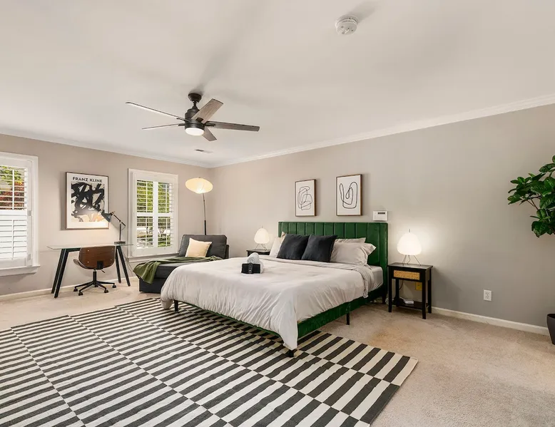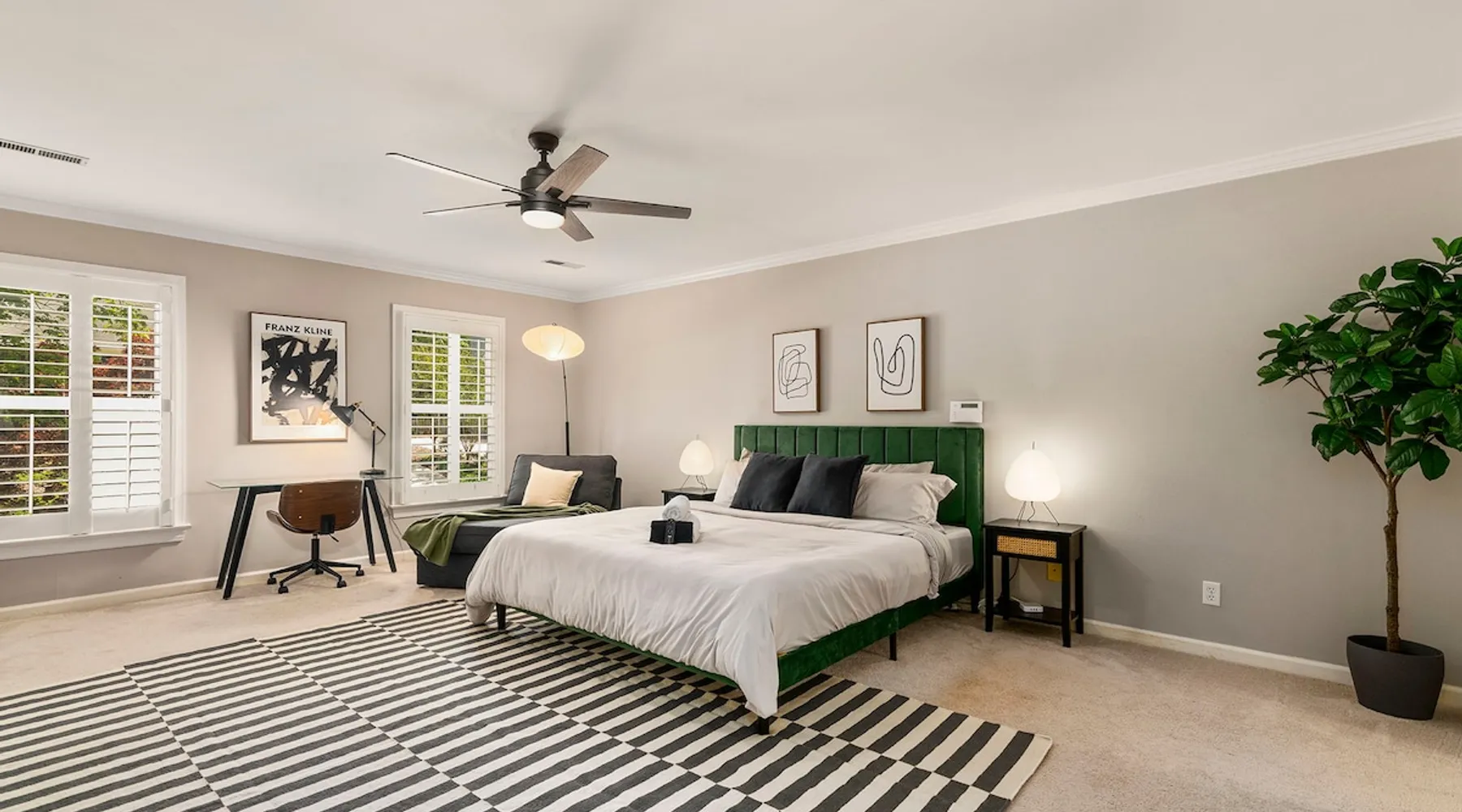 Whether you're in town for a sporting event trade show or a family getaway this spacious and amenity-packed home is your perfect base. With 6 well-appointed bedrooms 12 beds 1 crib and a sprawling outdoor area featuring a basketball court and hot tub your group is sure to create unforgettable memories. n n5 Min to Greensboro Coliseum Complex 15 Min to PGA Sedgefield Country Club Golf 15 Min to Downtown Greensboro 28 Min to High Point ◈Experience Greensboro With Us & Learn More Below!◈VcUBs The space **NO PARTIES, GATHERINGS, OR EVENTS** ☆☆ PLEASE READ HOUSE RULES BEFORE BOOKING IN THE HOUSE RULES SECTION (NOT HERE)☆☆ KEY FEATURES: ☀ Kid-friendly space (Crib & High Chair available) ☀ 6 large bedrooms; 4 kings, 2 doubles, 6 twins, and a crib ☀ 3 full bathrooms + 1 half bath ☀ Fully-equipped kitchen w/ stainless steel appliances ☀ Two open-concept living areas filled with natural light ☀ Private backyard w/ basketball court, hot tub, fire pit, and screened-in patio ☀ Game room with ping pong and pool table ☀ Yoga room for your morning or evening routines ☀ High-speed WiFi + Smart TV ☀ Located in a peaceful neighborhood, a short drive from top attractions Here Are A Few Kind Words From Our Past Guests: "What a charming home and neighborhood with a fantastic host! This stay was wonderful, we really felt right at home and we WILL book again" - Diana "My family and I greatly enjoyed our stay. It accommodated our entire party and served the purpose of what we needed. We cannot thank Blake enough for his hospitality. Thanks Blake!" - Mfoniso & Mary "This home was beautiful! The beds were comfortable, linens were clean, couches comfortable and very nice wall art. " - Heidi ☆☆ BEDROOMS + BATHROOMS ☆☆ Large groups will have plenty of space to spread out between the six spacious bedrooms, all located on the second and third floors. The primary bedroom features a king-sized bed, a large walk-in closet, and an ensuite bathroom, complete with dual sinks, a walk-in shower, and essential toiletries. The other bedrooms are outfitted with a mix of king, double, and twin beds, accommodating a variety of group configurations. These bedrooms share two full bathrooms, each equipped with a shower/tub combo and essential toiletries. There is an additional half bathroom located on the first floor. ☆☆ KITCHEN & LOUNGE ☆☆ The kitchen is a chef’s dream, with ample counter space, a large island, and sleek countertops. You’ll find all the cooking essentials here, including stainless steel appliances, a blender, a spice rack, and more. There’s even a coffee station to kickstart your morning, complete with a Keurig, coffee pods, dry creamer, and branded Greensboro coffee mugs. The kitchen opens up to two cozy living rooms, each equipped with a large flat-screen Smart TV, comfy sofas, and plenty of natural light. Living room indoor fireplace is not available for use, but outdoor fire pit is available! ☆☆ GAME ROOM & YOGA ROOM ☆☆ Our game room is a fun-filled space where you can challenge your friends to a game of pool or ping pong. For those seeking tranquility, the yoga room provides a serene space for your daily practice. ☆☆ OUTDOOR AREA ☆☆ The expansive outdoor area is the highlight of the home. This space features a private basketball court, a hot tub, and a fire pit. There’s also a screened-in patio, a grill, adirondacks, and plenty of seating areas in both shaded and sunny spots. ★☆ Book Today & Let Us Take Care Of You In Greensboro! ☆★ **NO PARTIES, GATHERINGS, OR EVENTS** ☆☆ PLEASE READ HOUSE RULES BEFORE BOOKING IN THE HOUSE RULES SECTION (NOT HERE)☆☆ Other things to note **NO PARTIES, GATHERINGS, OR EVENTS** ☆☆ PLEASE READ HOUSE RULES BEFORE BOOKING IN THE HOUSE RULES SECTION (NOT HERE)☆☆ Our home is equipped with two Ring cameras (outside only) and smart locks for your peace of mind and security during your stay. Each pet must be added your reservation request when booking and a fee of $150 must be submitted with your reservation prior to booking. We look forward to hosting you in this beautiful Greensboro home! **NO PARTIES, GATHERINGS, OR EVENTS** ☆☆ PLEASE READ HOUSE RULES BEFORE BOOKING IN THE HOUSE RULES SECTION (NOT HERE)☆☆