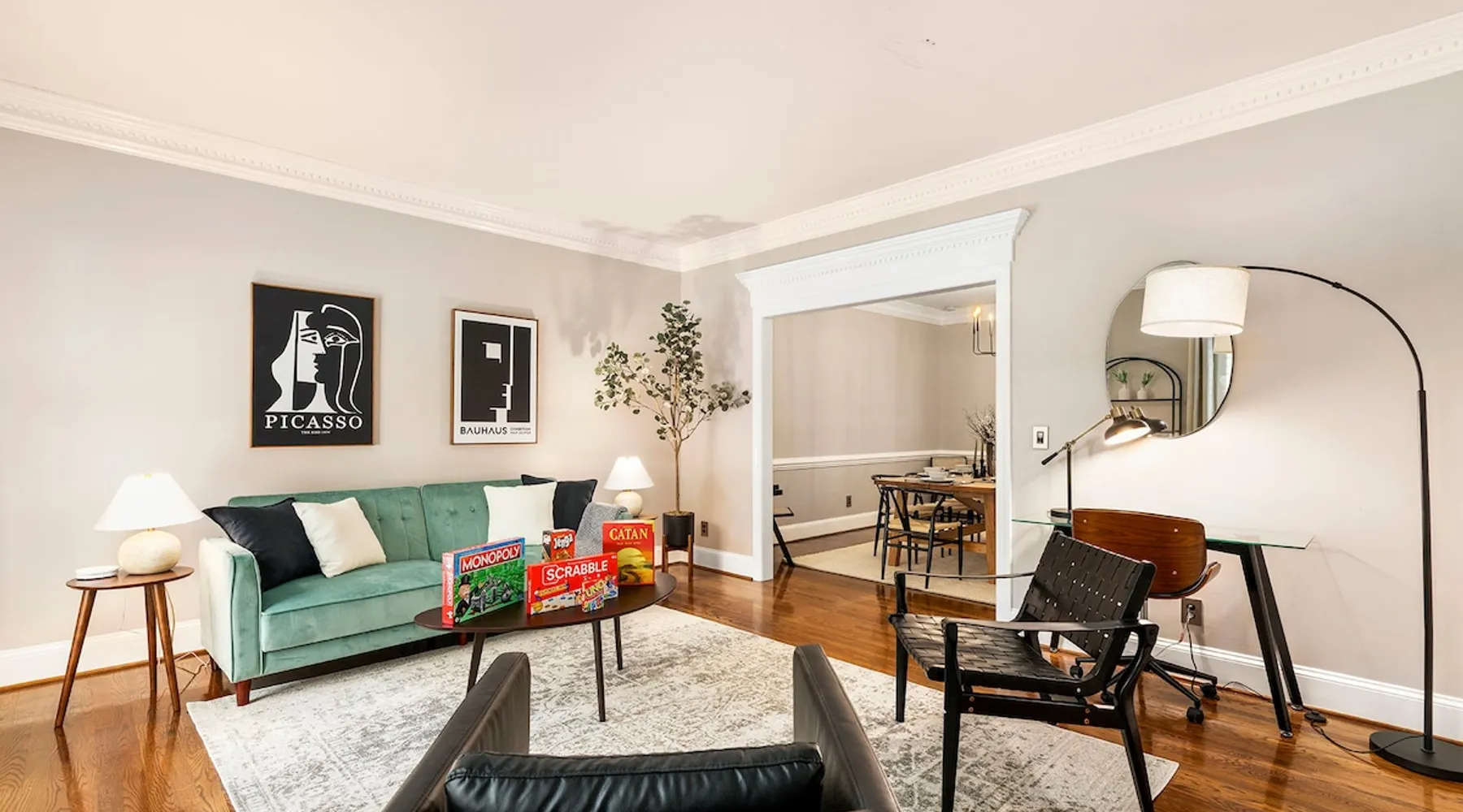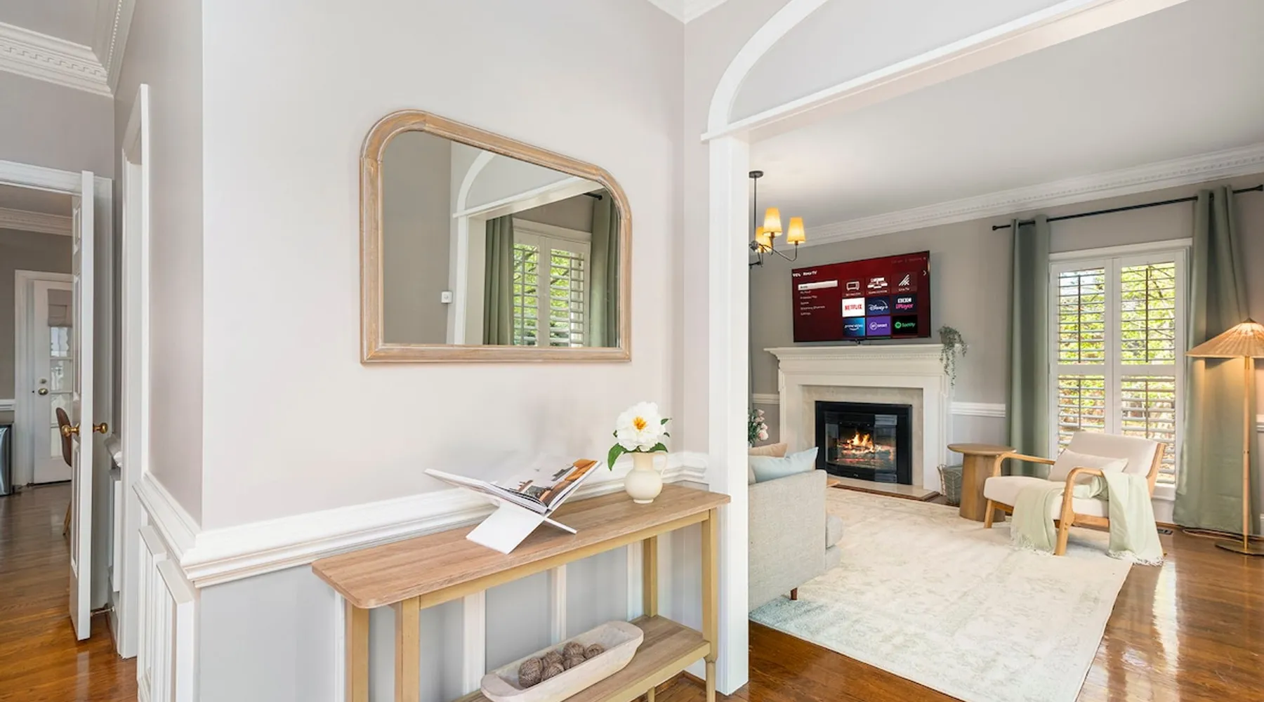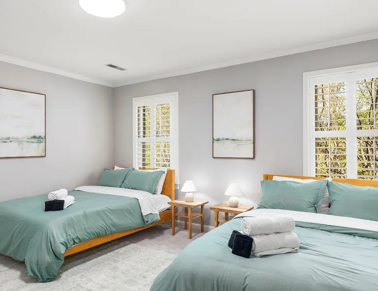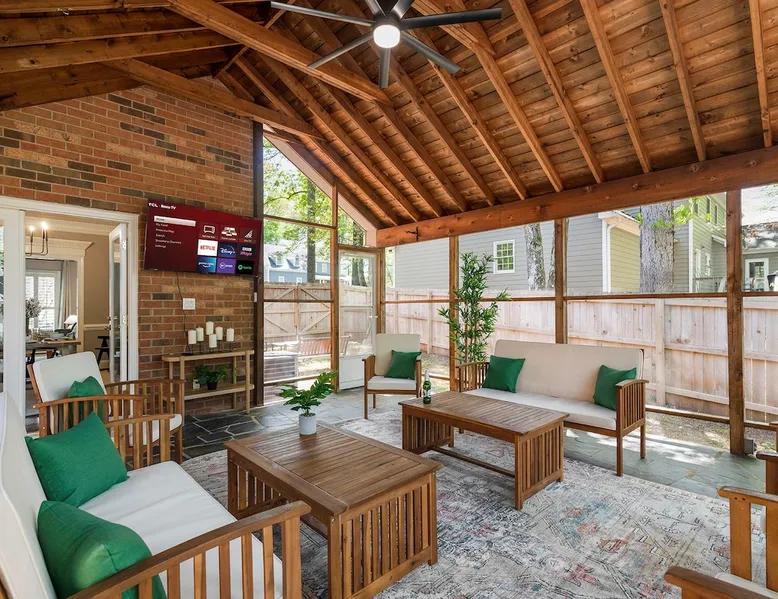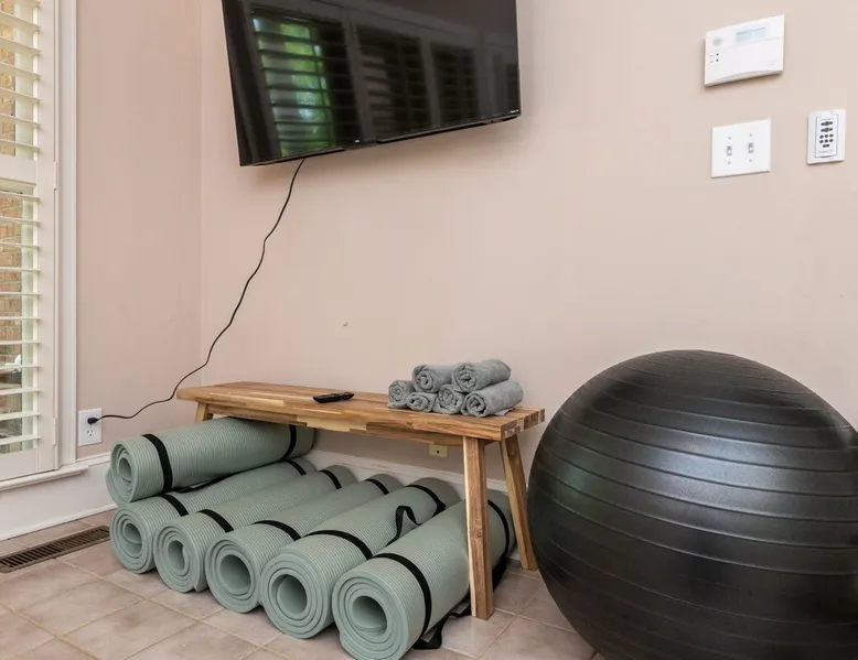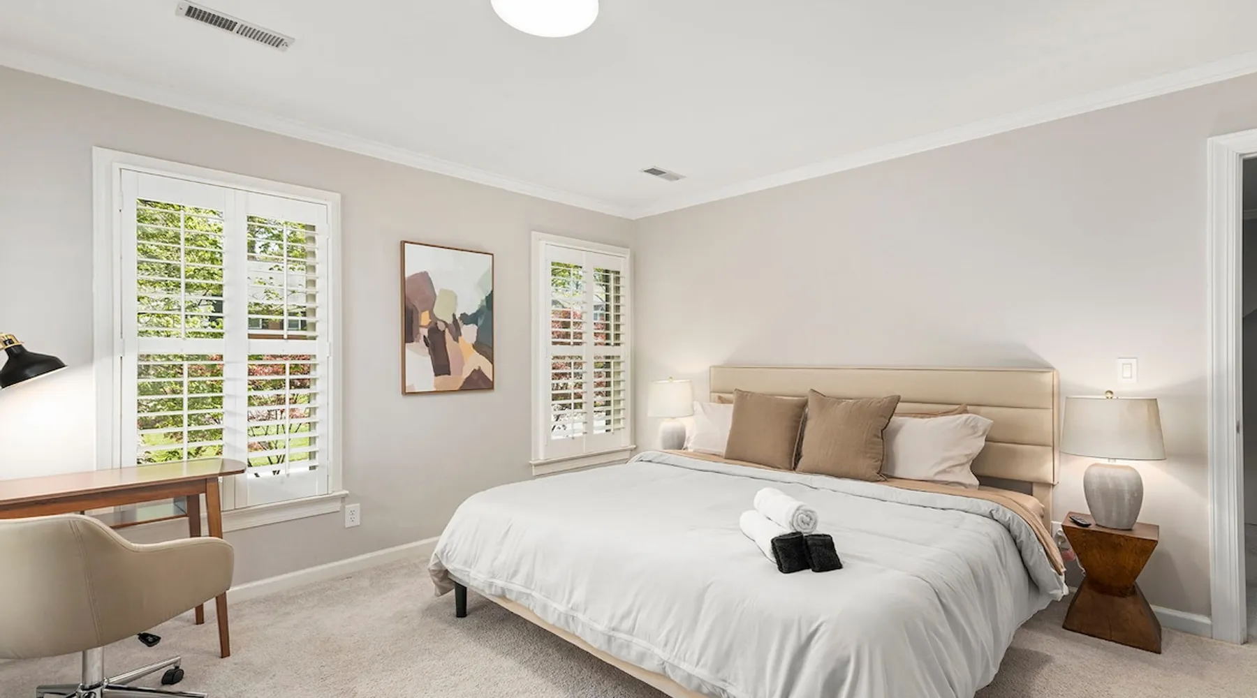 Whether you're in town for a sporting event trade show or a family getaway this spacious and amenity-packed home is your perfect base. With 6 well-appointed bedrooms 12 beds 1 crib and a sprawling outdoor area featuring a basketball court and hot tub your group is sure to create unforgettable memories. n n5 Min to Greensboro Coliseum Complex 15 Min to PGA Sedgefield Country Club Golf 15 Min to Downtown Greensboro 28 Min to High Point ◈Experience Greensboro With Us & Learn More Below!◈VcUBs The space **NO PARTIES, GATHERINGS, OR EVENTS** ☆☆ PLEASE READ HOUSE RULES BEFORE BOOKING IN THE HOUSE RULES SECTION (NOT HERE)☆☆ KEY FEATURES: ☀ Kid-friendly space (Crib & High Chair available) ☀ 6 large bedrooms; 4 kings, 2 doubles, 6 twins, and a crib ☀ 3 full bathrooms + 1 half bath ☀ Fully-equipped kitchen w/ stainless steel appliances ☀ Two open-concept living areas filled with natural light ☀ Private backyard w/ basketball court, hot tub, fire pit, and screened-in patio ☀ Game room with ping pong and pool table ☀ Yoga room for your morning or evening routines ☀ High-speed WiFi + Smart TV ☀ Located in a peaceful neighborhood, a short drive from top attractions Here Are A Few Kind Words From Our Past Guests: "What a charming home and neighborhood with a fantastic host! This stay was wonderful, we really felt right at home and we WILL book again" - Diana "My family and I greatly enjoyed our stay. It accommodated our entire party and served the purpose of what we needed. We cannot thank Blake enough for his hospitality. Thanks Blake!" - Mfoniso & Mary "This home was beautiful! The beds were comfortable, linens were clean, couches comfortable and very nice wall art. " - Heidi ☆☆ BEDROOMS + BATHROOMS ☆☆ Large groups will have plenty of space to spread out between the six spacious bedrooms, all located on the second and third floors. The primary bedroom features a king-sized bed, a large walk-in closet, and an ensuite bathroom, complete with dual sinks, a walk-in shower, and essential toiletries. The other bedrooms are outfitted with a mix of king, double, and twin beds, accommodating a variety of group configurations. These bedrooms share two full bathrooms, each equipped with a shower/tub combo and essential toiletries. There is an additional half bathroom located on the first floor. ☆☆ KITCHEN & LOUNGE ☆☆ The kitchen is a chef’s dream, with ample counter space, a large island, and sleek countertops. You’ll find all the cooking essentials here, including stainless steel appliances, a blender, a spice rack, and more. There’s even a coffee station to kickstart your morning, complete with a Keurig, coffee pods, dry creamer, and branded Greensboro coffee mugs. The kitchen opens up to two cozy living rooms, each equipped with a large flat-screen Smart TV, comfy sofas, and plenty of natural light. Living room indoor fireplace is not available for use, but outdoor fire pit is available! ☆☆ GAME ROOM & YOGA ROOM ☆☆ Our game room is a fun-filled space where you can challenge your friends to a game of pool or ping pong. For those seeking tranquility, the yoga room provides a serene space for your daily practice. ☆☆ OUTDOOR AREA ☆☆ The expansive outdoor area is the highlight of the home. This space features a private basketball court, a hot tub, and a fire pit. There’s also a screened-in patio, a grill, adirondacks, and plenty of seating areas in both shaded and sunny spots. ★☆ Book Today & Let Us Take Care Of You In Greensboro! ☆★ **NO PARTIES, GATHERINGS, OR EVENTS** ☆☆ PLEASE READ HOUSE RULES BEFORE BOOKING IN THE HOUSE RULES SECTION (NOT HERE)☆☆ Other things to note **NO PARTIES, GATHERINGS, OR EVENTS** ☆☆ PLEASE READ HOUSE RULES BEFORE BOOKING IN THE HOUSE RULES SECTION (NOT HERE)☆☆ Our home is equipped with two Ring cameras (outside only) and smart locks for your peace of mind and security during your stay. Each pet must be added your reservation request when booking and a fee of $150 must be submitted with your reservation prior to booking. We look forward to hosting you in this beautiful Greensboro home! **NO PARTIES, GATHERINGS, OR EVENTS** ☆☆ PLEASE READ HOUSE RULES BEFORE BOOKING IN THE HOUSE RULES SECTION (NOT HERE)☆☆