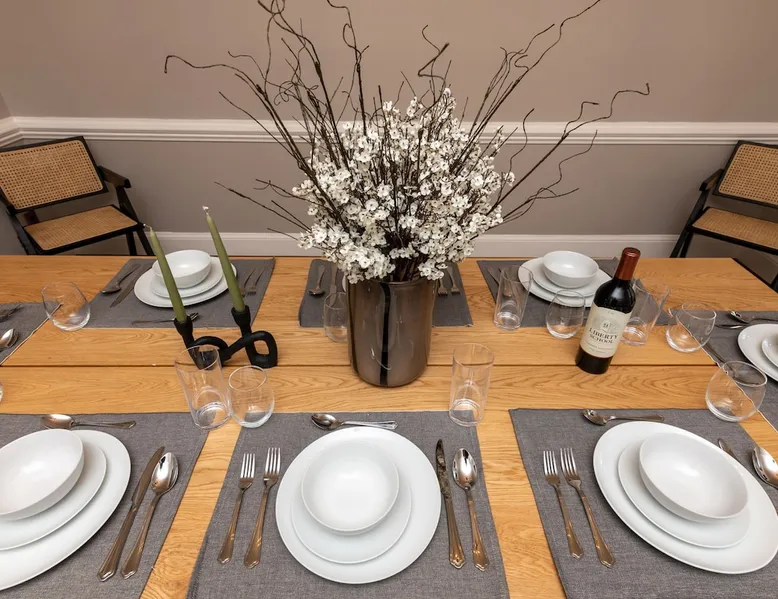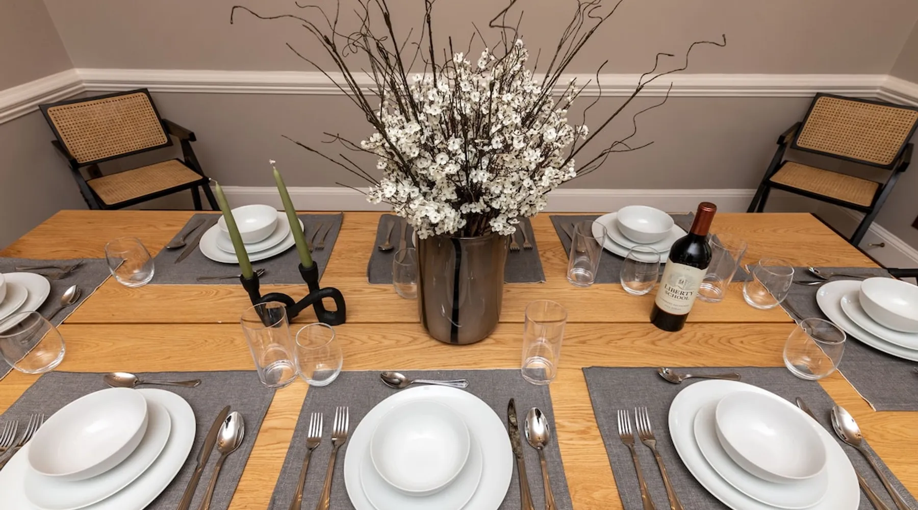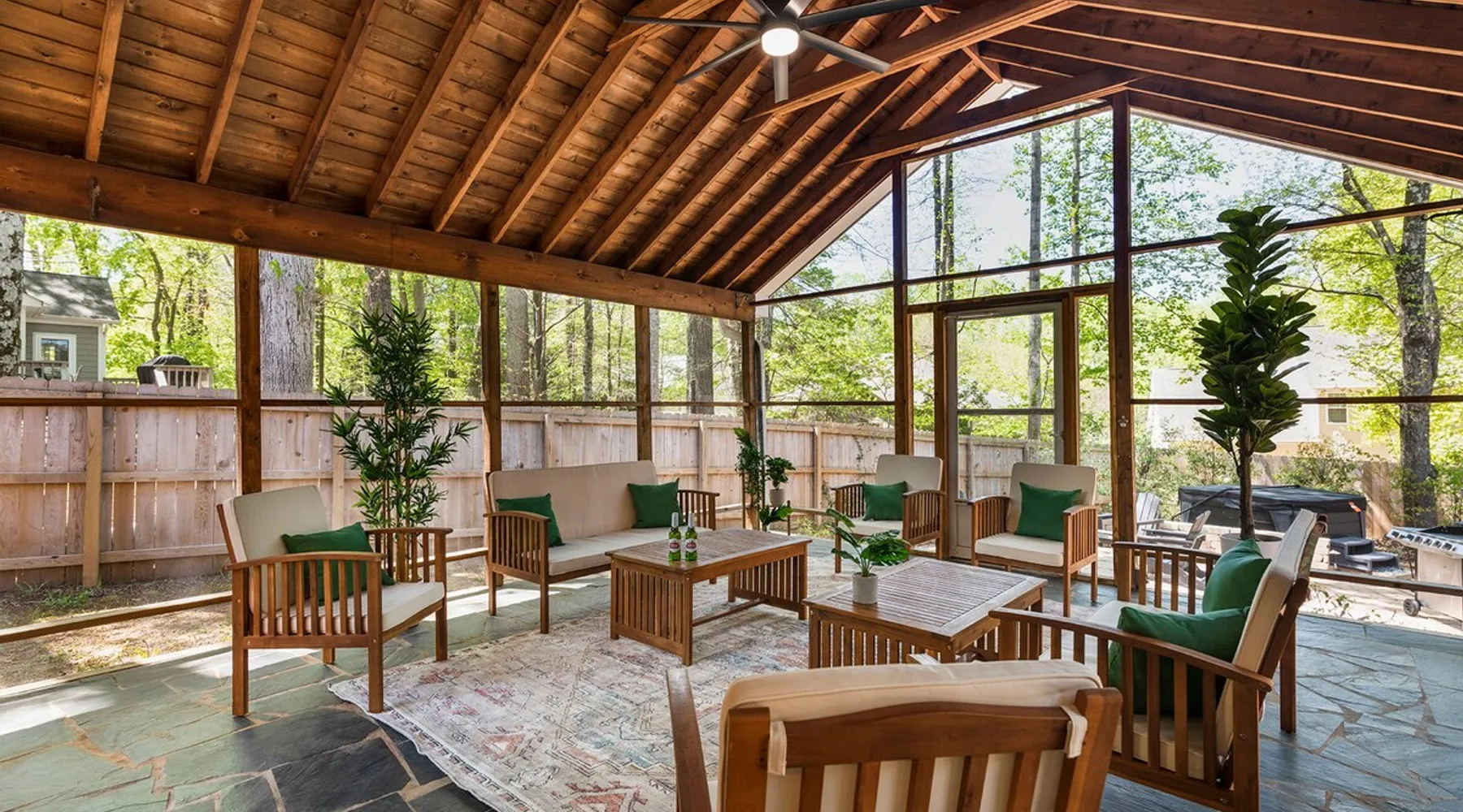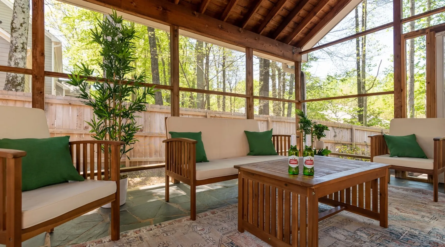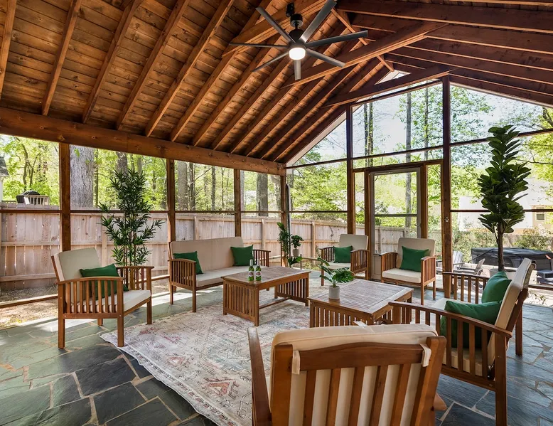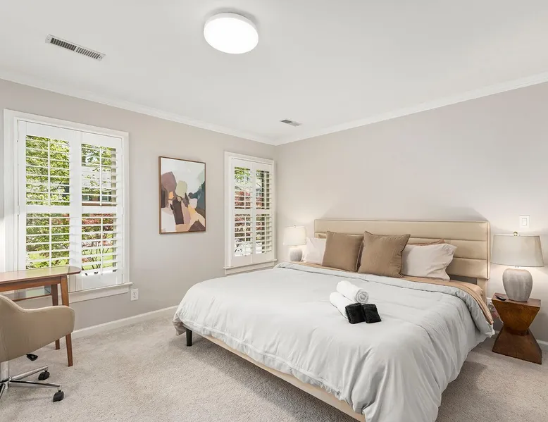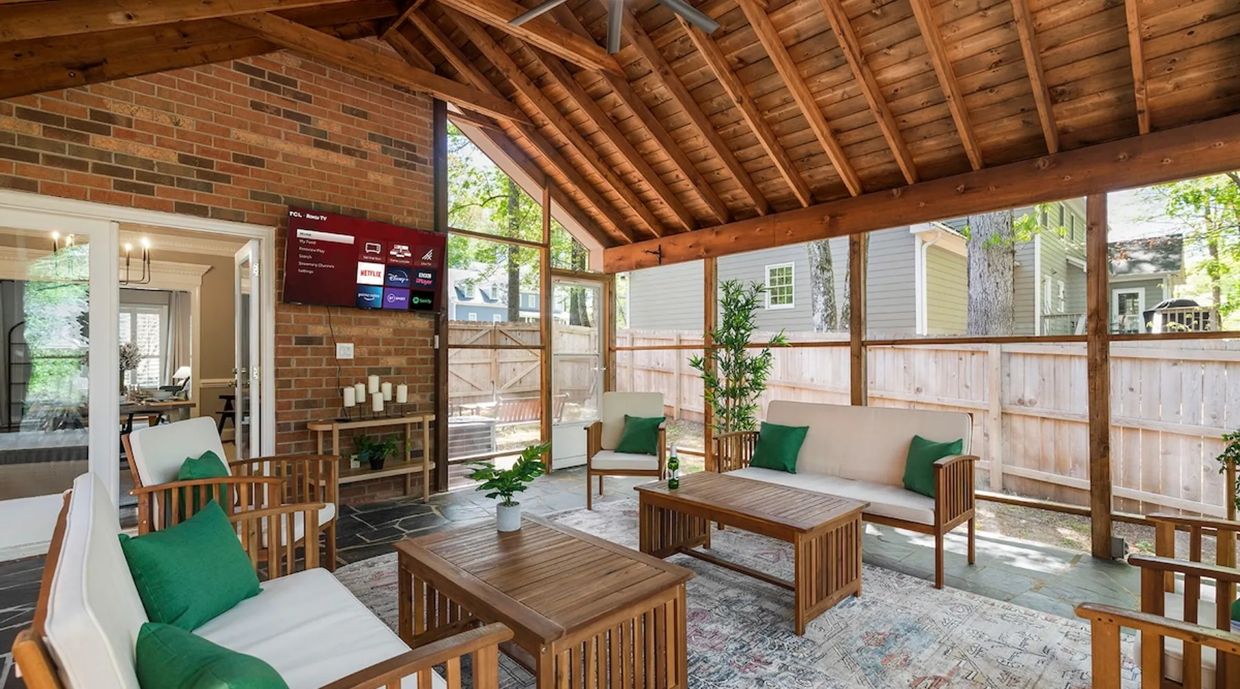 Whether you're in town for a sporting event trade show or a family getaway this spacious and amenity-packed home is your perfect base. With 6 well-appointed bedrooms 12 beds 1 crib and a sprawling outdoor area featuring a basketball court and hot tub your group is sure to create unforgettable memories. n n5 Min to Greensboro Coliseum Complex 15 Min to PGA Sedgefield Country Club Golf 15 Min to Downtown Greensboro 28 Min to High Point ◈Experience Greensboro With Us & Learn More Below!◈VcUBs The space **NO PARTIES, GATHERINGS, OR EVENTS** ☆☆ PLEASE READ HOUSE RULES BEFORE BOOKING IN THE HOUSE RULES SECTION (NOT HERE)☆☆ KEY FEATURES: ☀ Kid-friendly space (Crib & High Chair available) ☀ 6 large bedrooms; 4 kings, 2 doubles, 6 twins, and a crib ☀ 3 full bathrooms + 1 half bath ☀ Fully-equipped kitchen w/ stainless steel appliances ☀ Two open-concept living areas filled with natural light ☀ Private backyard w/ basketball court, hot tub, fire pit, and screened-in patio ☀ Game room with ping pong and pool table ☀ Yoga room for your morning or evening routines ☀ High-speed WiFi + Smart TV ☀ Located in a peaceful neighborhood, a short drive from top attractions Here Are A Few Kind Words From Our Past Guests: "What a charming home and neighborhood with a fantastic host! This stay was wonderful, we really felt right at home and we WILL book again" - Diana "My family and I greatly enjoyed our stay. It accommodated our entire party and served the purpose of what we needed. We cannot thank Blake enough for his hospitality. Thanks Blake!" - Mfoniso & Mary "This home was beautiful! The beds were comfortable, linens were clean, couches comfortable and very nice wall art. " - Heidi ☆☆ BEDROOMS + BATHROOMS ☆☆ Large groups will have plenty of space to spread out between the six spacious bedrooms, all located on the second and third floors. The primary bedroom features a king-sized bed, a large walk-in closet, and an ensuite bathroom, complete with dual sinks, a walk-in shower, and essential toiletries. The other bedrooms are outfitted with a mix of king, double, and twin beds, accommodating a variety of group configurations. These bedrooms share two full bathrooms, each equipped with a shower/tub combo and essential toiletries. There is an additional half bathroom located on the first floor. ☆☆ KITCHEN & LOUNGE ☆☆ The kitchen is a chef’s dream, with ample counter space, a large island, and sleek countertops. You’ll find all the cooking essentials here, including stainless steel appliances, a blender, a spice rack, and more. There’s even a coffee station to kickstart your morning, complete with a Keurig, coffee pods, dry creamer, and branded Greensboro coffee mugs. The kitchen opens up to two cozy living rooms, each equipped with a large flat-screen Smart TV, comfy sofas, and plenty of natural light. Living room indoor fireplace is not available for use, but outdoor fire pit is available! ☆☆ GAME ROOM & YOGA ROOM ☆☆ Our game room is a fun-filled space where you can challenge your friends to a game of pool or ping pong. For those seeking tranquility, the yoga room provides a serene space for your daily practice. ☆☆ OUTDOOR AREA ☆☆ The expansive outdoor area is the highlight of the home. This space features a private basketball court, a hot tub, and a fire pit. There’s also a screened-in patio, a grill, adirondacks, and plenty of seating areas in both shaded and sunny spots. ★☆ Book Today & Let Us Take Care Of You In Greensboro! ☆★ **NO PARTIES, GATHERINGS, OR EVENTS** ☆☆ PLEASE READ HOUSE RULES BEFORE BOOKING IN THE HOUSE RULES SECTION (NOT HERE)☆☆ Other things to note **NO PARTIES, GATHERINGS, OR EVENTS** ☆☆ PLEASE READ HOUSE RULES BEFORE BOOKING IN THE HOUSE RULES SECTION (NOT HERE)☆☆ Our home is equipped with two Ring cameras (outside only) and smart locks for your peace of mind and security during your stay. Each pet must be added your reservation request when booking and a fee of $150 must be submitted with your reservation prior to booking. We look forward to hosting you in this beautiful Greensboro home! **NO PARTIES, GATHERINGS, OR EVENTS** ☆☆ PLEASE READ HOUSE RULES BEFORE BOOKING IN THE HOUSE RULES SECTION (NOT HERE)☆☆