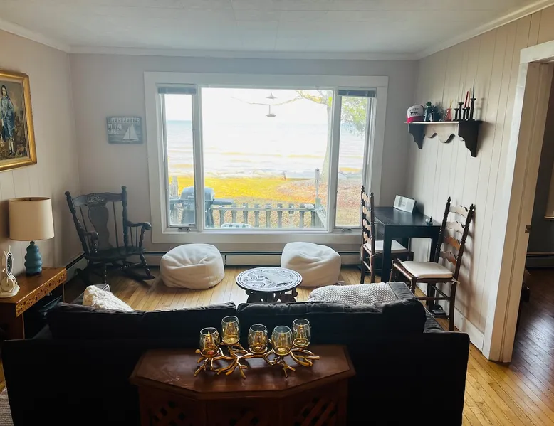 Escape to our cozy lakeside cabin, affectionately known as Las Brisas, nestled on 150 feet of private Lake Michigan shoreline. It’s the perfect peaceful getaway for up to 4 guests, offering breathtaking sunrises, quiet evenings, and space to unwind. Just a short drive from Door County, you’ll have easy access to its charming wineries and local shops. Note: This is a cabin experience — rustic, relaxed, and designed for those who appreciate simplicity and nature over polish. The space Take in the sunrise with coffee on the couch or stroll your own private stretch of Lake Michigan shoreline. Enjoy the outdoor fire pit for cozy evenings under the stars. You’re just 7 minutes from Algoma, WI, where you can enjoy restaurants, bowling, the scenic crescent beach, or even launch your boat. Fishing enthusiast? Several charter options are nearby. ⸻ Sleeping Arrangements Sleeps up to 4 guests comfortably: • Bedroom 1: Queen bed • Bedroom 2: Full bed + Twin bed ⸻ Bathrooms • One full bath with stand-up shower • One half bath ⸻ Kitchen Fully stocked with everything needed to cook at home: Pots, pans, plates, silverware, utensils, toaster, microwave, crock pot, baking sheets, and more. ⸻ Internet, TV & Gaming • Wi-Fi is provided, but speeds vary due to the remote location. Since we use satellite for internet the connection can be disrupted during inclement weather. • TV with Roku, antenna, and a PlayStation 4. (Streaming apps like Netflix, Prime Video, and HBO available — log in with your own credentials.) • Cellular reception is limited; AT&T and Verizon usually get one bar. Cellular service is not guaranteed. Use Wi-Fi calling when possible. ⸻ Pets • Dogs are welcome! Please clean up after them. • Keep dogs south of the fence to the north (neighbor’s boundary); the forested property to the south is fine for exploration. ⸻ Outdoor Spaces • Two decks and 150 feet of private lakefront • Hammock and fire pit • Additional firewood may be purchased from neighbors to the north if our supply runs low ⸻ We Provide: • Dish soap, hand soap, shower soap. • Starter supply of toilet paper, paper towels, and trash bags • Towels and linens • One window AC unit (in the lake-facing bedroom) ⸻ Not Provided: • Washer and dryer • Dishwasher • Cable TV ⸻ Additional Notes • No parties or indoor smoking • All guests must be listed in the reservation • Please respect the neighbors to the north — the fence marks the boundary Note: Lake Michigan is ever-changing — sometimes there’s a sandy beach, sometimes just shoreline. Either way, you’ll enjoy access to the lake Guest access The entire house and property except for the garage. Other things to note • The indoor fireplace is ornamental—it does work, but it’s a bit finicky. We don’t include it in the rental to avoid frustration. The outdoor fire pit is great for s’mores or stories. • You’re in nature, which means you may encounter bugs, critters, or even the occasional curious raccoon. We recommend bringing bug spray and keeping food sealed or indoors. • If you’re unsure whether this is the right fit for you, we suggest reading reviews from past guests. Many people love the rustic charm of our property, but it may not meet everyone’s expectations for a luxury stay—and that’s okay!