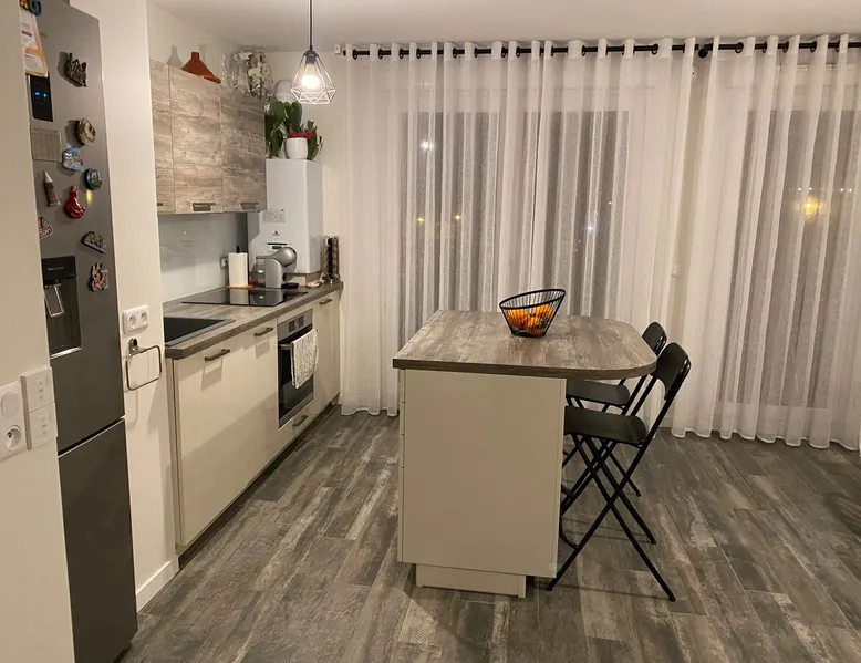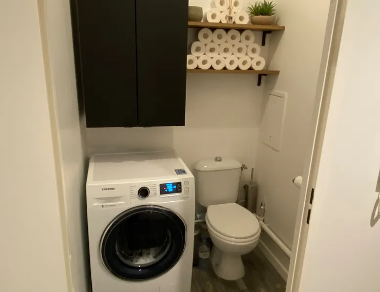 Apartment close to public transport (tram T2) 20 minutes from La Défense door to door. Located on the 3rd floor of a small building, it contains 1 bedroom with storage, open kitchen with dining room and living room. Bathroom & Separate Toilet. The furnished balcony gives you a beautiful view of La Défense and a view of the Eiffel Tower in the distance. Parking with designated space and all the necessary amenities for comfort. Centre de Bezons 5 min walk with all amenities.