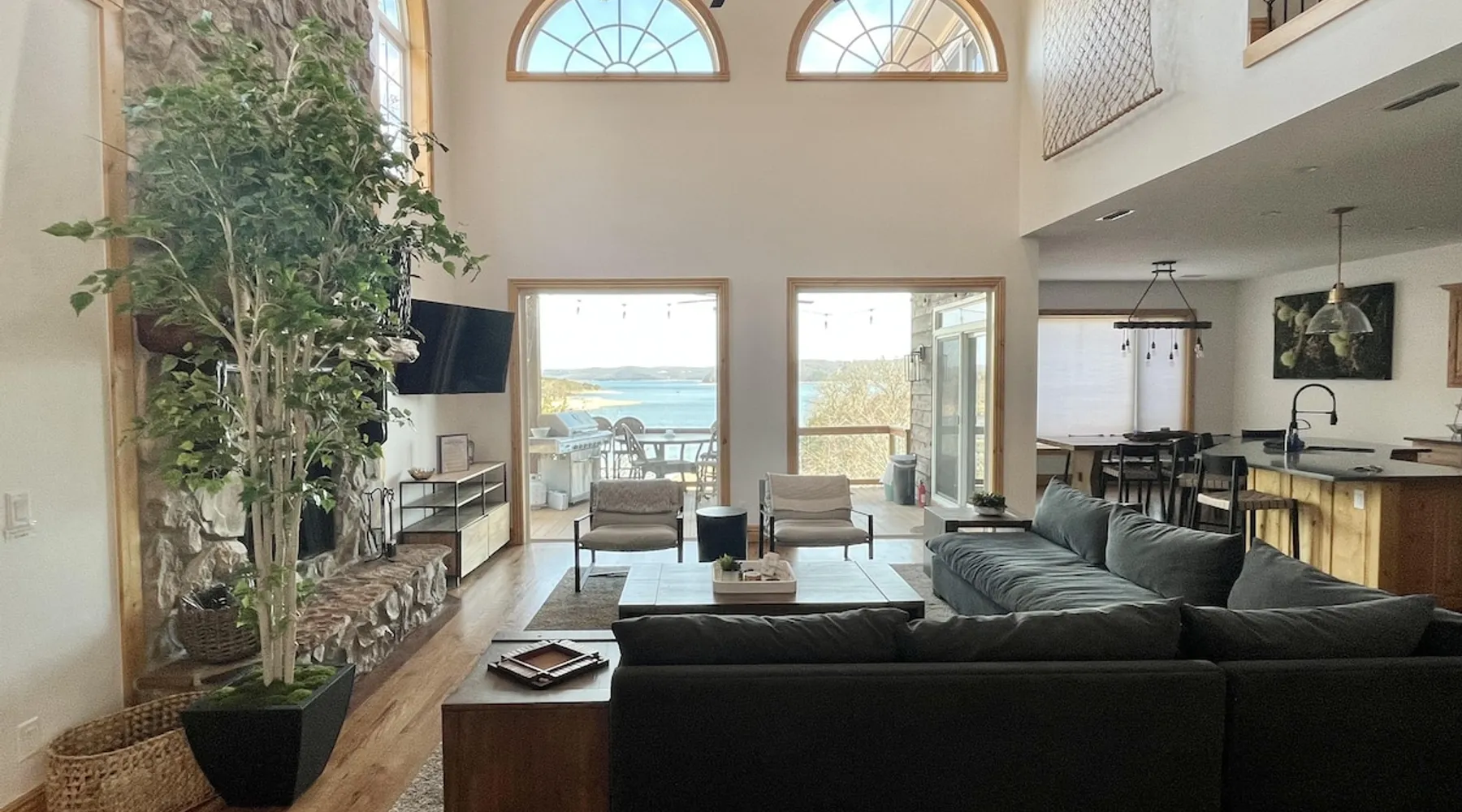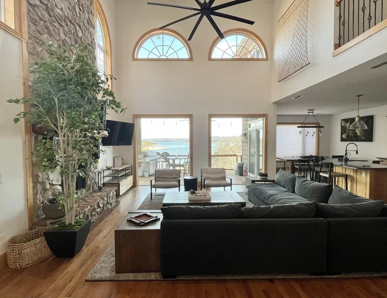 Amazing Lakefront 8 bedroom/5 full bath home. HUGE Lake View!!!! The space Amazing Lakefront Home with 8 bedrooms plus 5 full bathrooms. NEWLY remodeled and new decor! Vacation in style with plenty of room for everyone! Easy walk to the water with a nice shoreline. Easy living open floor plan, with Living Room on the main floor and Family Room downstairs. Large generously equipped kitchen area and nice dining area for large groups. Nice Newer Beds meant for comfort. Two Bedrooms are on the main level and 5 bedrooms are located downstairs. 2 King Bed 3 Queen beds 1 Double Bed 4 bunk bed sets Family style Fire Pit right behind the house. The Lost Bridge Village Recreation Center has a lakefront Community Swimming Pool open from Memorial Day till Labor Day. There is a charge of $5 per person per day. There is also a free playground for the kids, shuffleboard, basketball court, and a lakefront picnic area with grills. Lost Bridge Village sprawls over several areas around Beaver Lake including Whitney Mountain, which is the highest point over Beaver Lake. No fireworks allowed. The lake community is very quiet and mostly wooded with lots of wildlife and beautiful scenery. Most roads are paved. No hunting is allowed. There are full time and part time residents that appreciate you respecting the covenants and their privacy during your stay. Located minutes from Lost Bridge North Marina. Boat Launches are available at Lost Bridge North Park, Lost Bridge South Park, Off Black Oak Drive in Lost Bridge Village or at the Ventris Boat Launch. There are walking trails at Lost Bridge North Park at 12485 Marina Road in Garfield. Home is located about 30 minutes from (half-way between) Rogers and Eureka Springs. Both places offer an exceptional experience of great food options, entertainment, and shopping. Managed for the Homeowners by Beaver Lake Vacation Rentals, LLC., Garfield, AR. Other things to note Your rental comes with up to $1500 of damage insurance protection: Waivo™ Security Deposit Waiver If You have purchased a Waivo™ Security Deposit Waiver, then the following terms and conditions are now part of Your vacation rental property lease agreement. I. AGREEMENT A. On behalf of Beaver Lake Vacation Rentals, LLC, the party authorized to rent the vacation rental property and the owner of the vacation rental property, Waivo has assumed the responsibility for damages as outlined below and waives Your security deposit up to $1,500, the waiver limit purchased by You, the renter, for your stay at the vacation rental property. B. Waivo is hereby responsible for theft or damage to real or personal property of the vacation rental property as a result of Your acts or omissions. Waivo will pay the lesser of the cost of repairs or the cost to replace the property up to $1,500. This waiver does not negate your responsibilities as a renter for items outside of Waivo’s responsibilities. C. This is not an agreement to provide insurance. You are buying a waiver of the security deposit otherwise due as part of Your vacation rental property lease agreement. II. EXCLUSIONS A. This Security Deposit Waiver will not pay for damages or theft resulting from: 1. Acts of god 2. Prior damage, or normal wear and tear 3. Theft without a valid police report 4. Loss of use of the vacation rental property 5. Rodent, termite, bed bug, infestation, animal, or pet damage 6. Damage to a motorized vehicle 7. Fine art or collectibles B. This Waiver will not pay for damage or theft of property owned by You. C. This Waiver will not pay for costs associated with odor, debris removal, mechanical breakdown. III. CONDITIONS A. Waivo has the sole authority to determine the nature and extent of damages, necessary repairs, and eligibility for the waiver, and shall exercise that authority in a reasonable manner. B. Waivo reserves the right to determine if damage is eligible for reimbursement at actual cash value. C. This Waiver will pay for excessive cleaning, as a direct result of damage, over and above the normal cleaning fee. A stain or spillage is considered damage. D. This Waiver is only effective for a one-time single continuous stay for which You purchased the Waiver. It takes effect when You occupy the vacation rental property and terminates when You depart the same vacation rental property. E. This Waiver is only effective if any theft or damage is reported to Waivo by You, the property manager, the online travel agent or the owner of the vacation rental property within 3 days of Your departure from the vacation rental property. F. Waivo will not respond to damage or theft under $50 US dollars. G. If there is a dispute related to these terms, mediation is required before any party may file litigation. In the event of litigation, all parties waive the right to a jury trial. IV. DEFINITIONS You, or Your, is the renter of the vacation rental property and includes the renter’s spouse, children and any other person the renter invited on to the vacation rental property during your stay at the vacation rental property.