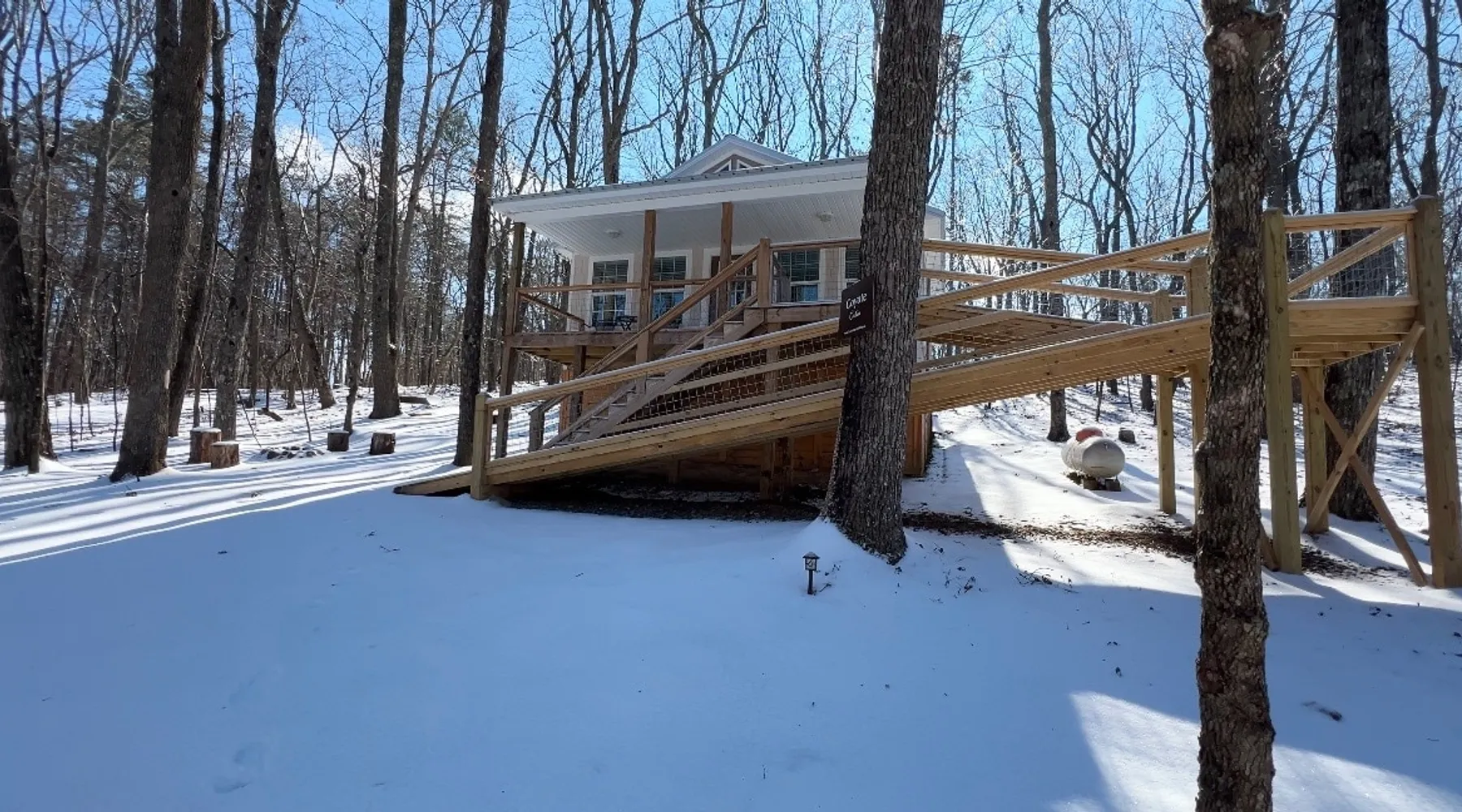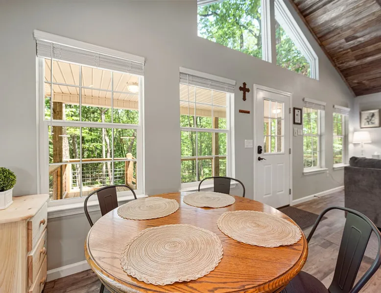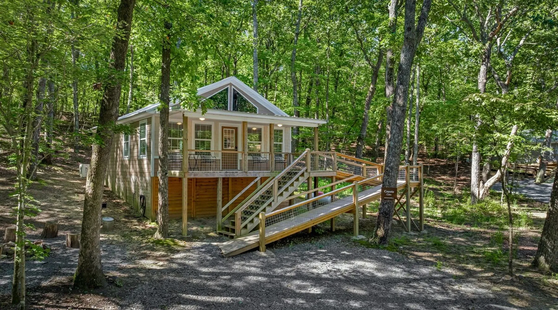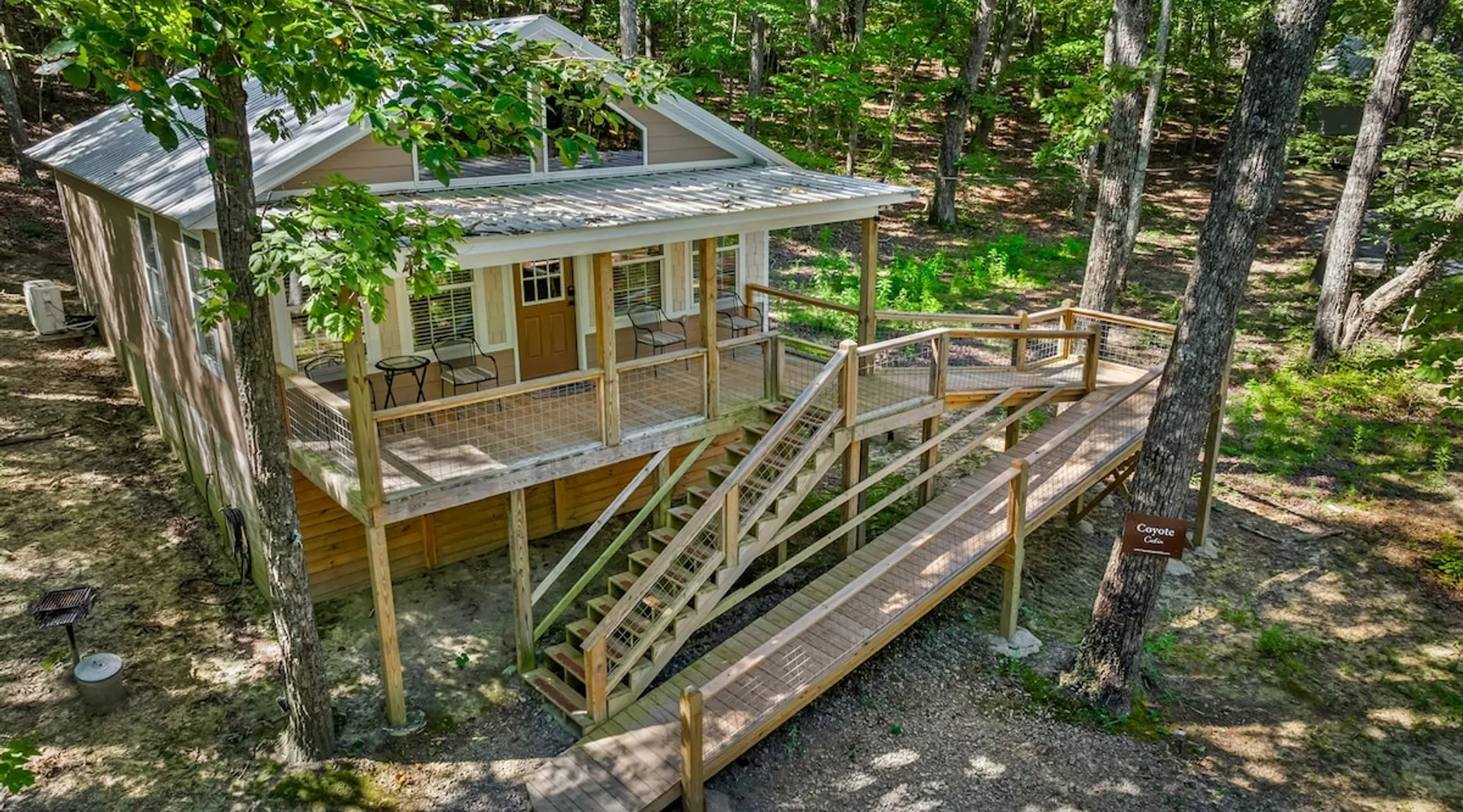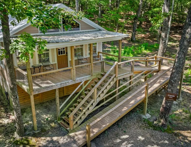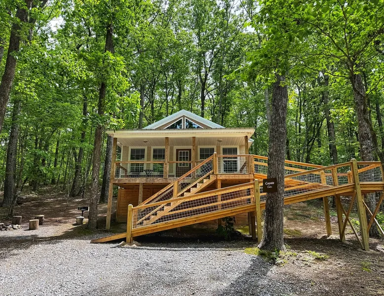 Coyote Cabin is situated on the 92-acre retreat property next to DeSoto State Park, known as Woodland Retreat at DeSoto. This retreat property offer guests a peaceful retreat and cool mountain getaway, deep in the woods and high atop Lookout Mountain in Alabama. Relax by the rock fire pit or on the front porch with a cup of coffee. Wildlife is spotted frequently on the property, and beautiful hiking trails are walking distance as the backyard of the cabin is part of DeSoto State Park! The space Coyote Cabin is situated on the 92-acre retreat property known as Woodland Retreat at DeSoto. As its name implies, this cabin and retreat property offer guests a peaceful retreat and cool mountain getaway, deep in the woods and high atop Lookout Mountain in Alabama. Explore waterfalls, parks, shops, and restaurants. Relax by the rock fire pit or on the front porch with a cup of coffee, and enjoy views through a canopy of trees. Wildlife is spotted frequently on the property, and beautiful hiking trails are walking distance as the backyard of the cabin is part of DeSoto State Park. Renew, refresh, and be restored! **THE RETREAT PROPERTY** Not long after you turn onto the private road that winds through the retreat property, you will see Coyote Cabin on your left, along with your own private parking area (2 cars max). Nearby, you will see The Otter Box Cabin (also listed). Beside your private parking area at Coyote Cabin, there are stairs leading up to the cabin's entrance as well as a beautiful walking ramp that provides a no-stairs entrance. From the front porch, you will appreciate the views from the covered porch area. This is a great place to enjoy a cup of coffee in the morning and take in the views :) Stepping inside the cabin, you will know your peaceful retreat has begun as you are surrounded by windows that reveal the most beautiful "treehouse views." From every window, you will see refreshing views through a canopy of trees. Be sure to look up and notice the beautiful wood ceiling that was built by the homeowners and upcycled from hurricane-weathered wood planks on Alabama's own coast in Baldwin County. Moving into the main living area, you will appreciate the sight of a large comfortable sofa and loveseat. There is plenty of room for your family to enjoy this space, and the sofa folds out to a queen bed when there are 6 guests. There is a gas log fireplace for your enjoyment, and for movie nights in, there is a 55" television in the living room with fast Wi-Fi for streaming your own favorite channel subscriptions. A DVD player is also available if you'd like to bring your favorite DVDs. Directly next to the living room area is the dining area and kitchen. There is seating for up to six with two additional chairs on the front porch. In the kitchen, there is a refrigerator, stove, microwave, dishwasher, coffee maker, toaster, blender, cooking pots, can opener, pans and utensils, dishes, drinking glasses, eating utensils, cooking spices, coffee mugs, and more. A primary bedroom boasts beautiful window views. There is a closet, and for the bed, there is a queen bed and with comfortable bedding for your rest and relaxation. The secondary bedroom also has a queen bed, and there is a sitting bench beside the bed that can be used to climb into the big, comfy bed as the thick mattress and box springs give it more height. A full bathroom includes a full tub/shower combo and sink vanity. Directly across the hall from the bathroom, there is a full laundry room with a washer and dryer available for your convenience, as well as a fold-out ironing board with iron. You will also find extra quilts, a portable fan and a sofa-bedding kit. Back outside and near the cabin, you will notice a rock fire pit designed with your retreat in mind. You are welcomed to use any small pieces of fallen wood that can safely fit inside the fire pit, and firewood bundles are sold at nearby stores. Please only burn firewood, as the homeowners and guests roast food over this fire pit. Extendable roasters are located in a kitchen drawer for your convenience, so be sure to bring ingredients for s'more memories. Near the fire pit is your Charcoal/wood-burning Campground-Style BBQ Grill with a metal bucket and lid to collect the grill ashes :) WHY GUESTS LOVE THIS PEACEFUL RETREAT PROPERTY: 1) There is a very natural environment with trees everywhere on the 92-acre retreat property! 2) It is located directly beside DeSoto State Park, which offers trails, a pool and ziplining! 3) There are beautiful views through tree canopies! 4) With very fast Wi-Fi, it makes a great place for extended stays and working remote! 5) A Family Adventure - Coyote Cabin was named by the homeowners' oldest daughter :) **EXPLORE THE AREA** Less than 500 feet from DeSoto State Park 3.7 miles - The Citadel Boulders Preserve 5.4 miles - DeSoto Falls 8.0 miles - The Hatter Cafe in Mentone 8.5 miles - VFW Fairgrounds 10.9 miles - Alabama Fan Club & Museum 11.1 miles - Little River Canyon National Preserve 28.8 miles - Cloudland Canyon State Park, GA 37.0 miles - Unclaimed Baggage in Scottsboro 43.0 miles - Rock City & Ruby Falls 50.5 miles - Chattanooga, TN 75.8 miles - Huntsville, AL 106 miles - Birmingham, AL 114 miles - Atlanta, GA You will want a car to see the sites and experience why Lookout Mountain in Alabama has so much to offer guests for a perfect vacation experience! You will be given access to a list of favorite attractions and restaurants! Waterfalls, national preserve, state parks, zip lining, hiking, picnicking, rappelling, horseback trail rides, canoeing, kayaking, rock climbing, wild animal preserve, golfing, swimming, museums, glass blowing, making pottery, skiing (seasonal), unique local dining, antique shopping, scenic drives, and MORE! So that you can experience life on the mountain like locals, we provide our guests with a list of all the attractions and restaurants! Chattanooga is only an hour away - Birmingham and Atlanta are less th