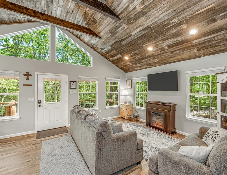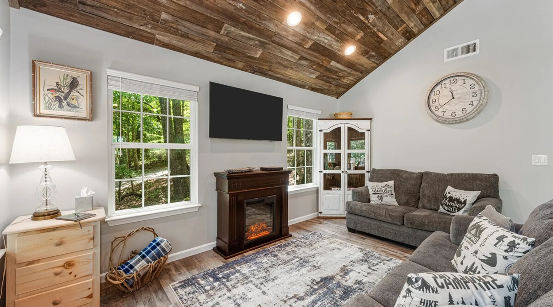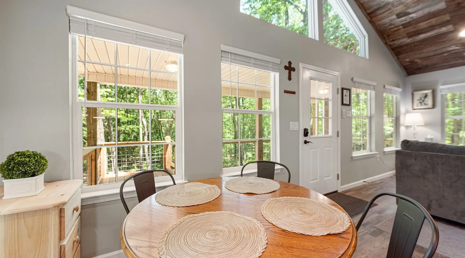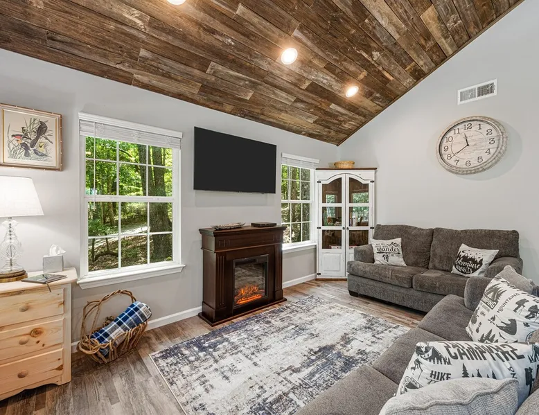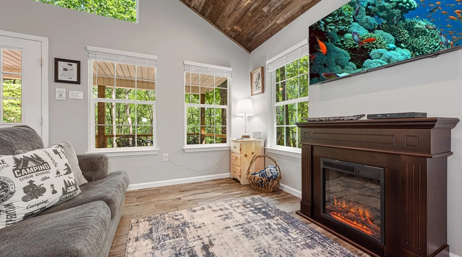 Coyote Cabin is situated on the 92-acre retreat property next to DeSoto State Park, known as Woodland Retreat at DeSoto. This retreat property offer guests a peaceful retreat and cool mountain getaway, deep in the woods and high atop Lookout Mountain in Alabama. Relax by the rock fire pit or on the front porch with a cup of coffee. Wildlife is spotted frequently on the property, and beautiful hiking trails are walking distance as the backyard of the cabin is part of DeSoto State Park! The space Coyote Cabin is situated on the 92-acre retreat property known as Woodland Retreat at DeSoto. As its name implies, this cabin and retreat property offer guests a peaceful retreat and cool mountain getaway, deep in the woods and high atop Lookout Mountain in Alabama. Explore waterfalls, parks, shops, and restaurants. Relax by the rock fire pit or on the front porch with a cup of coffee, and enjoy views through a canopy of trees. Wildlife is spotted frequently on the property, and beautiful hiking trails are walking distance as the backyard of the cabin is part of DeSoto State Park. Renew, refresh, and be restored! **THE RETREAT PROPERTY** Not long after you turn onto the private road that winds through the retreat property, you will see Coyote Cabin on your left, along with your own private parking area (2 cars max). Nearby, you will see The Otter Box Cabin (also listed). Beside your private parking area at Coyote Cabin, there are stairs leading up to the cabin's entrance as well as a beautiful walking ramp that provides a no-stairs entrance. From the front porch, you will appreciate the views from the covered porch area. This is a great place to enjoy a cup of coffee in the morning and take in the views :) Stepping inside the cabin, you will know your peaceful retreat has begun as you are surrounded by windows that reveal the most beautiful "treehouse views." From every window, you will see refreshing views through a canopy of trees. Be sure to look up and notice the beautiful wood ceiling that was built by the homeowners and upcycled from hurricane-weathered wood planks on Alabama's own coast in Baldwin County. Moving into the main living area, you will appreciate the sight of a large comfortable sofa and loveseat. There is plenty of room for your family to enjoy this space, and the sofa folds out to a queen bed when there are 6 guests. There is a gas log fireplace for your enjoyment, and for movie nights in, there is a 55" television in the living room with fast Wi-Fi for streaming your own favorite channel subscriptions. A DVD player is also available if you'd like to bring your favorite DVDs. Directly next to the living room area is the dining area and kitchen. There is seating for up to six with two additional chairs on the front porch. In the kitchen, there is a refrigerator, stove, microwave, dishwasher, coffee maker, toaster, blender, cooking pots, can opener, pans and utensils, dishes, drinking glasses, eating utensils, cooking spices, coffee mugs, and more. A primary bedroom boasts beautiful window views. There is a closet, and for the bed, there is a queen bed and with comfortable bedding for your rest and relaxation. The secondary bedroom also has a queen bed, and there is a sitting bench beside the bed that can be used to climb into the big, comfy bed as the thick mattress and box springs give it more height. A full bathroom includes a full tub/shower combo and sink vanity. Directly across the hall from the bathroom, there is a full laundry room with a washer and dryer available for your convenience, as well as a fold-out ironing board with iron. You will also find extra quilts, a portable fan and a sofa-bedding kit. Back outside and near the cabin, you will notice a rock fire pit designed with your retreat in mind. You are welcomed to use any small pieces of fallen wood that can safely fit inside the fire pit, and firewood bundles are sold at nearby stores. Please only burn firewood, as the homeowners and guests roast food over this fire pit. Extendable roasters are located in a kitchen drawer for your convenience, so be sure to bring ingredients for s'more memories. Near the fire pit is your Charcoal/wood-burning Campground-Style BBQ Grill with a metal bucket and lid to collect the grill ashes :) WHY GUESTS LOVE THIS PEACEFUL RETREAT PROPERTY: 1) There is a very natural environment with trees everywhere on the 92-acre retreat property! 2) It is located directly beside DeSoto State Park, which offers trails, a pool and ziplining! 3) There are beautiful views through tree canopies! 4) With very fast Wi-Fi, it makes a great place for extended stays and working remote! 5) A Family Adventure - Coyote Cabin was named by the homeowners' oldest daughter :) **EXPLORE THE AREA** Less than 500 feet from DeSoto State Park 3.7 miles - The Citadel Boulders Preserve 5.4 miles - DeSoto Falls 8.0 miles - The Hatter Cafe in Mentone 8.5 miles - VFW Fairgrounds 10.9 miles - Alabama Fan Club & Museum 11.1 miles - Little River Canyon National Preserve 28.8 miles - Cloudland Canyon State Park, GA 37.0 miles - Unclaimed Baggage in Scottsboro 43.0 miles - Rock City & Ruby Falls 50.5 miles - Chattanooga, TN 75.8 miles - Huntsville, AL 106 miles - Birmingham, AL 114 miles - Atlanta, GA You will want a car to see the sites and experience why Lookout Mountain in Alabama has so much to offer guests for a perfect vacation experience! You will be given access to a list of favorite attractions and restaurants! Waterfalls, national preserve, state parks, zip lining, hiking, picnicking, rappelling, horseback trail rides, canoeing, kayaking, rock climbing, wild animal preserve, golfing, swimming, museums, glass blowing, making pottery, skiing (seasonal), unique local dining, antique shopping, scenic drives, and MORE! So that you can experience life on the mountain like locals, we provide our guests with a list of all the attractions and restaurants! Chattanooga is only an hour away - Birmingham and Atlanta are less th
