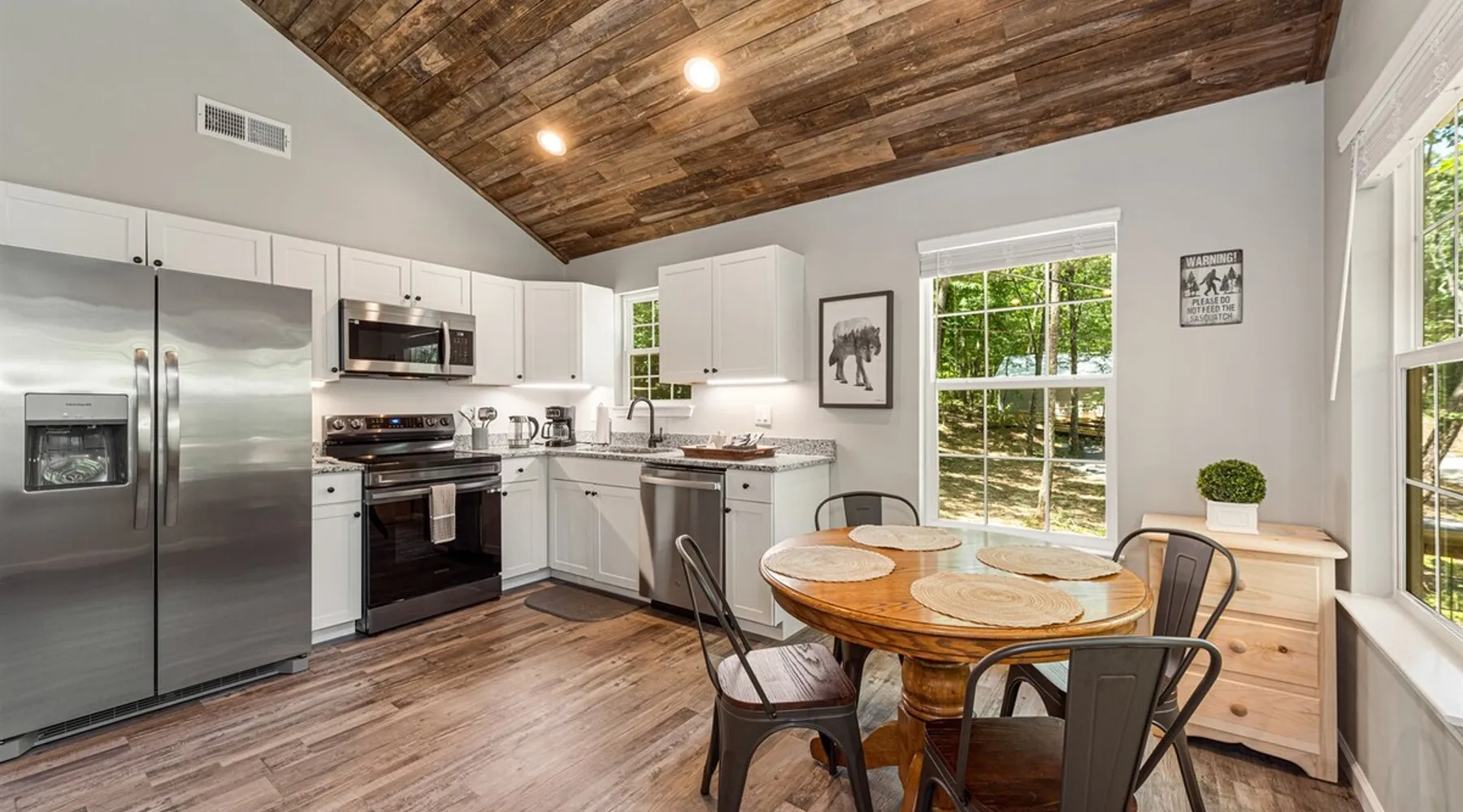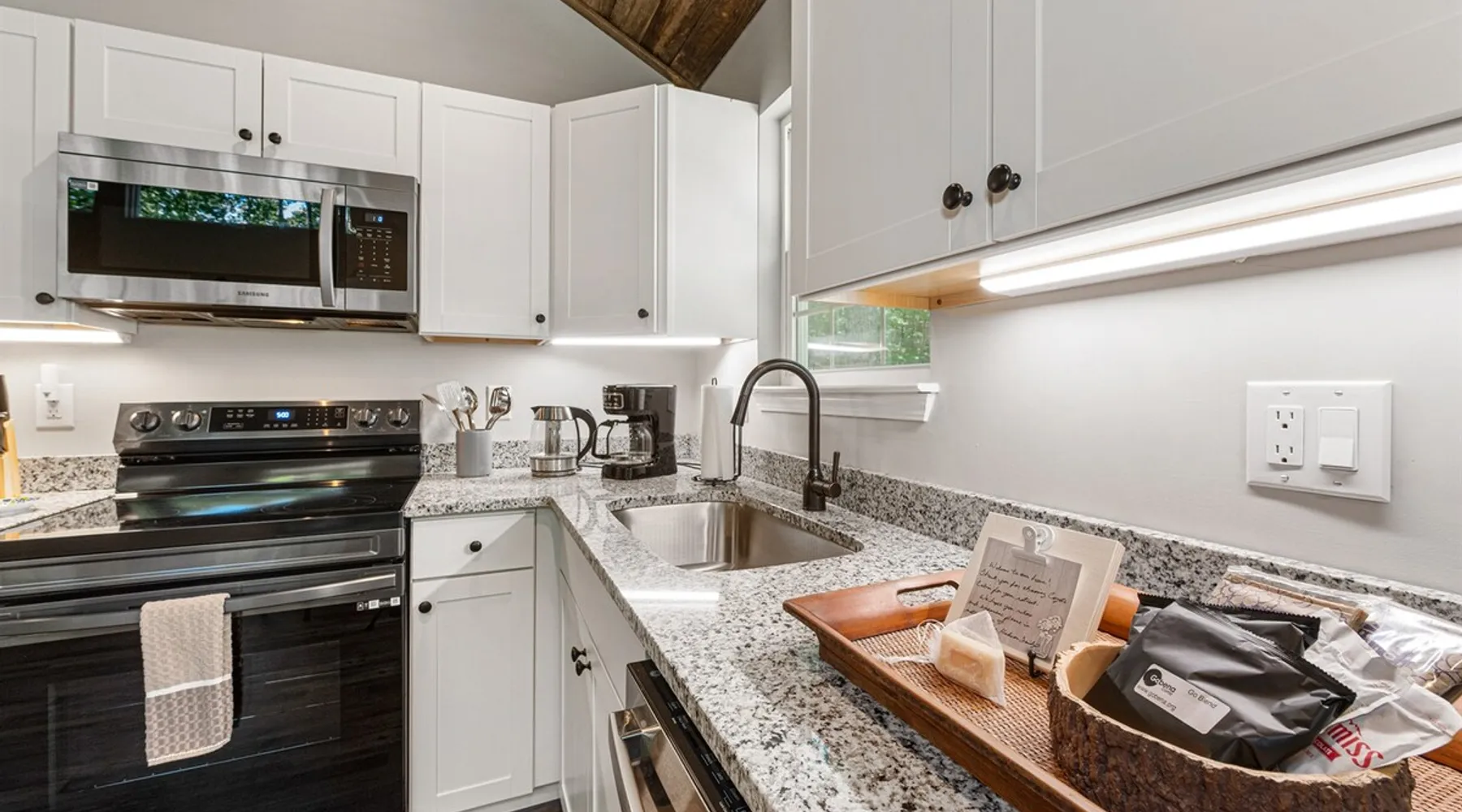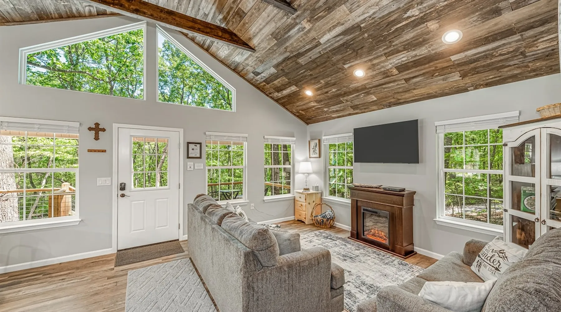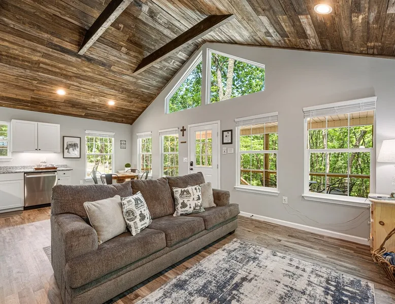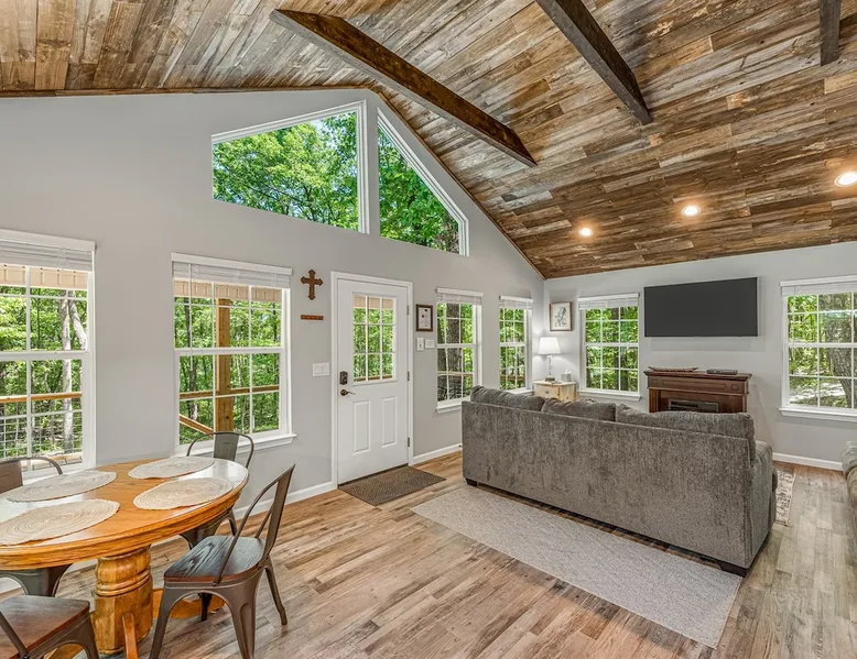 Coyote Cabin is situated on the 92-acre retreat property next to DeSoto State Park, known as Woodland Retreat at DeSoto. This retreat property offer guests a peaceful retreat and cool mountain getaway, deep in the woods and high atop Lookout Mountain in Alabama. Relax by the rock fire pit or on the front porch with a cup of coffee. Wildlife is spotted frequently on the property, and beautiful hiking trails are walking distance as the backyard of the cabin is part of DeSoto State Park! The space Coyote Cabin is situated on the 92-acre retreat property known as Woodland Retreat at DeSoto. As its name implies, this cabin and retreat property offer guests a peaceful retreat and cool mountain getaway, deep in the woods and high atop Lookout Mountain in Alabama. Explore waterfalls, parks, shops, and restaurants. Relax by the rock fire pit or on the front porch with a cup of coffee, and enjoy views through a canopy of trees. Wildlife is spotted frequently on the property, and beautiful hiking trails are walking distance as the backyard of the cabin is part of DeSoto State Park. Renew, refresh, and be restored! **THE RETREAT PROPERTY** Not long after you turn onto the private road that winds through the retreat property, you will see Coyote Cabin on your left, along with your own private parking area (2 cars max). Nearby, you will see The Otter Box Cabin (also listed). Beside your private parking area at Coyote Cabin, there are stairs leading up to the cabin's entrance as well as a beautiful walking ramp that provides a no-stairs entrance. From the front porch, you will appreciate the views from the covered porch area. This is a great place to enjoy a cup of coffee in the morning and take in the views :) Stepping inside the cabin, you will know your peaceful retreat has begun as you are surrounded by windows that reveal the most beautiful "treehouse views." From every window, you will see refreshing views through a canopy of trees. Be sure to look up and notice the beautiful wood ceiling that was built by the homeowners and upcycled from hurricane-weathered wood planks on Alabama's own coast in Baldwin County. Moving into the main living area, you will appreciate the sight of a large comfortable sofa and loveseat. There is plenty of room for your family to enjoy this space, and the sofa folds out to a queen bed when there are 6 guests. There is a gas log fireplace for your enjoyment, and for movie nights in, there is a 55" television in the living room with fast Wi-Fi for streaming your own favorite channel subscriptions. A DVD player is also available if you'd like to bring your favorite DVDs. Directly next to the living room area is the dining area and kitchen. There is seating for up to six with two additional chairs on the front porch. In the kitchen, there is a refrigerator, stove, microwave, dishwasher, coffee maker, toaster, blender, cooking pots, can opener, pans and utensils, dishes, drinking glasses, eating utensils, cooking spices, coffee mugs, and more. A primary bedroom boasts beautiful window views. There is a closet, and for the bed, there is a queen bed and with comfortable bedding for your rest and relaxation. The secondary bedroom also has a queen bed, and there is a sitting bench beside the bed that can be used to climb into the big, comfy bed as the thick mattress and box springs give it more height. A full bathroom includes a full tub/shower combo and sink vanity. Directly across the hall from the bathroom, there is a full laundry room with a washer and dryer available for your convenience, as well as a fold-out ironing board with iron. You will also find extra quilts, a portable fan and a sofa-bedding kit. Back outside and near the cabin, you will notice a rock fire pit designed with your retreat in mind. You are welcomed to use any small pieces of fallen wood that can safely fit inside the fire pit, and firewood bundles are sold at nearby stores. Please only burn firewood, as the homeowners and guests roast food over this fire pit. Extendable roasters are located in a kitchen drawer for your convenience, so be sure to bring ingredients for s'more memories. Near the fire pit is your Charcoal/wood-burning Campground-Style BBQ Grill with a metal bucket and lid to collect the grill ashes :) WHY GUESTS LOVE THIS PEACEFUL RETREAT PROPERTY: 1) There is a very natural environment with trees everywhere on the 92-acre retreat property! 2) It is located directly beside DeSoto State Park, which offers trails, a pool and ziplining! 3) There are beautiful views through tree canopies! 4) With very fast Wi-Fi, it makes a great place for extended stays and working remote! 5) A Family Adventure - Coyote Cabin was named by the homeowners' oldest daughter :) **EXPLORE THE AREA** Less than 500 feet from DeSoto State Park 3.7 miles - The Citadel Boulders Preserve 5.4 miles - DeSoto Falls 8.0 miles - The Hatter Cafe in Mentone 8.5 miles - VFW Fairgrounds 10.9 miles - Alabama Fan Club & Museum 11.1 miles - Little River Canyon National Preserve 28.8 miles - Cloudland Canyon State Park, GA 37.0 miles - Unclaimed Baggage in Scottsboro 43.0 miles - Rock City & Ruby Falls 50.5 miles - Chattanooga, TN 75.8 miles - Huntsville, AL 106 miles - Birmingham, AL 114 miles - Atlanta, GA You will want a car to see the sites and experience why Lookout Mountain in Alabama has so much to offer guests for a perfect vacation experience! You will be given access to a list of favorite attractions and restaurants! Waterfalls, national preserve, state parks, zip lining, hiking, picnicking, rappelling, horseback trail rides, canoeing, kayaking, rock climbing, wild animal preserve, golfing, swimming, museums, glass blowing, making pottery, skiing (seasonal), unique local dining, antique shopping, scenic drives, and MORE! So that you can experience life on the mountain like locals, we provide our guests with a list of all the attractions and restaurants! Chattanooga is only an hour away - Birmingham and Atlanta are less th