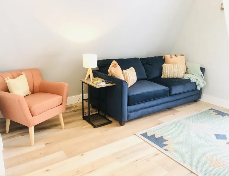 Escape to this unique, modern mountain getaway located only minutes from Old Rag, White Oak Canyon, trout fishing, horseback riding, wineries, and breweries. Our new A-frame cabin offers a cozy space with all the amenities, a private patio with a stone firepit, and mountain views. We are conveniently located only 1.5 hours from Northern VA, 1 hour from Charlottesville, and 2 hours from Richmond. Are your desired dates already booked? Check out our other listing, Bald Eagle Cabin! The space Our secluded 10 acre property does include another A-frame cabin and a private residence. This cabin is a chic space with a fully equipped kitchen, spacious bathroom, living room, and upstairs bedroom loft. The loft contains an open bedroom with a queen size bed and dresser. To access the loft, there is a steep staircase. In addition to the loft bedroom, we offer a queen pull out sofa bed located on the first level of the cabin. Unwind and relax in our cozy cabin with unlimited WIFI, a smart TV, and board games. Need a snack or coffee? We offer that too! Then, head outside to your private outdoor patio which includes a stone firepit, 4 Adirondack chairs, firewood, fire starters, marshmallow skewers, and a propane grill. Enjoy the fresh mountain air while hanging with friends making s’mores! We hope you enjoy this fun, mountain getaway experience at The Cabins at Old Rag!