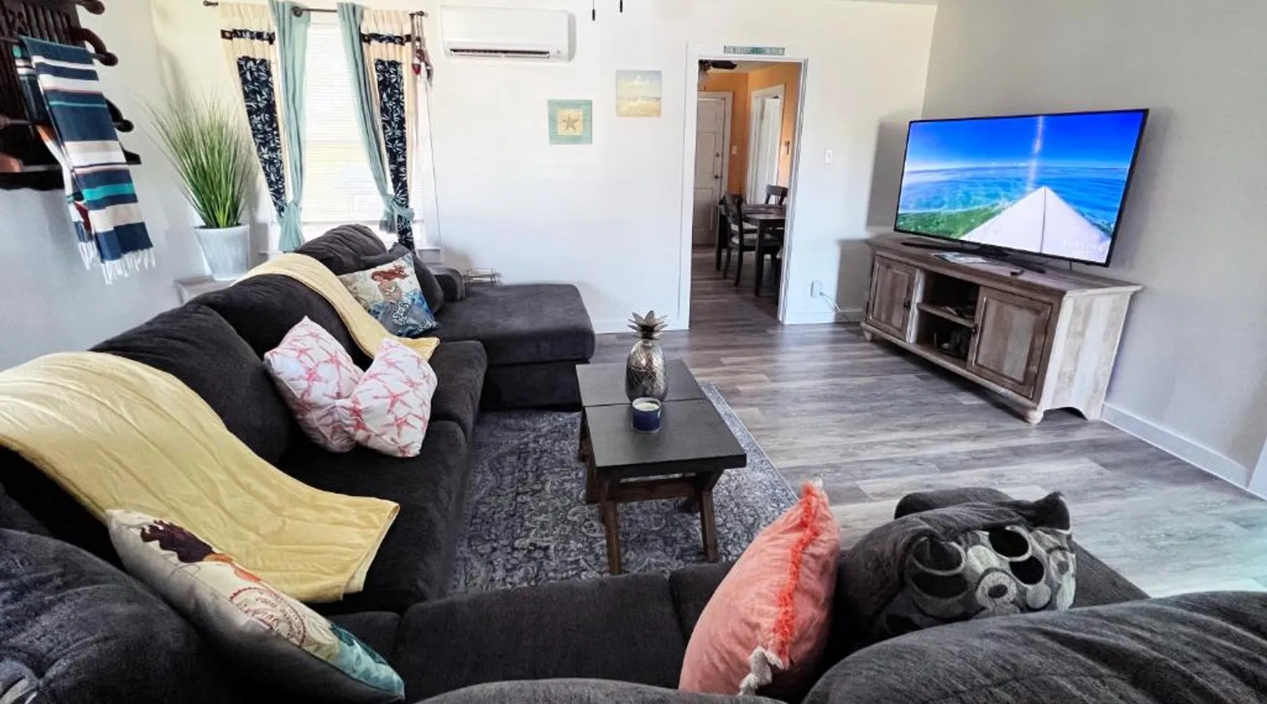 Offering a bar, La Buena Pescada - Aransas Pass, TX Coastal Cottage! features accommodations in Aransas Pass. The air-conditioned accommodation is 22 miles from American Bank Center Convention Center, and guests can benefit from private parking available on site and free Wifi. Featuring a patio and garden views, the spacious vacation home includes 3 bedrooms, a living room, flat-screen TV, an equipped kitchen, and 2 bathrooms with a bath and a shower. Guests can enjoy a meal on an outdoor dining area while overlooking the quiet street views. The vacation home offers bed linen, towels, and laundry service. Guests can make the most of the warm weather with the property's barbecue facilities. Guests at the vacation home can enjoy fishing nearby, or make the most of the garden. The nearest airport is Corpus Christi International Airport, 29 miles from La Buena Pescada - Aransas Pass, TX Coastal Cottage!. Featuring a private entrance, this air-conditioned holiday home consists of 1 living room, 3 separate bedrooms and 2 bathrooms with a bath and a shower. Guests will find a stovetop, a refrigerator, kitchenware and an oven in the well-equipped kitchen. The holiday home also provides guests with a barbecue. The spacious holiday home provides a flat-screen TV with streaming services, a washing machine, a tea and coffee maker, a seating area as well as garden views. The unit offers 6 beds.
