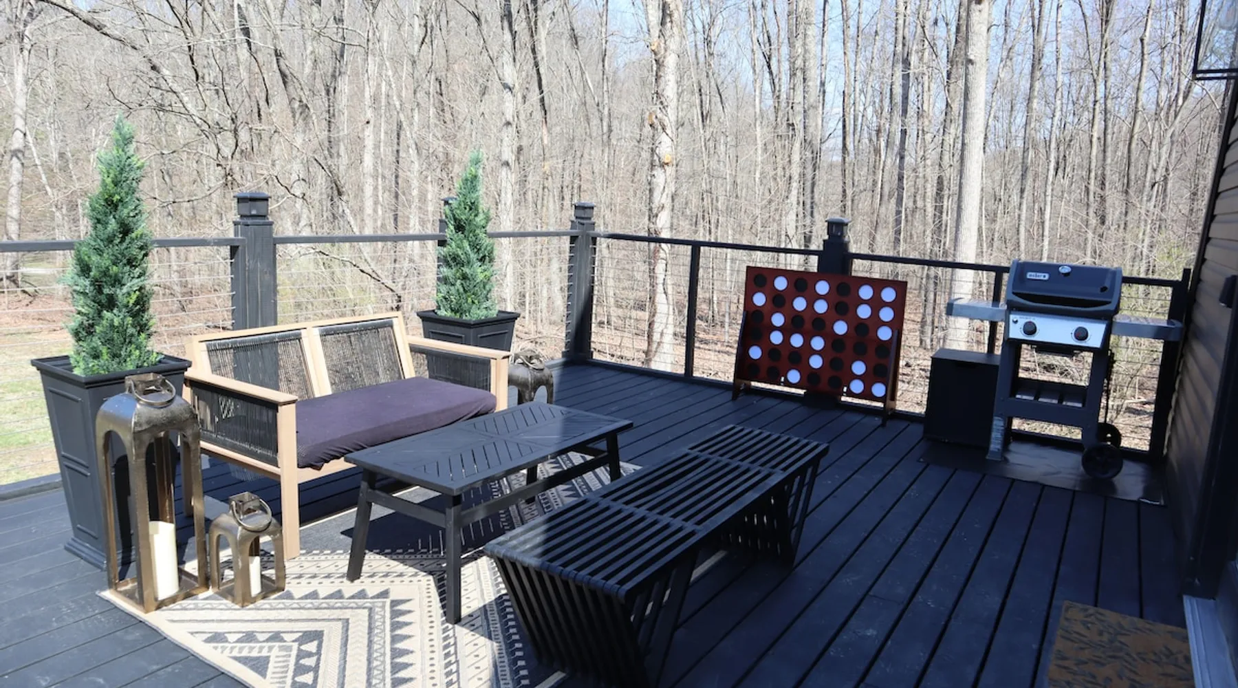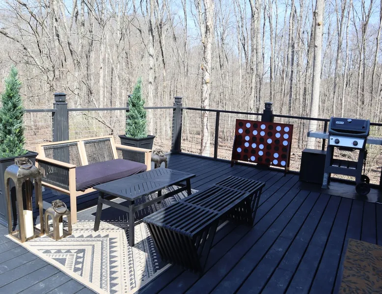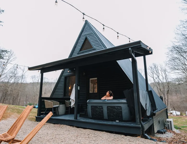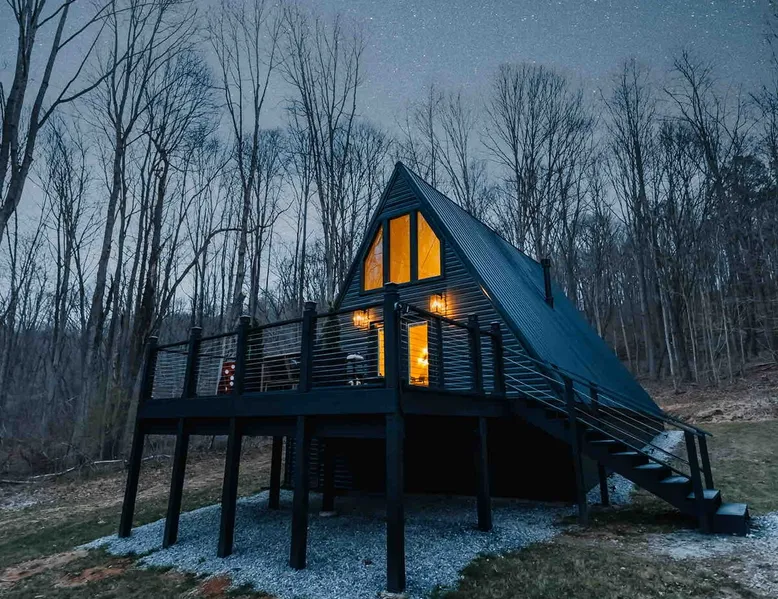 Welcome to our 4-person A-frame cabin, a peaceful woodland escape in Hocking Hills. This architectural gem features an open-plan living space with a fireplace, full kitchen, and high windows that invite nature in. The cabin offers modern amenities like WiFi, a smart TV, and a well-equipped kitchen. Outside, an expansive deck, private hot tub, grill, and fire pit await, making it perfect for outdoor relaxation. The space The space boasts a bedroom with a queen-sized bed, a full bathroom, and a loft featuring another queen bed, accommodating up to 4 guests comfortably. Guest access Access Code will be provided to you prior to check in, so you can self check in. Other things to note • Consider packing insect repellent for added comfort. • In winter months, a 4x4 vehicle is recommended. • Due to our septic system, only human waste and toilet paper should be flushed. Avoid 'flushable' wipes, baby wipes, and feminine products. • We suggest bringing bottled water for consumption since our supply originates from a well. • Instead of a full-sized fridge, there are two mini-fridges in this rental. You can see pictures of them in the listing for reference. • Due to the black metal roof, the upstairs loft can get warm. While the mini-split AC unit provides adequate cooling, we also have fans available for additional comfort.