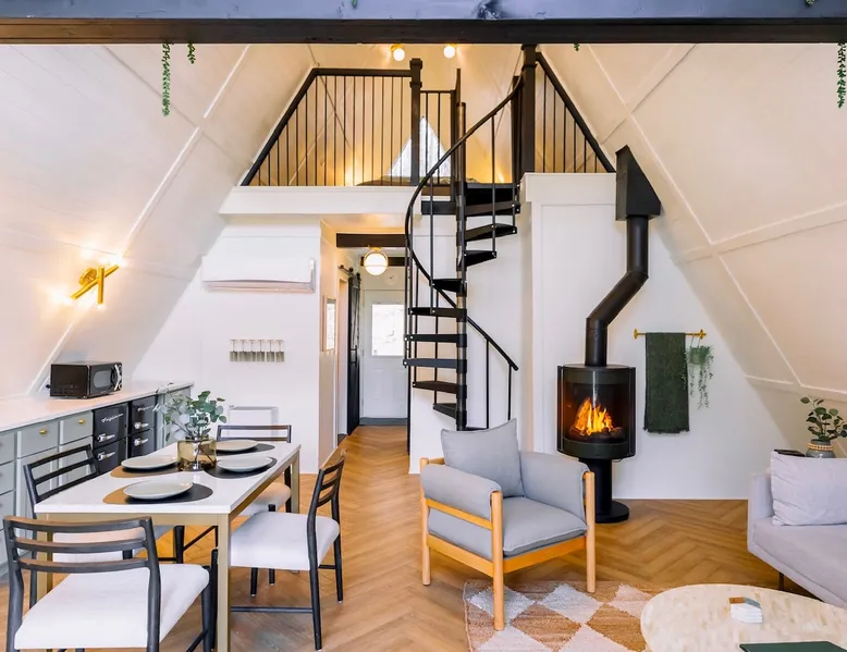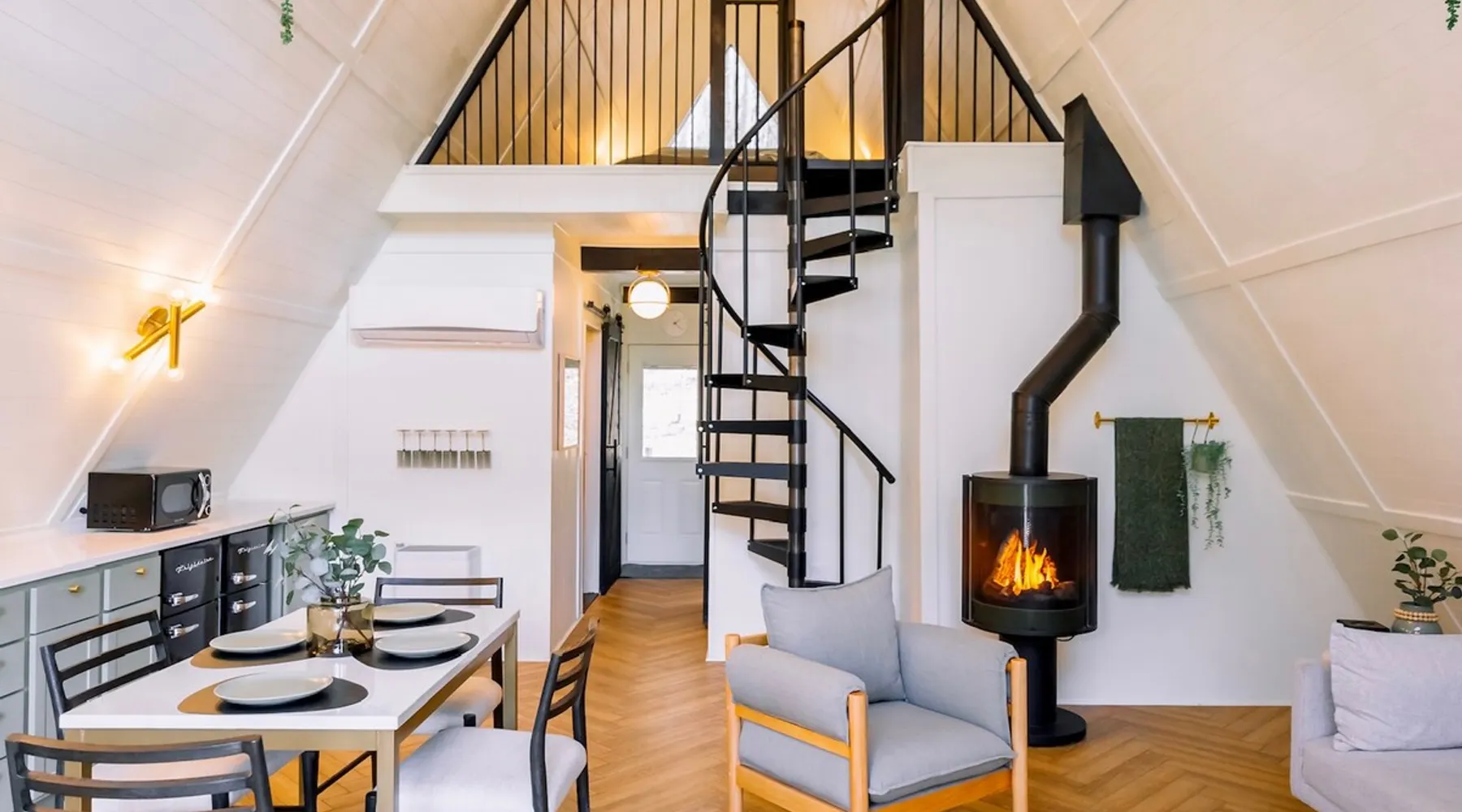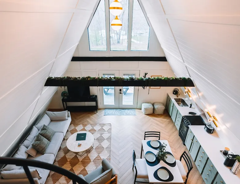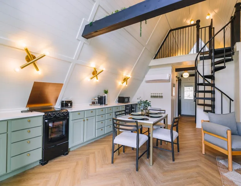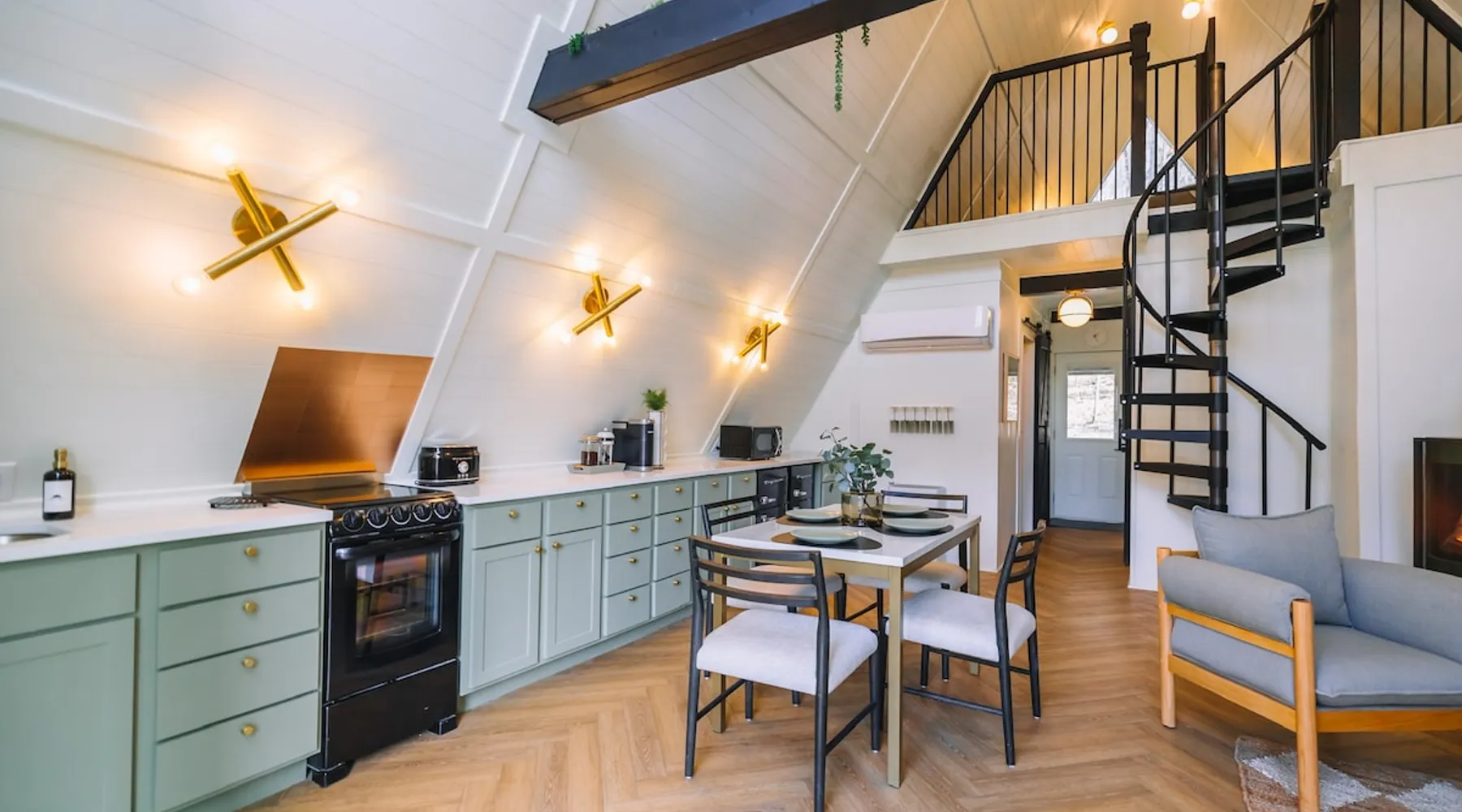 Welcome to our 4-person A-frame cabin, a peaceful woodland escape in Hocking Hills. This architectural gem features an open-plan living space with a fireplace, full kitchen, and high windows that invite nature in. The cabin offers modern amenities like WiFi, a smart TV, and a well-equipped kitchen. Outside, an expansive deck, private hot tub, grill, and fire pit await, making it perfect for outdoor relaxation. The space The space boasts a bedroom with a queen-sized bed, a full bathroom, and a loft featuring another queen bed, accommodating up to 4 guests comfortably. Guest access Access Code will be provided to you prior to check in, so you can self check in. Other things to note • Consider packing insect repellent for added comfort. • In winter months, a 4x4 vehicle is recommended. • Due to our septic system, only human waste and toilet paper should be flushed. Avoid 'flushable' wipes, baby wipes, and feminine products. • We suggest bringing bottled water for consumption since our supply originates from a well. • Instead of a full-sized fridge, there are two mini-fridges in this rental. You can see pictures of them in the listing for reference. • Due to the black metal roof, the upstairs loft can get warm. While the mini-split AC unit provides adequate cooling, we also have fans available for additional comfort.