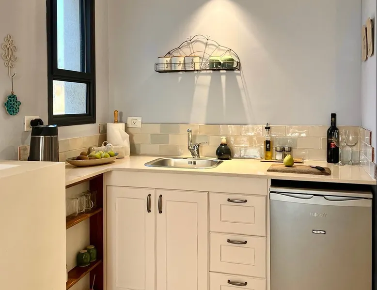 Elegant one bedroom apartment, ideal for couples looking for a piece of heaven on the hilltop. Sumptuous comfort welcomes you to a forgotten corner of the country. With views to the end of the Mediterranean horizon, you will not want to leave either of the two patio porches. Five minutes from the Keshet cave, 20 minutes from the beach, and 30 minutes to Nahariya, this crow's nest offers you the choice of peace and quiet, or active adventure! There is also a pool in the summer months to enjoy.