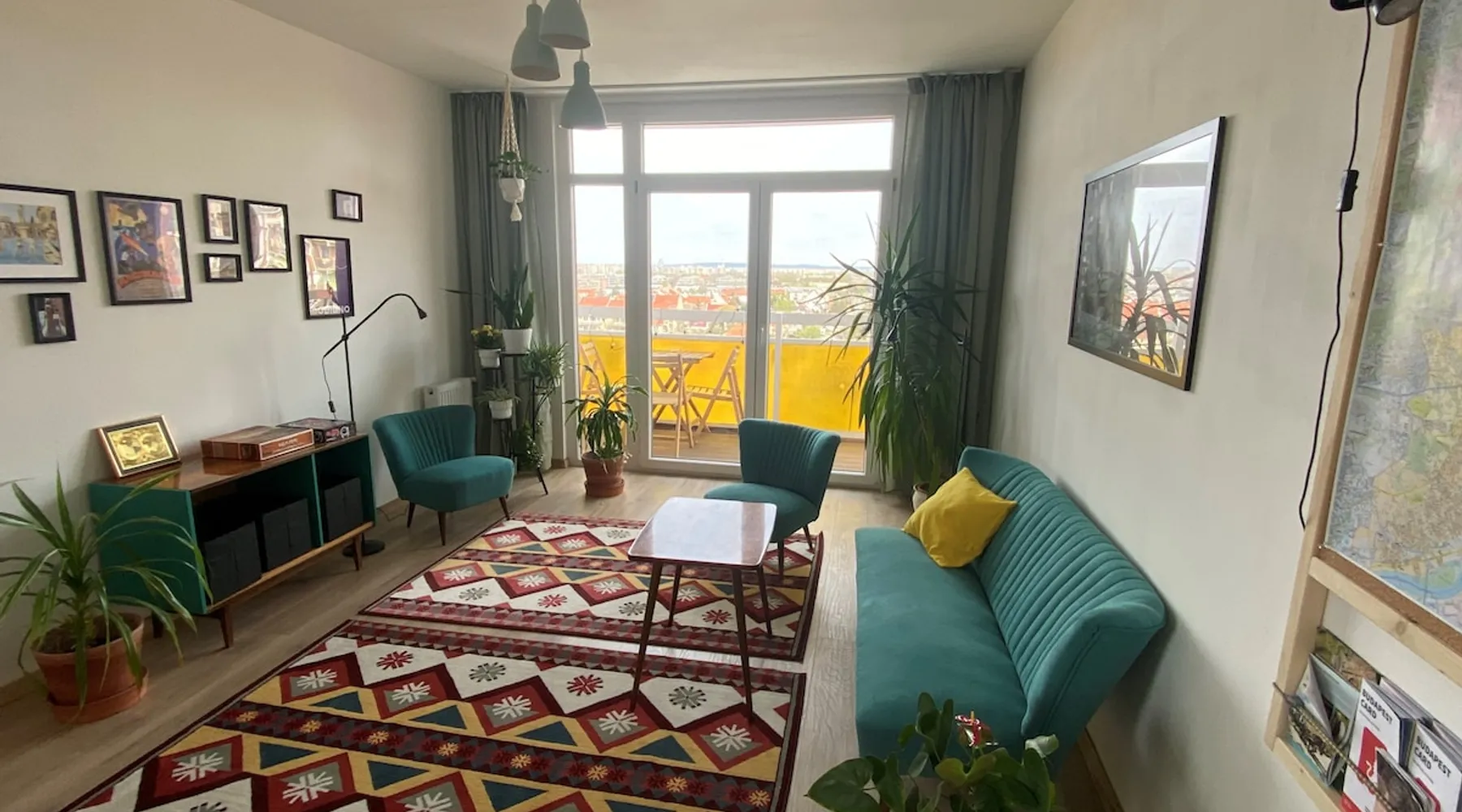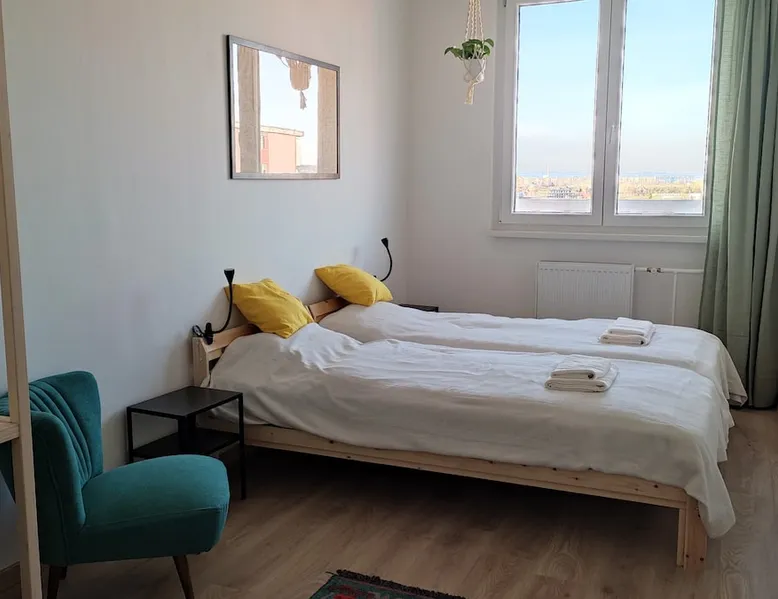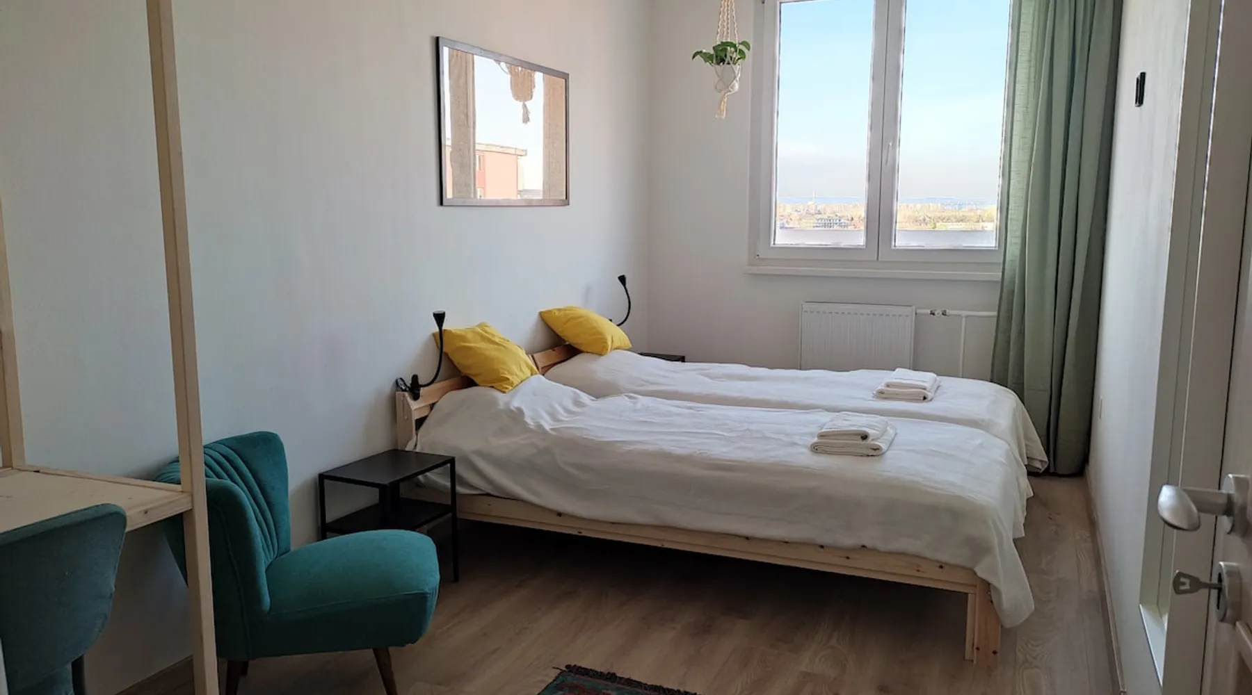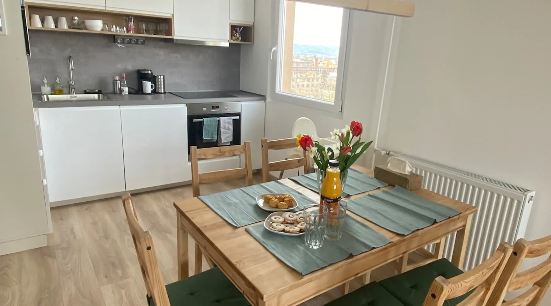 Family-friendly, fully equipped, newly renovated, sunny apartment is located in a green neighborhood. The apartment is on the 9th floor with a balcony, it offers a spectalular view over the city, and a great interior with modern and stylish decor. The location in the free parking area makes it ideal for those traveling by car. It is not far from Széchenyi Bath, Heroes' Square, City Garden, Paskál Thermal Bath and Puskás Stadion. The apartment can accommodate 4+2 people + child in a crib. The space The central space of the apartment is offered by the large living room with American kitchen and dining room. Here we have created a space for conversation, relaxation and planning destinations. The apartment has two separate bedrooms with 2-2 double beds (one double, one fold-out on request). The available baby cot can be placed in one of the rooms or in the living room. There are also 2 fold-out guest beds available, which can be set up mainly in the living room. At the end of the hallway is the bathroom with compact shower and access to the washing machine and fridge. Guest access The entire apartment is at the guests' use, except for the lockable small service room next to the front door. Extra linen and towels in the laundry room are available by prior arrangement only. Other things to note For guests with small children, cots, changing facilities, baby bath, toys are available - please let us know in advance! Registration details MA23059334
