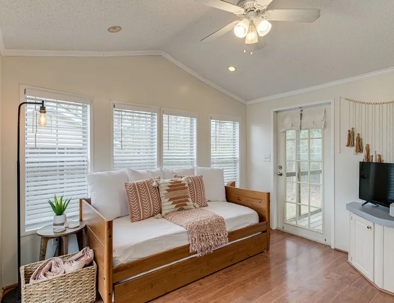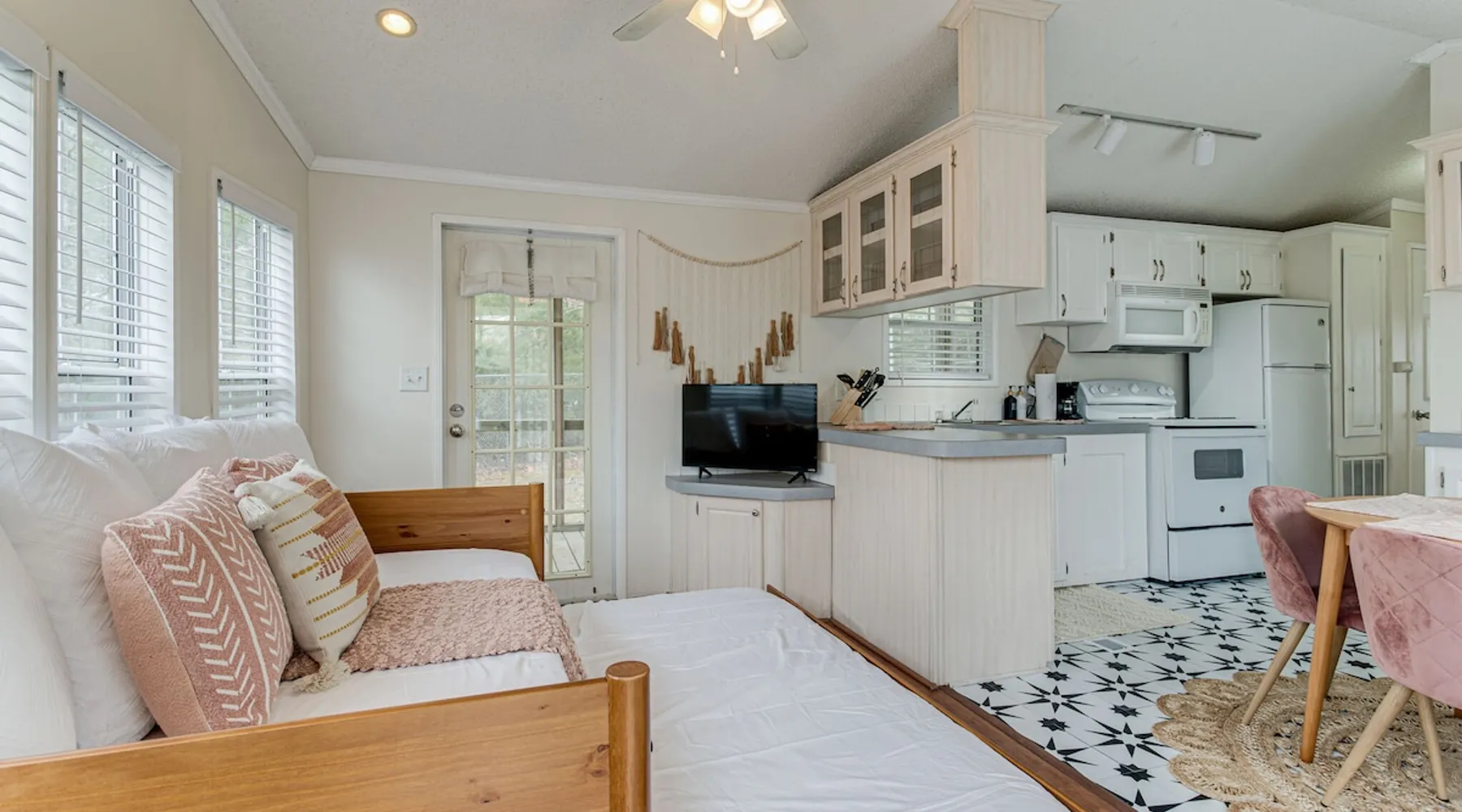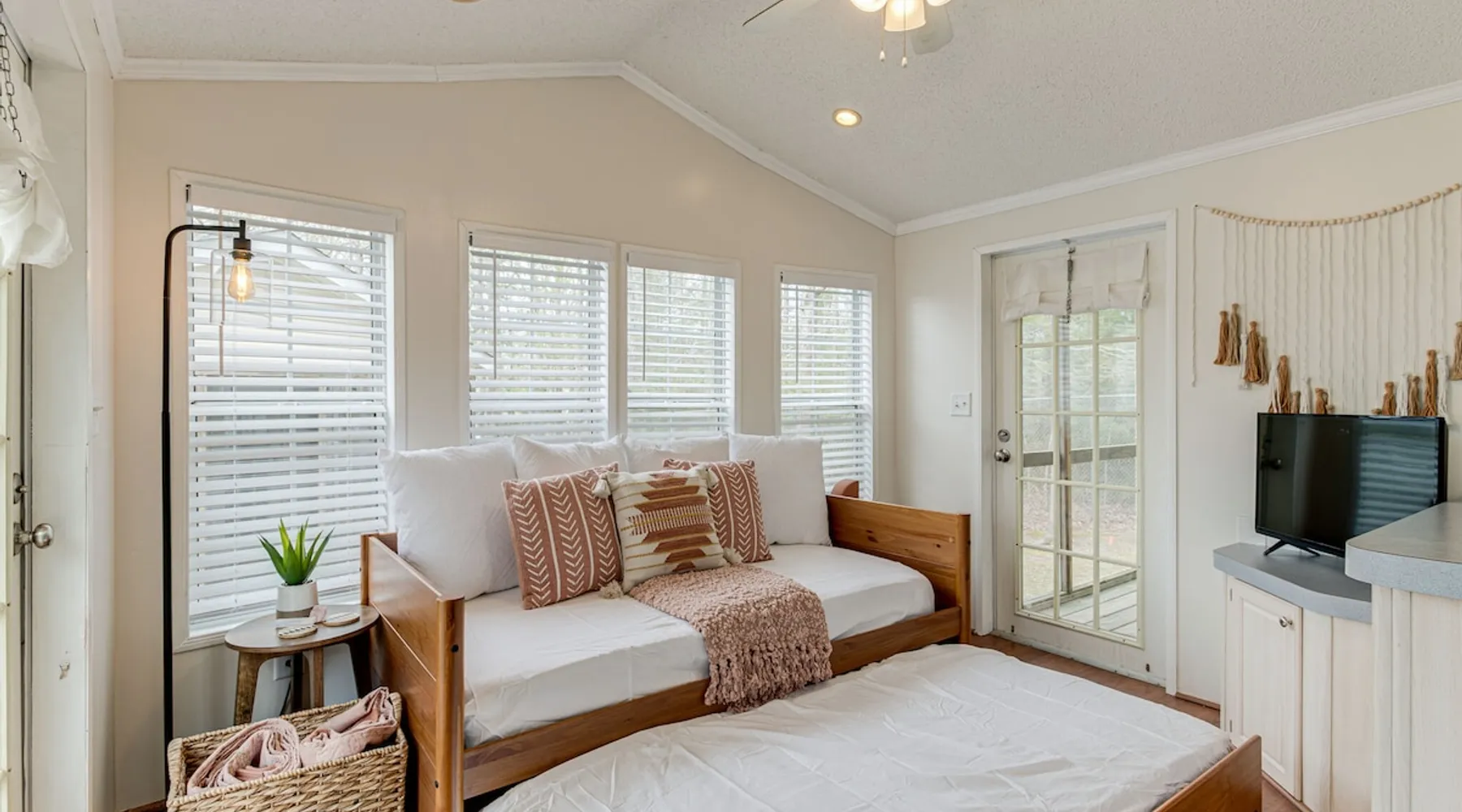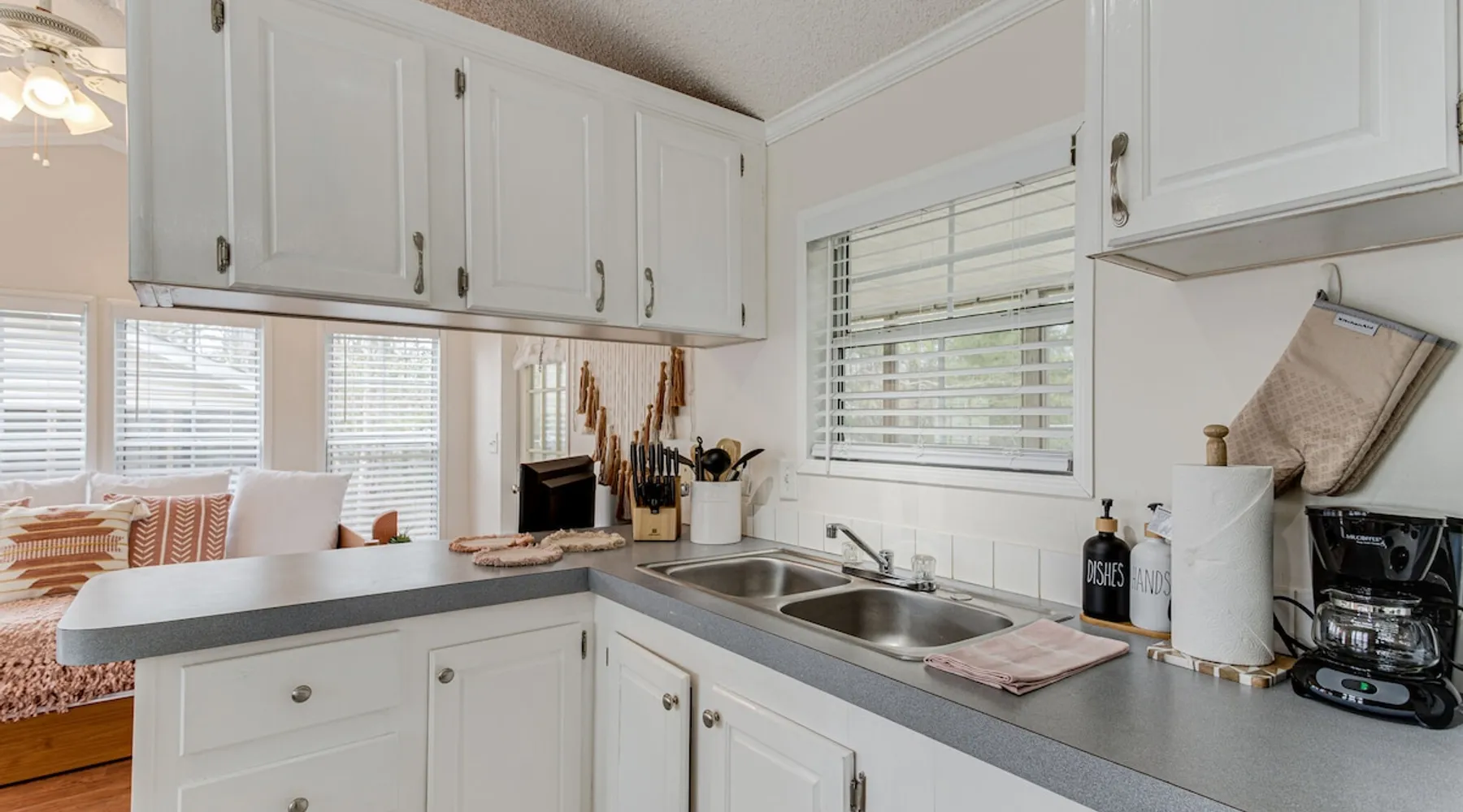 Stop on by the Cottages at Bear Hollow in Monteagle TN for a perfect getaway! With serene surroundings, you can unplug and unwind in nature. Next to Bear Hollow grounds sits the South Cumberland State Park Visitor Center and the Meadow Lake Trail district. • HIKING: Several hiking trails just 10-15 mins away! • SEWANEE: 15 min drive away from Sewanee: The University of the South • THE CAVERNS: 15 min away from the concert venue, The Caverns! (Ask about our recommended shuttle service!!) The space We want you to enjoy your stay just as much as you do. Help us ensure you are booking the right fit for your needs by reading this listing fully before booking. Whether you're seeking a peaceful getaway, a base for outdoor adventures, or a spot to crash after a show at the caverns, this charming space provides the perfect blend of comfort, charm, and convenience. The cottage is just steps away from the South Cumberland State Park Visitor's Center where you'll find some great hiking resources and insights. Some hikes to explore: • Meadow Trail Hike - a short walk great for kids, just next door to the park • Grundy Lakes - 5 miles away, 10 min by car • Fiery Gizzard (lots of trails here) - 5 miles away, 12 min by car Our Winnie Cottage has one bedroom with a queen bed. The space comfortably sleeps two people, however, two more could easily sleep in the living room with a daybed we've added to the space. The daybed is great for lounging during the day, but can easily be converted to sleeping arrangements for two. The unit has a kitchen equipped with basic kitchen supplies including a full size refrigerator, electric stove, microwave, and ample storage space. This cottage has one bathroom. Please keep in mind, this cottage is considered a tiny home, so the bathroom is on the smaller side. The bathroom includes a vanity space, toilet, standing shower, and several cupboards for storage. Complimentary Wifi! (25mbps) Our favorite feature of the Winnie Cottage is spacious screened in porch! Perfect for outdoor dining, or simply enjoying the fresh air. All guests are welcome to walk and enjoy the beautiful and peaceful grounds on the Bear Hollow property. *There is no front desk onsite. Our local team is available 9 am to 5 pm and by phone for any emergency 24/7.* *Looking to host an event? Please ask about our beautiful event center!* thebarnatbearhollow dot com! Guest access You'll have access to the entire unit & property grounds. The Winnie Cottage shares a driveway with the neighboring home. Please park in the space closest to the cottage you have booked. Please reach out if you require additional parking. Other things to note 🐻 Once booked, you will be receiving a text from our team from our 615 number with a rental agreement to sign. You will get a text with your access instructions the day before your arrival once this is signed. 🐻 Please note this cottage is located on a space with other homes, cabins and an event center. We ask that you please be mindful of your neighbors. 🐻 Regarding the unit: While the max occupancy is 4 people, remember the space is SMALL. Towels & linen are provided (including bedding for the daybed). Travel sized toiletries, a hairdryer, and handheld steamer are provided. The well-equipped kitchen features a stove, refrigerator, and dishwasher. A drip coffee maker and basic kitchenware is also provided. Guests are responsible to provide any additional amenities desired such as additional toilet paper. 🐻 We do allow approved dogs with the collection of a pet fee. Please inquire for pet fees. Failure to have pets approved can lead to larger fees and possible eviction. 🐻 We are currently in the process of redesigning and refreshing the different units and grounds, so you may notice vendors and delivery vehicles during the day. 🐻 Check in is at 4 pm // Check out is at 10 am. If you're looking to check in early or check out late, we suggest booking the night before or after your arrival. Otherwise, to be considerate to other guests, we cannot guarantee that an early check in or late check out request will be accommodated. Feel free to arrive anytime after 4 pm. 🐻 Please be mindful of your surroundings! Bear Hollow shares a fence with a state park. It is great to be so close, but remember there could be critters in the area as we are located beside their home.