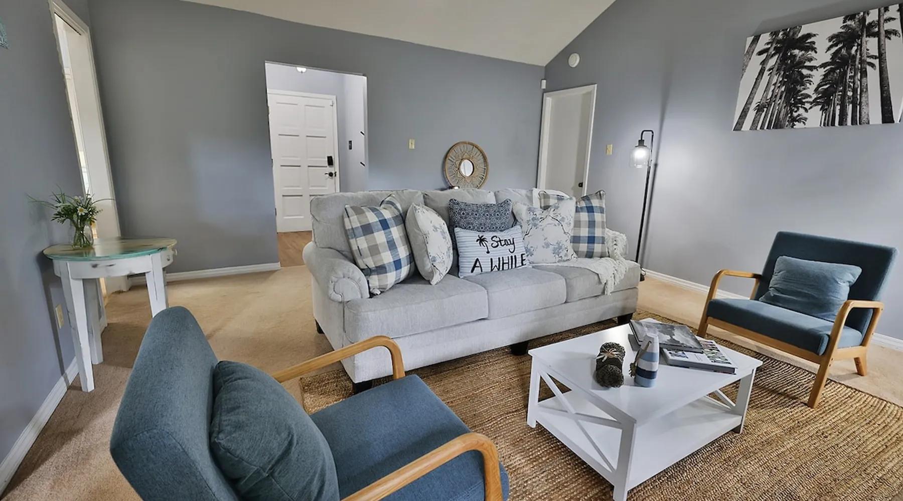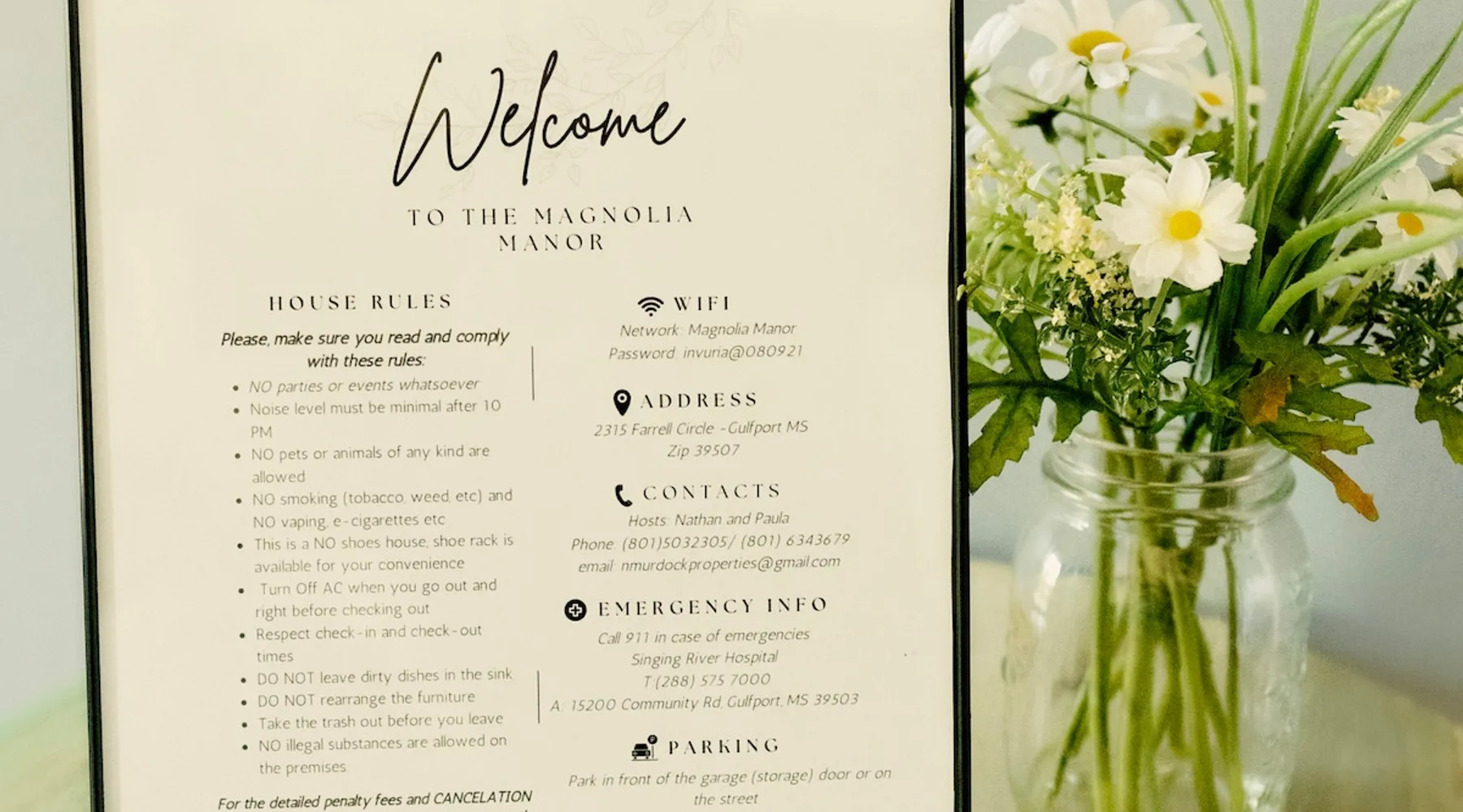 Your private king bed suite awaits in The Magnolia Manor home! When you book, your stay includes: • A Memory foam Queen bed mattress • Prive attached bathroom • Fast Wi-Fi • Stocked kitchen with cooking & eating utensils • Custom mural created by a local artist • Smart TVs • BBQ grill • Shampoo, body wash, & conditioners • Indoor and outdoor dining areas • Short drives from the beach, casinos, event centers, & shopping Book today and look forward to a truly relaxing getaway stay.