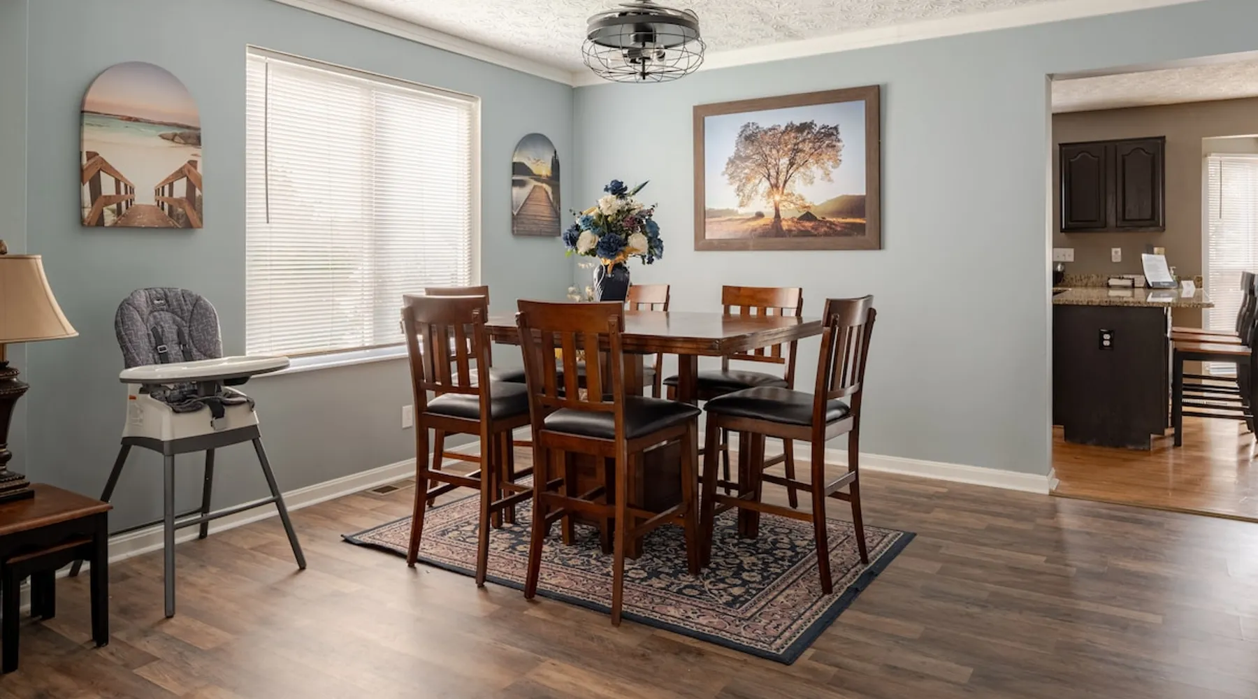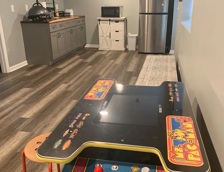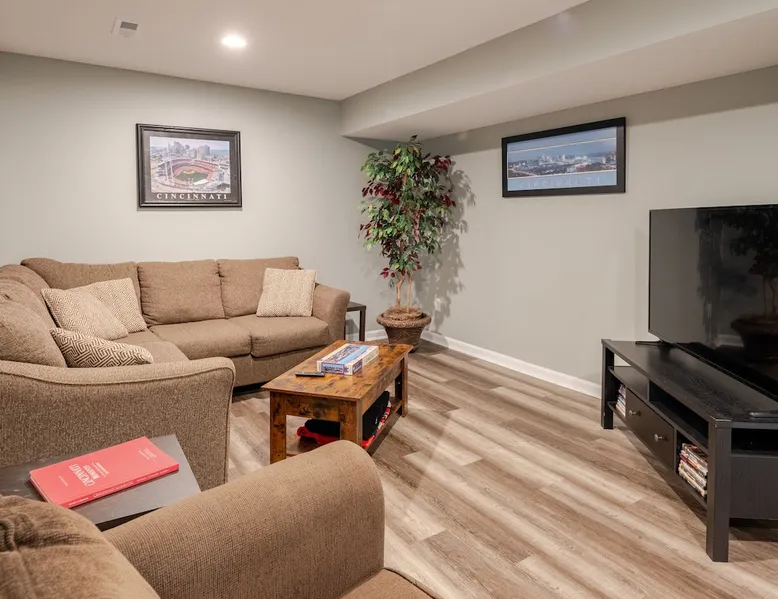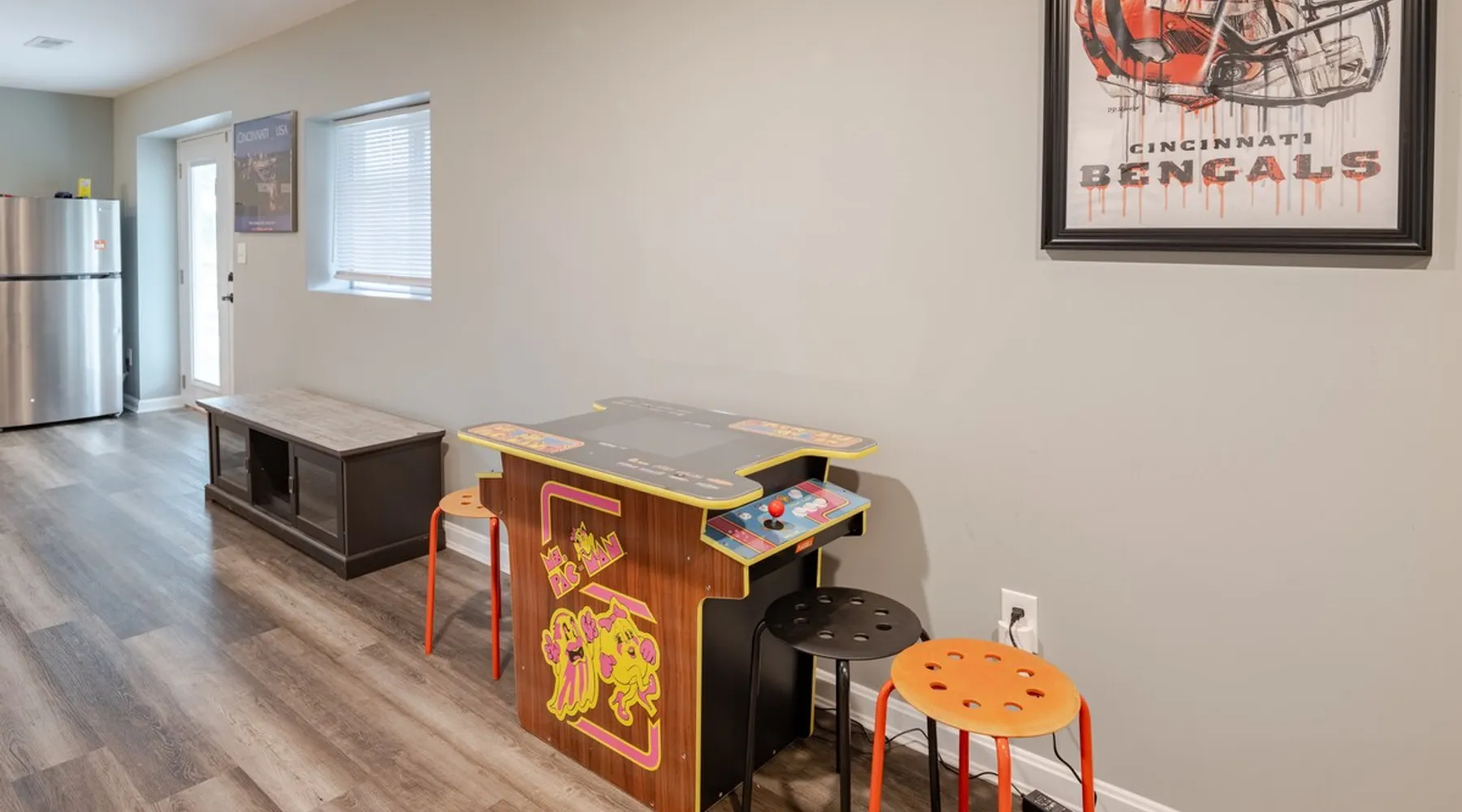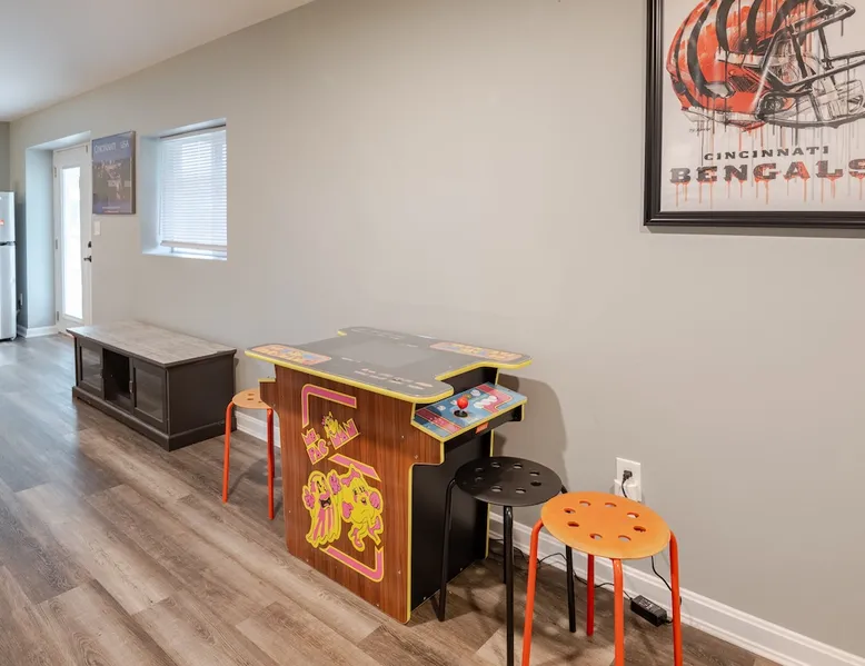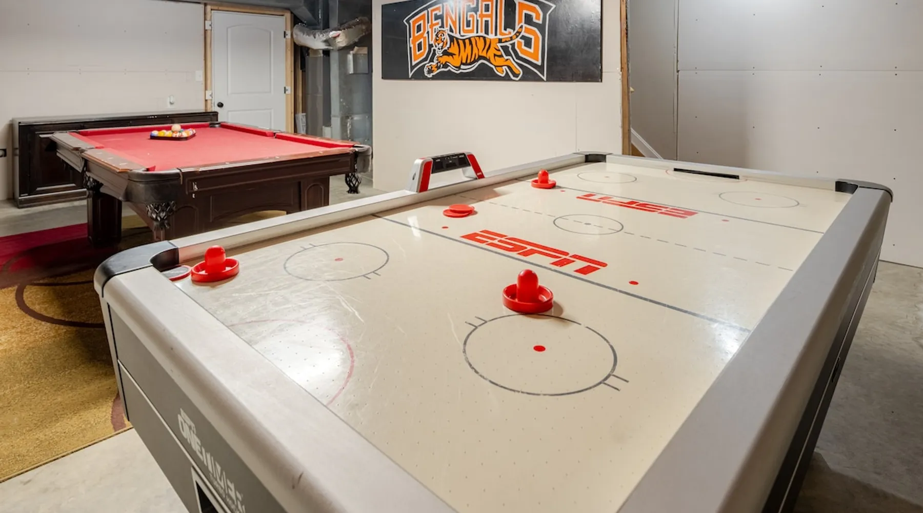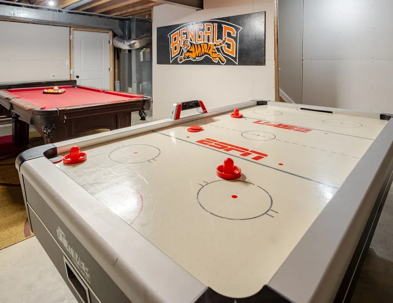 Spacious 3800 sq ft vacation home w/5 bedrooms each w/smart tv. 7 beds-2 king, 3 queen, & 2 twin, 3 1/2 bath. 5 miles Turfway Park/Florence Freedom/World of Golf/St Elizabeth Hospital, Boone County Distillery, Planet Fitness, about 10 miles Cincinnati/Kentucky Airport/Big Bone Lick, 15 miles Cincy Bengals/Reds/FC Cincy/Heritage Bank arena/Newport Aquarium/Creation Museum, Findlay Market/Hard Rock Casino, 20-25 miles Riverbend/Xavier/Univ Cinti, Zoo, Ark Encounter/Jungle Jims, 70 miles Keeneland. The space Bring the whole family and friends to this great home with lots of room for sleeping, entertaining, or fun. Two dining areas each seat 6 people. Two 1st floor living areas with sofas/recliners. Air hockey, pool table, Pac-Man, mini ping pong, cornhole, outdoor patio with fire pit. Deck with dining table, chairs, and propane grill. Separate living area in basement with tv, kitchenette, sofa, full bathroom, and games. Office area with desk, monitor, and Wi-Fi. Guest access Access home thru electronic front door keypad. Your group has the entire home, fenced in backyard, and front porch to enjoy. Other things to note Booking person must list accurate number of guests on reservation and advise host if the number increases before the stay. There is a fee for over 6 guests added automatically when making the reservation.