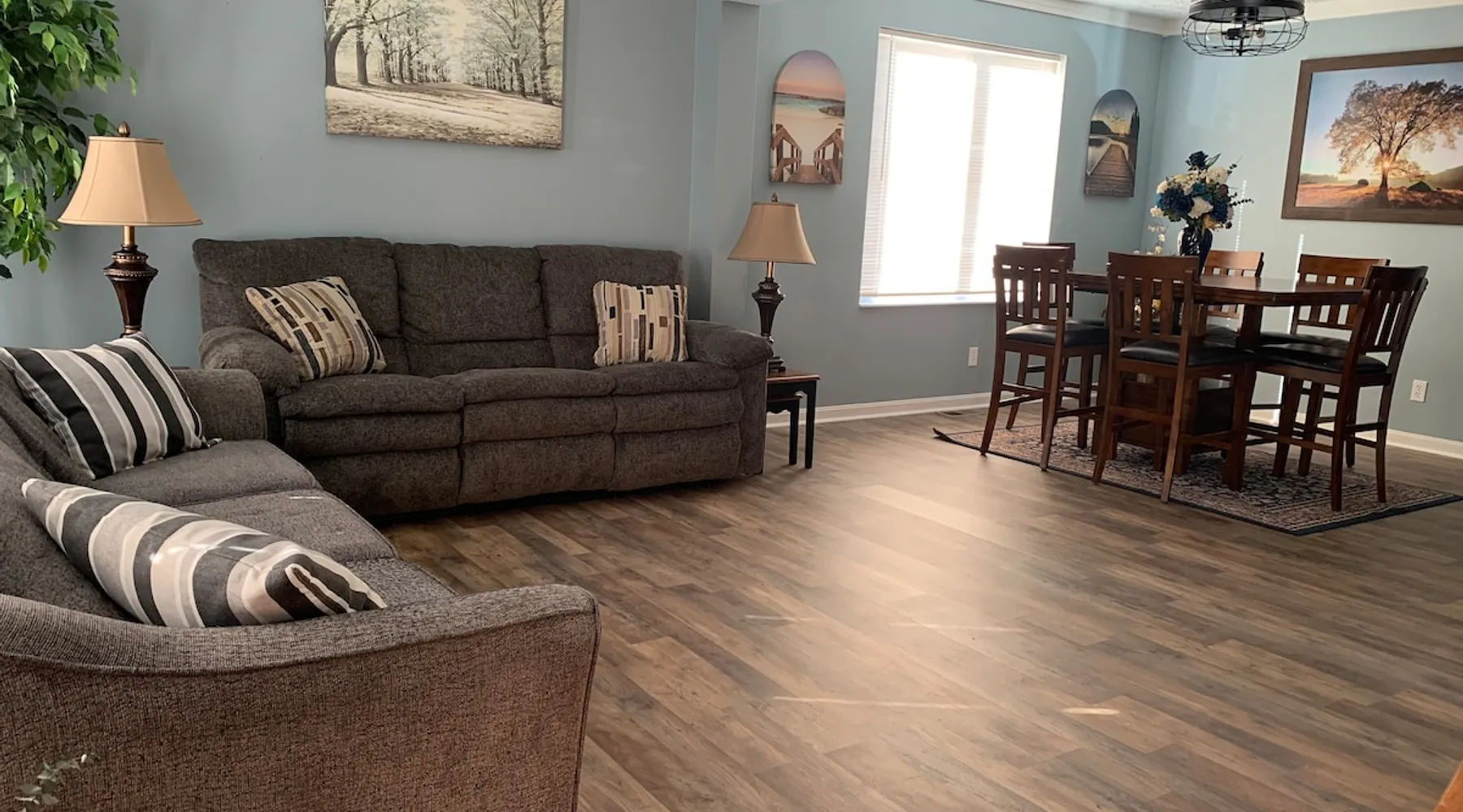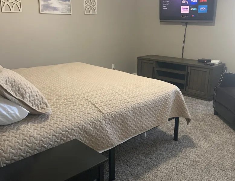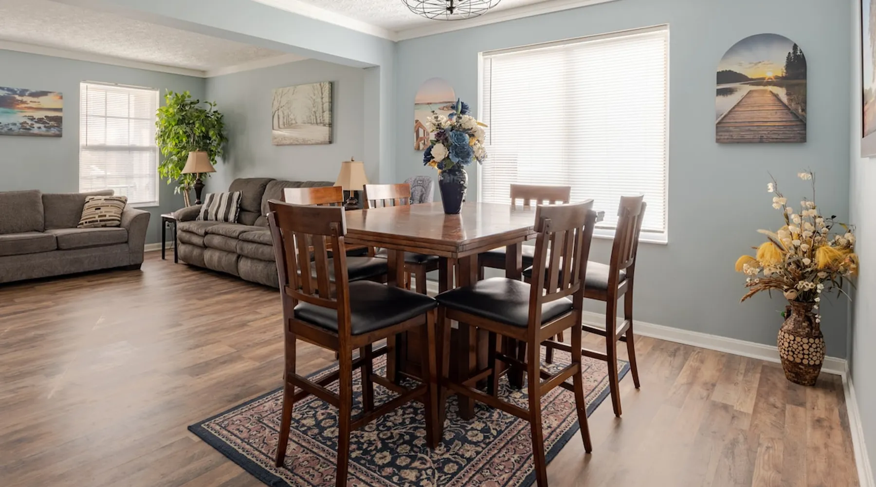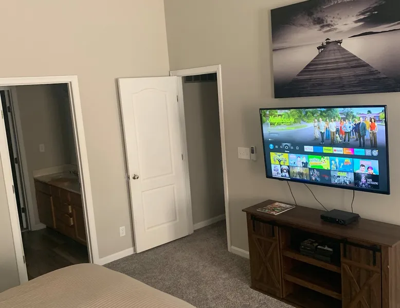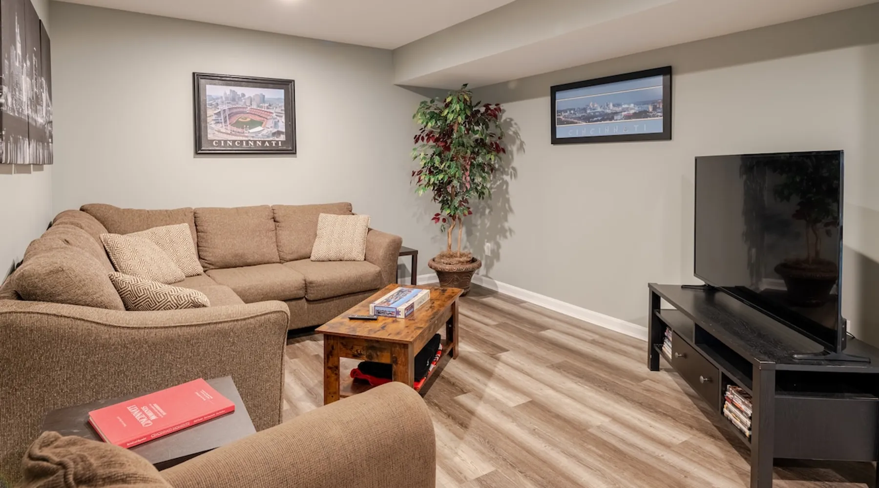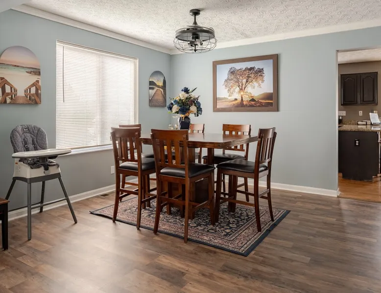 Spacious 3800 sq ft vacation home w/5 bedrooms each w/smart tv. 7 beds-2 king, 3 queen, & 2 twin, 3 1/2 bath. 5 miles Turfway Park/Florence Freedom/World of Golf/St Elizabeth Hospital, Boone County Distillery, Planet Fitness, about 10 miles Cincinnati/Kentucky Airport/Big Bone Lick, 15 miles Cincy Bengals/Reds/FC Cincy/Heritage Bank arena/Newport Aquarium/Creation Museum, Findlay Market/Hard Rock Casino, 20-25 miles Riverbend/Xavier/Univ Cinti, Zoo, Ark Encounter/Jungle Jims, 70 miles Keeneland. The space Bring the whole family and friends to this great home with lots of room for sleeping, entertaining, or fun. Two dining areas each seat 6 people. Two 1st floor living areas with sofas/recliners. Air hockey, pool table, Pac-Man, mini ping pong, cornhole, outdoor patio with fire pit. Deck with dining table, chairs, and propane grill. Separate living area in basement with tv, kitchenette, sofa, full bathroom, and games. Office area with desk, monitor, and Wi-Fi. Guest access Access home thru electronic front door keypad. Your group has the entire home, fenced in backyard, and front porch to enjoy. Other things to note Booking person must list accurate number of guests on reservation and advise host if the number increases before the stay. There is a fee for over 6 guests added automatically when making the reservation.