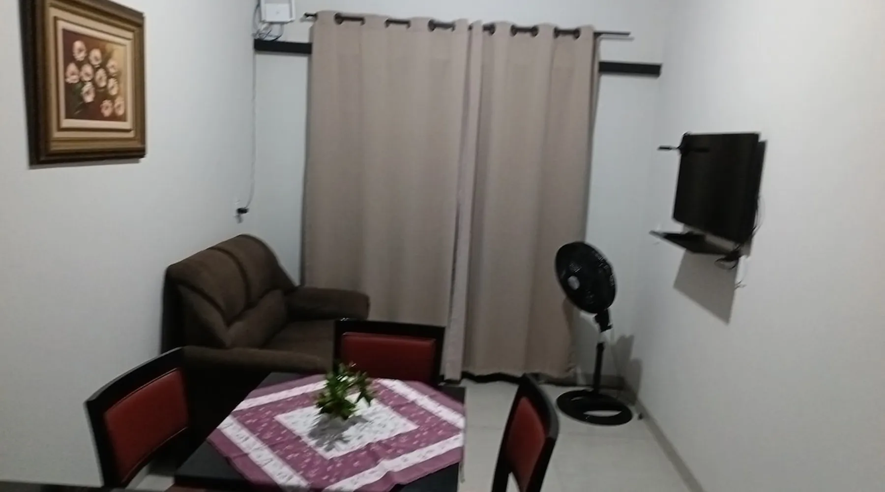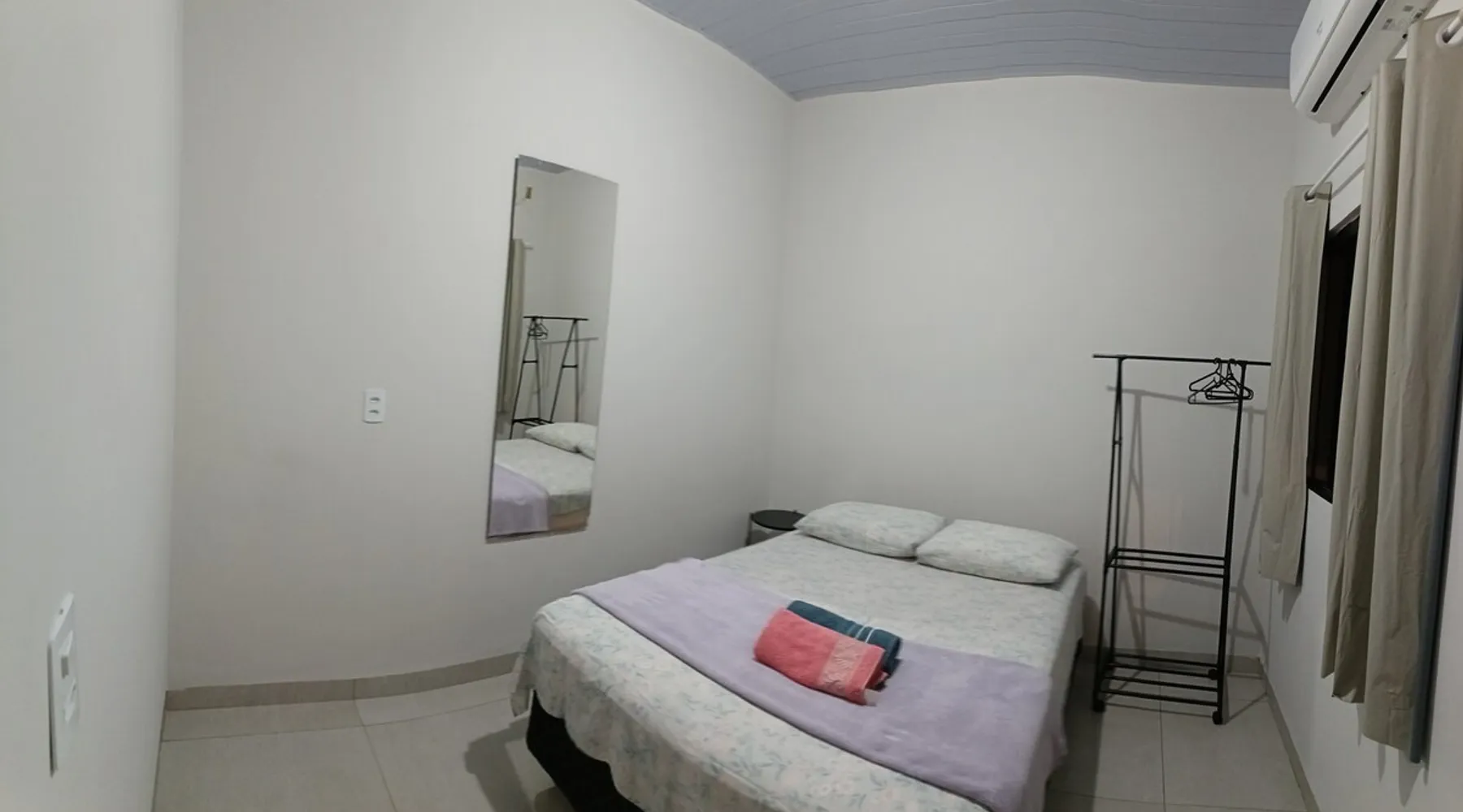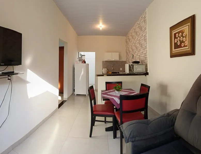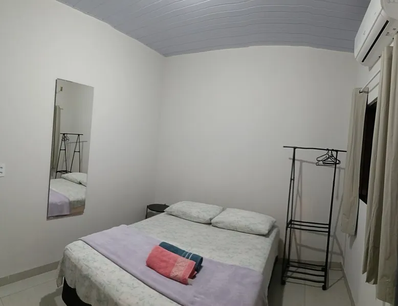 Relax with family or staff in this quiet and cozy accommodation. There are 2 air-conditioned bedrooms, one with a double bed and one with two single beds. Excellent location, less than 1 km from Rondon Plaza Shopping. Wifi, bed and bath linens included. Full kitchen with utensils, microwave, sandwich maker and refrigerator. Garage for one car. Great value and the comfort of feeling at home even outside of it.