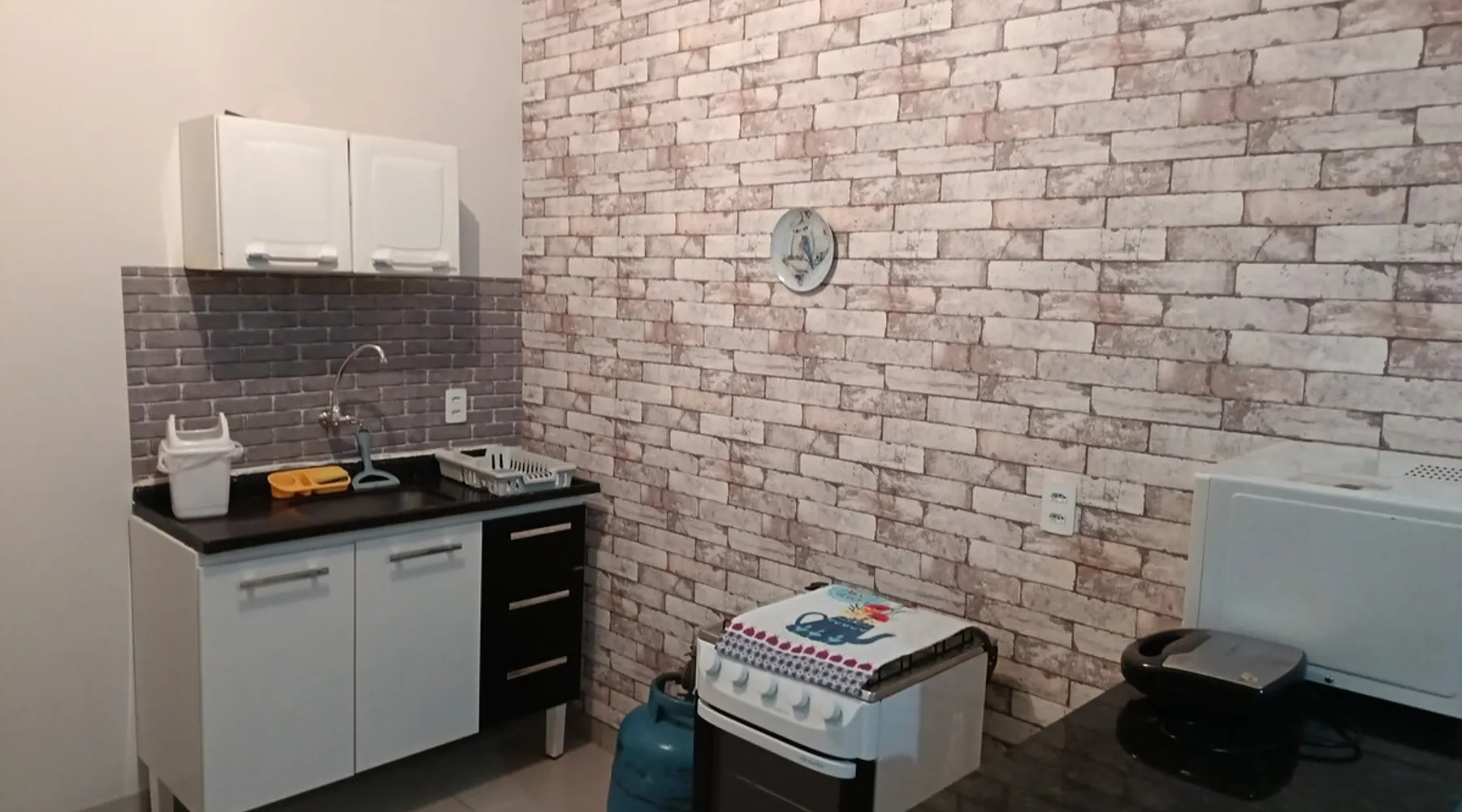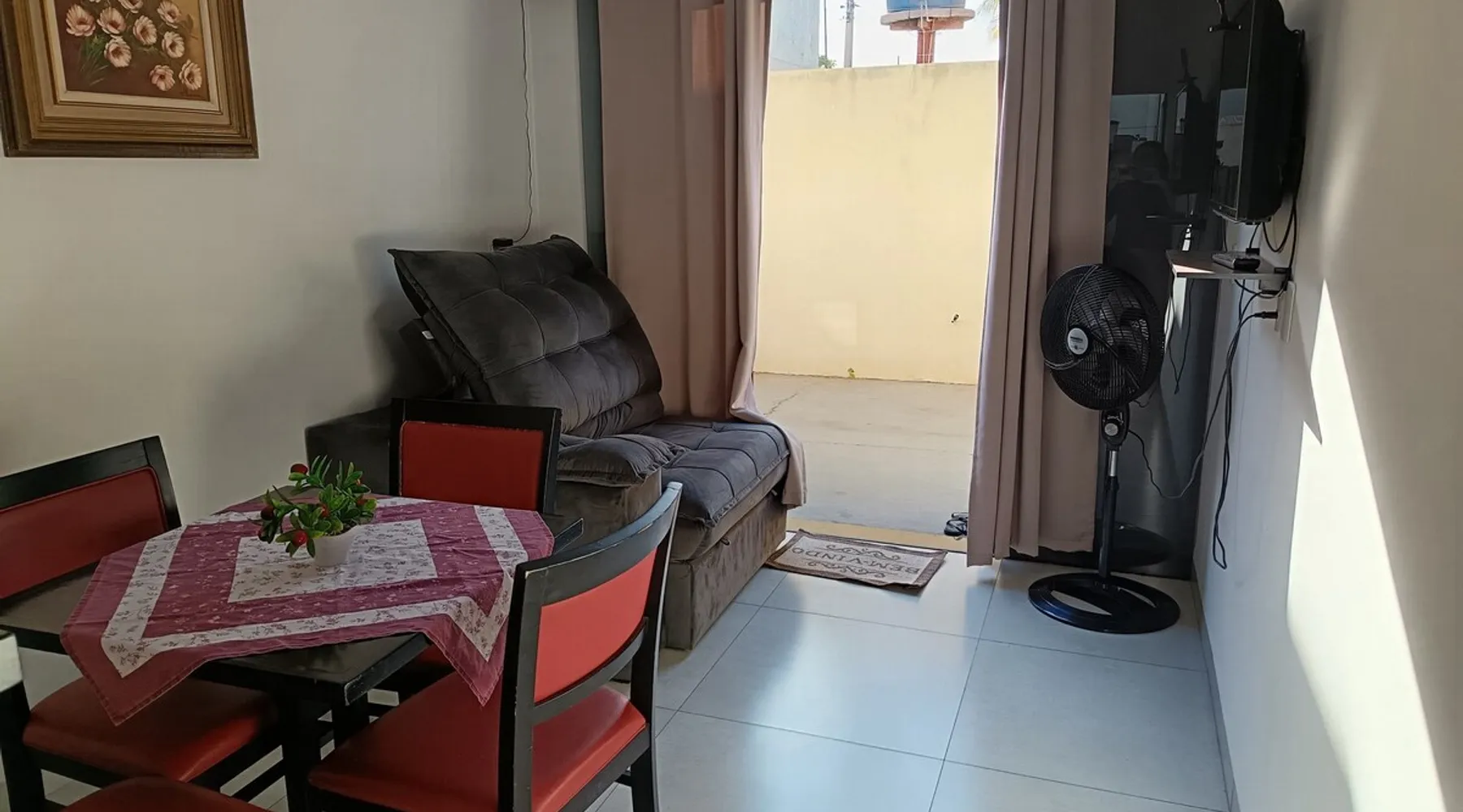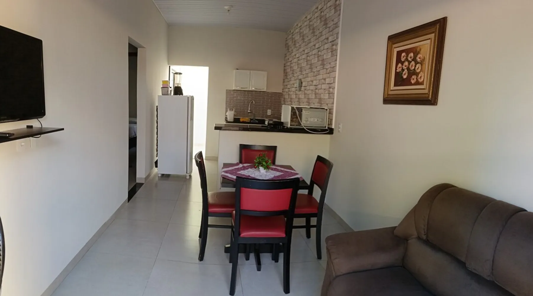 Relax with family or staff in this quiet and cozy accommodation. There are 2 air-conditioned bedrooms, one with a double bed and one with two single beds. Excellent location, less than 1 km from Rondon Plaza Shopping. Wifi, bed and bath linens included. Full kitchen with utensils, microwave, sandwich maker and refrigerator. Garage for one car. Great value and the comfort of feeling at home even outside of it.