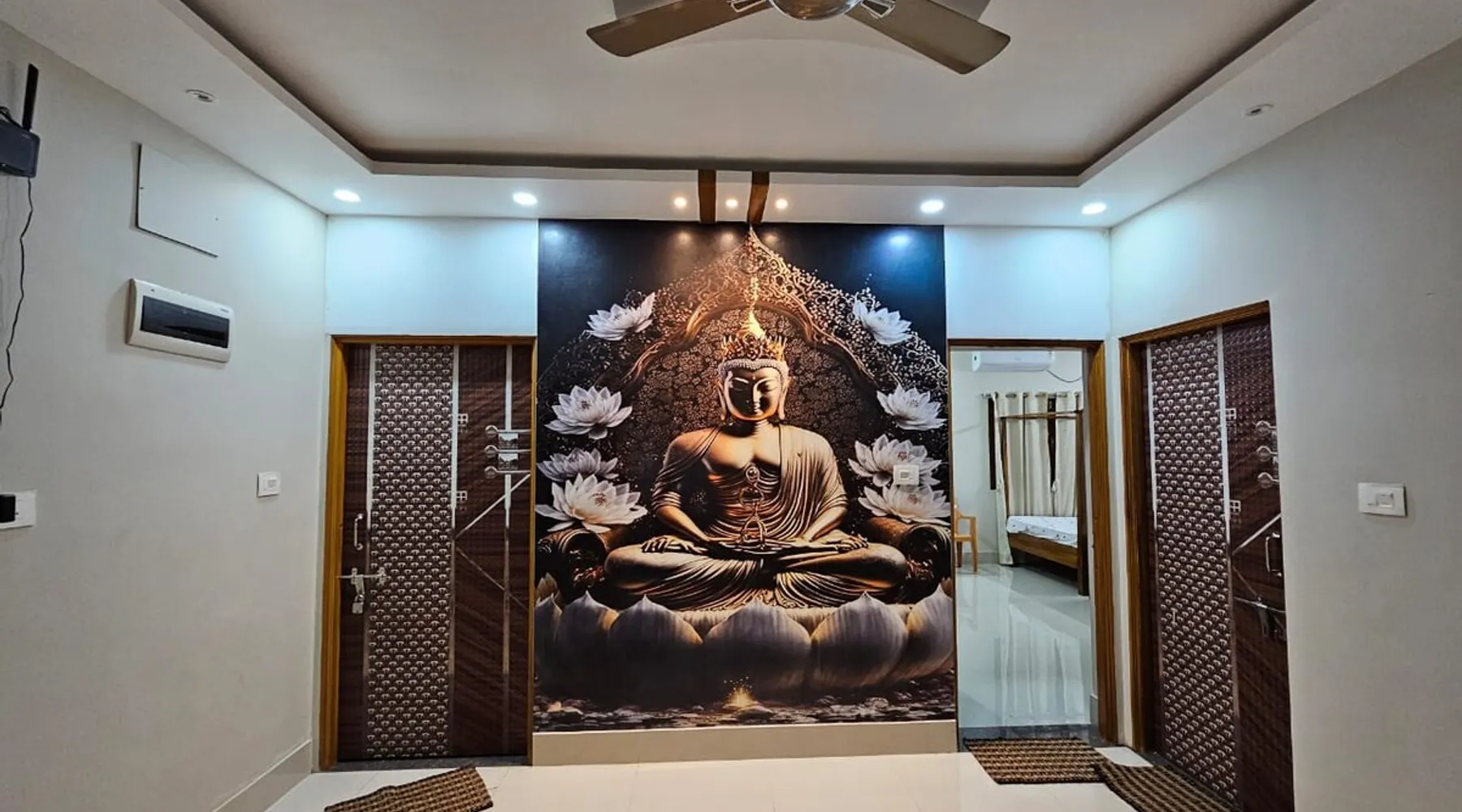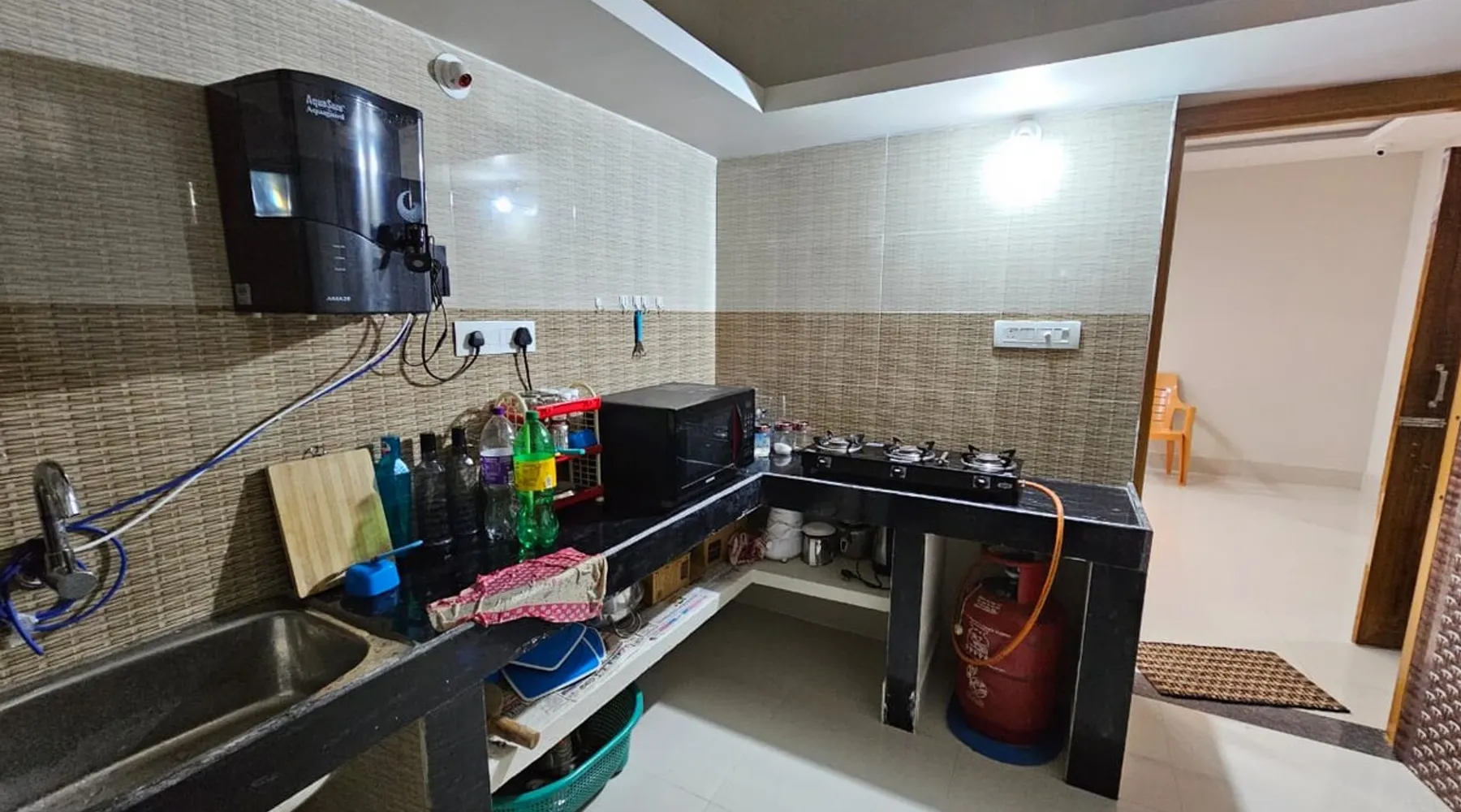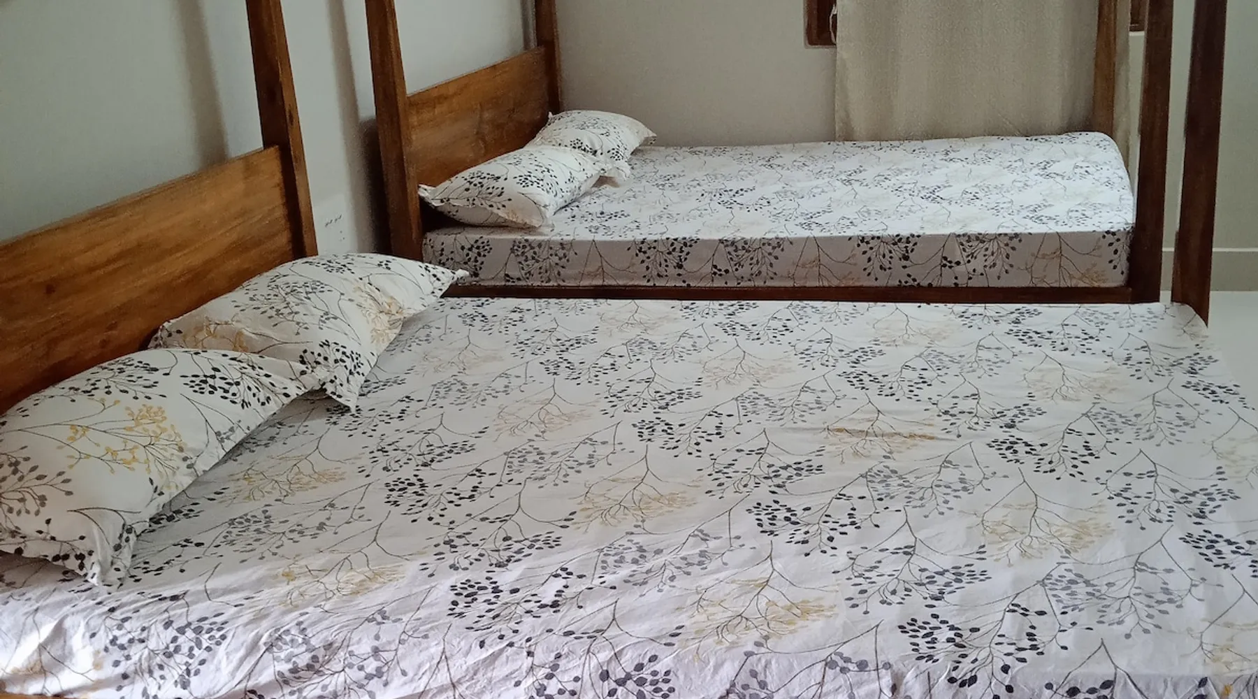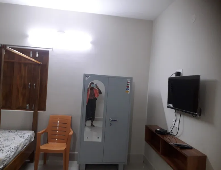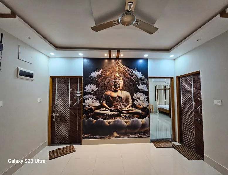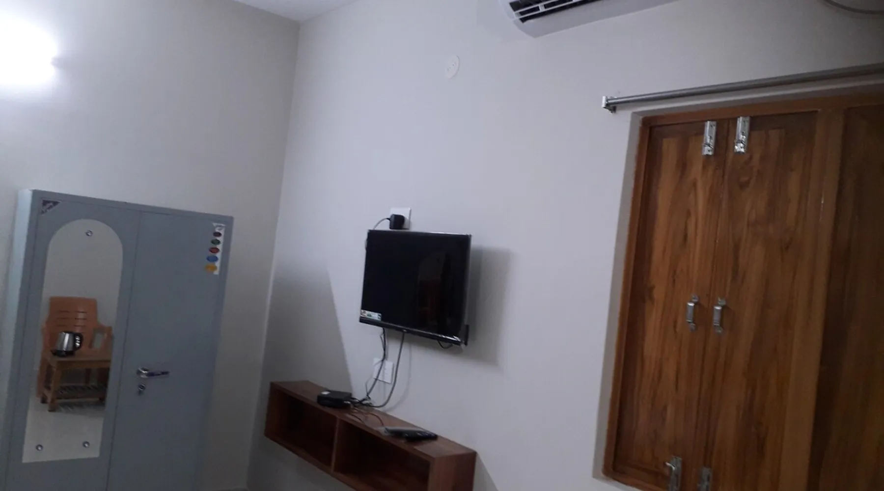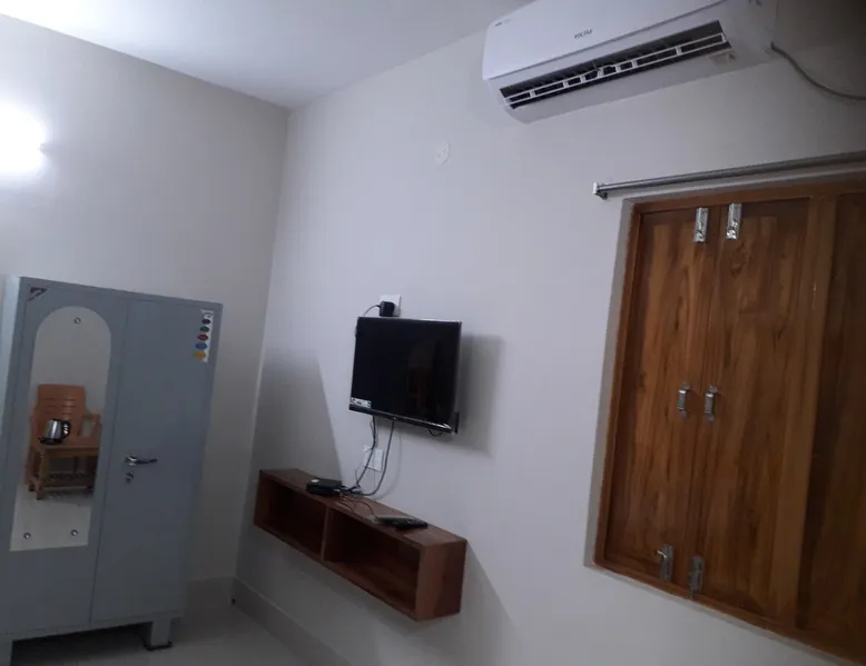 Room in 2nd floor of 14x16sqft on 2nd floor with private wash room, shared kitchen car parking. About 800meters from Temple and 1.5 kms from sea beach at light house. Free parking, wifi, tv, instant heater etc. Family accommodation for 4 persons in two queen size beds. Pets not allowed The space This is on 2nd floor of Sudha Kutir. This is 800 meters from West gate of Lord Jagannath temple and 1.5 kms from sea beach at light house. Lord Jagannath temple is 2 kms from railway station and 2 kms from bus stand. But because of no entry zone of 500 meters around the temple, railway station or bus stand shall take circuitous route of 6-7 kms each. It is in residential area midway between the temple and beach. There are restuarants here, you have a shared kitchen, you can also have Annamahaprasad from temple and get your food on line through Swiggy and Zomato. Inverter power backup Guest access Balcony, Rooftop view of Lord Jagannath temple, walking track around the building and home garden around the building During your stay Airbnb smartphone app allows interaction before reservation. After reservation we can interact through phone Other things to note The guest must know how to go to this place from Railway station, Bus stand, by auto rickshaw, town bus etc. and by taxi from nearest airport now at Bhubaneswar, 60 kms from here. This is a home stay, not a hotel or lodge and all basics are available on self service basis in a homely way. We are senior citizens and lock gates at 10.00 PM for safety of all. This is in a residential area not in commercial area. Peaceful manners is utmost important such as not to disturb other inmates.